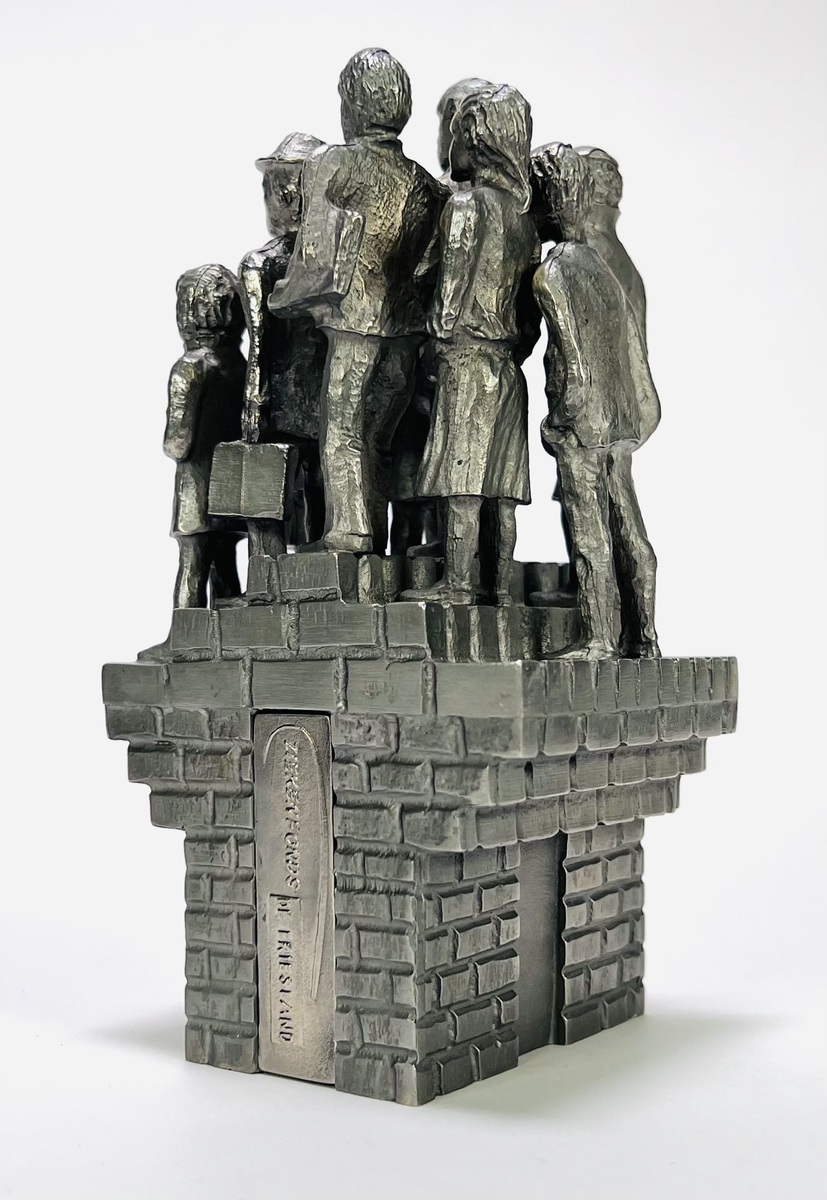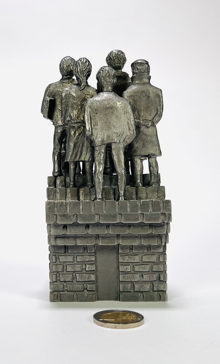 Beeld ontworpen door Jurjen de Vries B.V., Leeuwarden, tweede helft 20e eeuw, uitgevoerd in gegoten metaal. Het beeld toont een groep mensen, volwassenen en een kind, opgesteld op een blokvormige basis met baksteenstructuur. Aan de zijkant bevindt zich een plaquette met de inscriptie “Ziekenfonds De Friesland”, waarmee het beeld verwijst naar solidariteit en gemeenschapszin. Eerst dit beeld zien voordat je biedt? Bezoek onze kijkdagen op 29, 30 en 31 augustus van 11:00 tot 17:00 uur! |