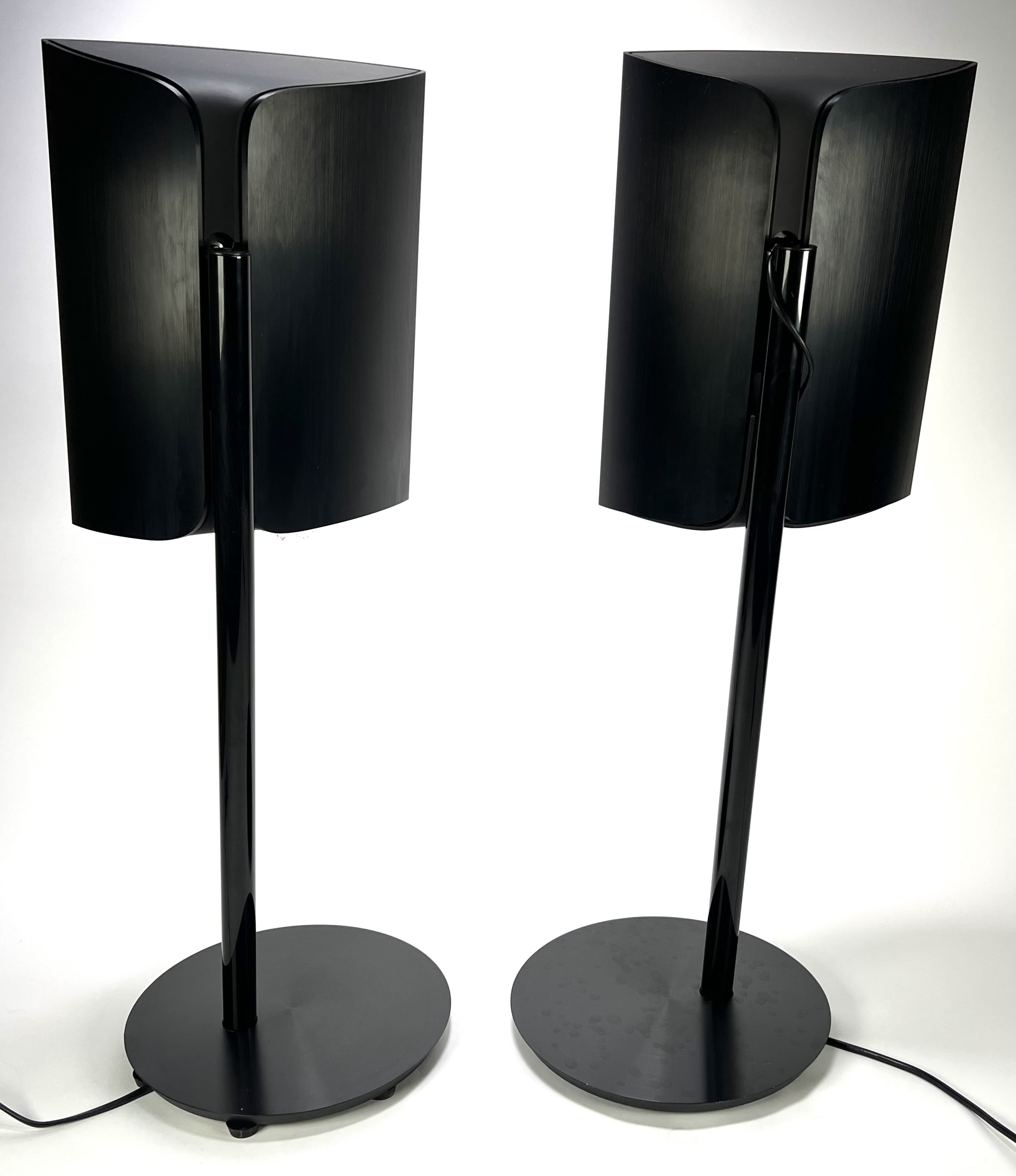 Een paar geluidsboxen van Bang & Olufsen Denemarken, uit circa 2000. De speakers zijn uitgevoerd in een modernistische stijl, met een strakke, minimalistische vormgeving van metaal en kunststof. Kenmerkend zijn de afgeronde behuizingen en de staande standaarden met een ovale voet. Het logo van de fabrikant is verticaal op de luidsprekers aangebracht. De speakers zijn afgewerkt met zwart luidsprekerdoek. Zeker zijn van deelname? Plaats vanaf 22 augustus een schriftelijk bod online! |