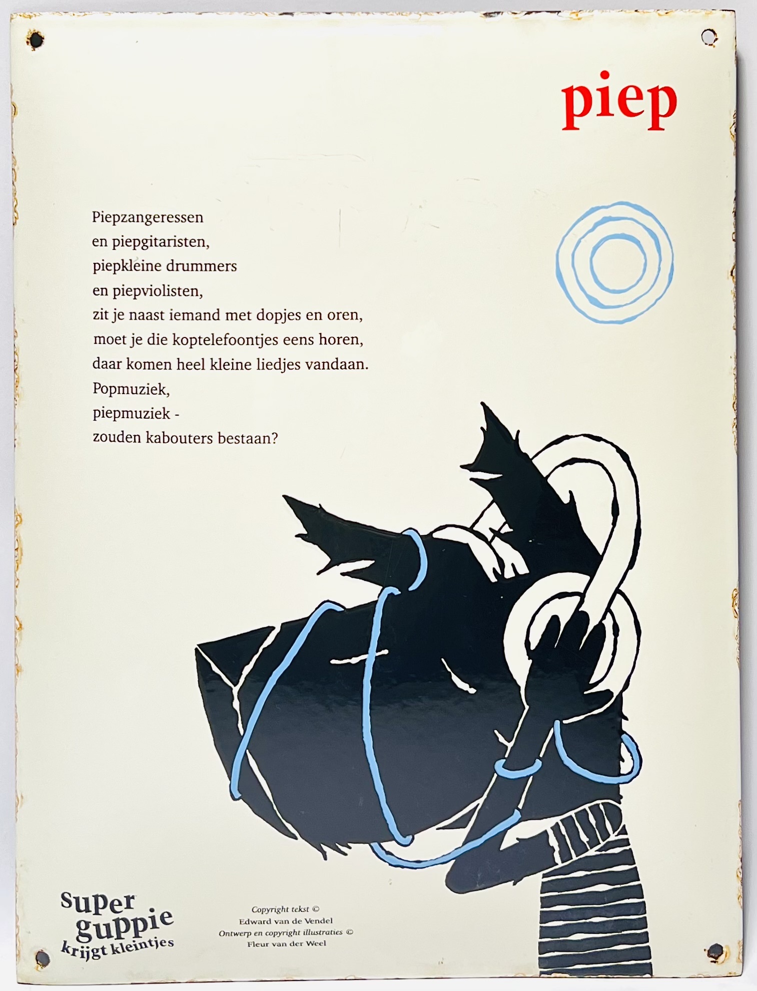 Emaille bord Edward van de Vendel & Fleur van der Weel, "Piep", circa 2002, Nederland