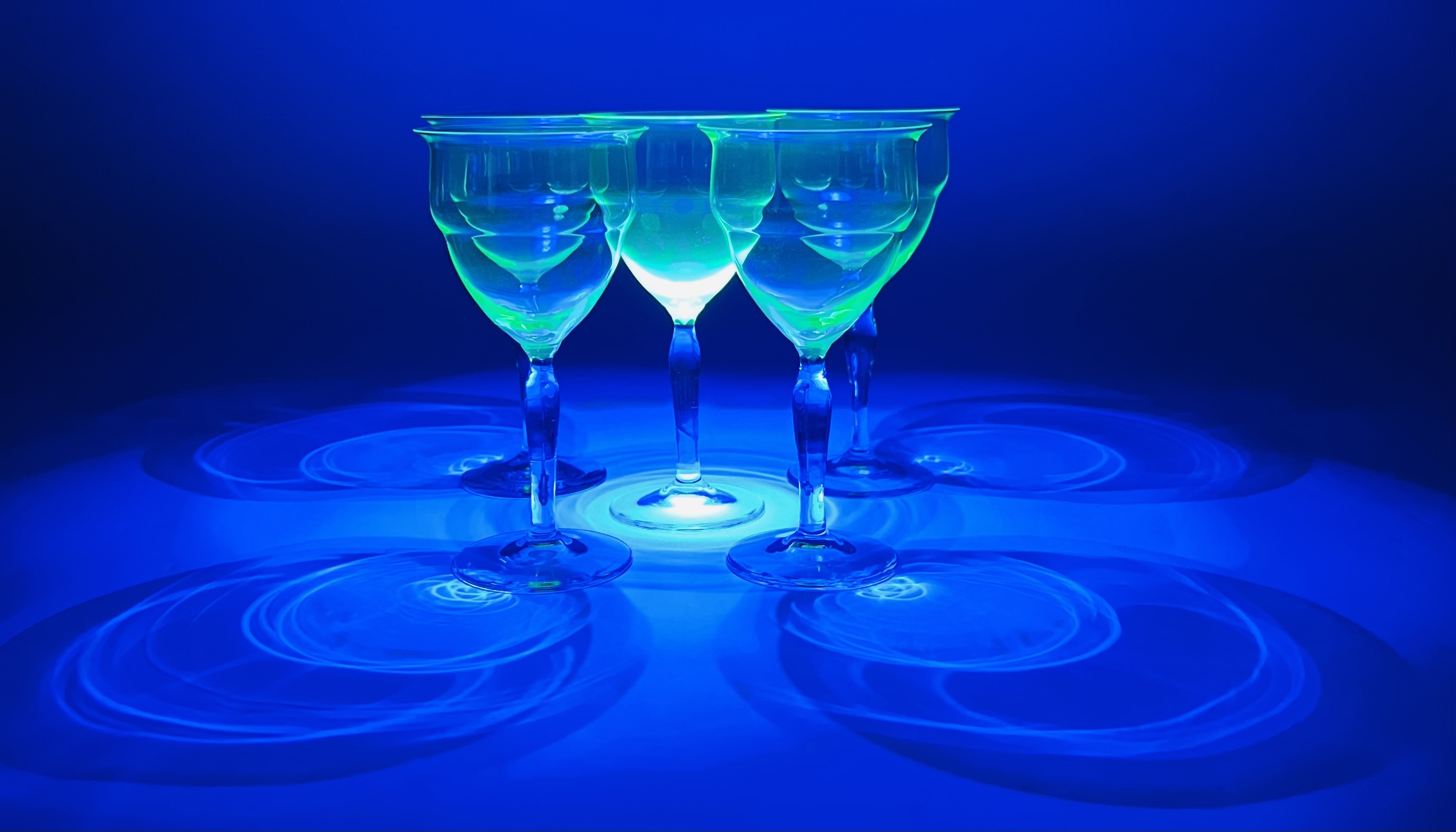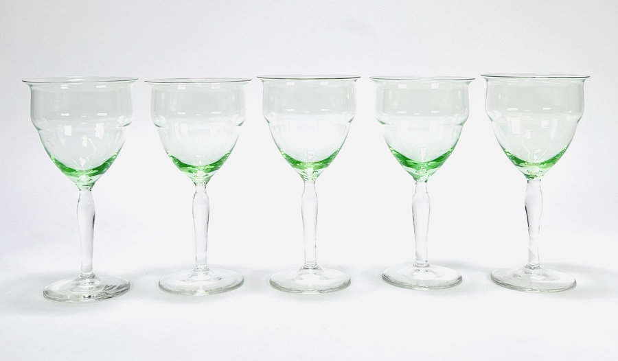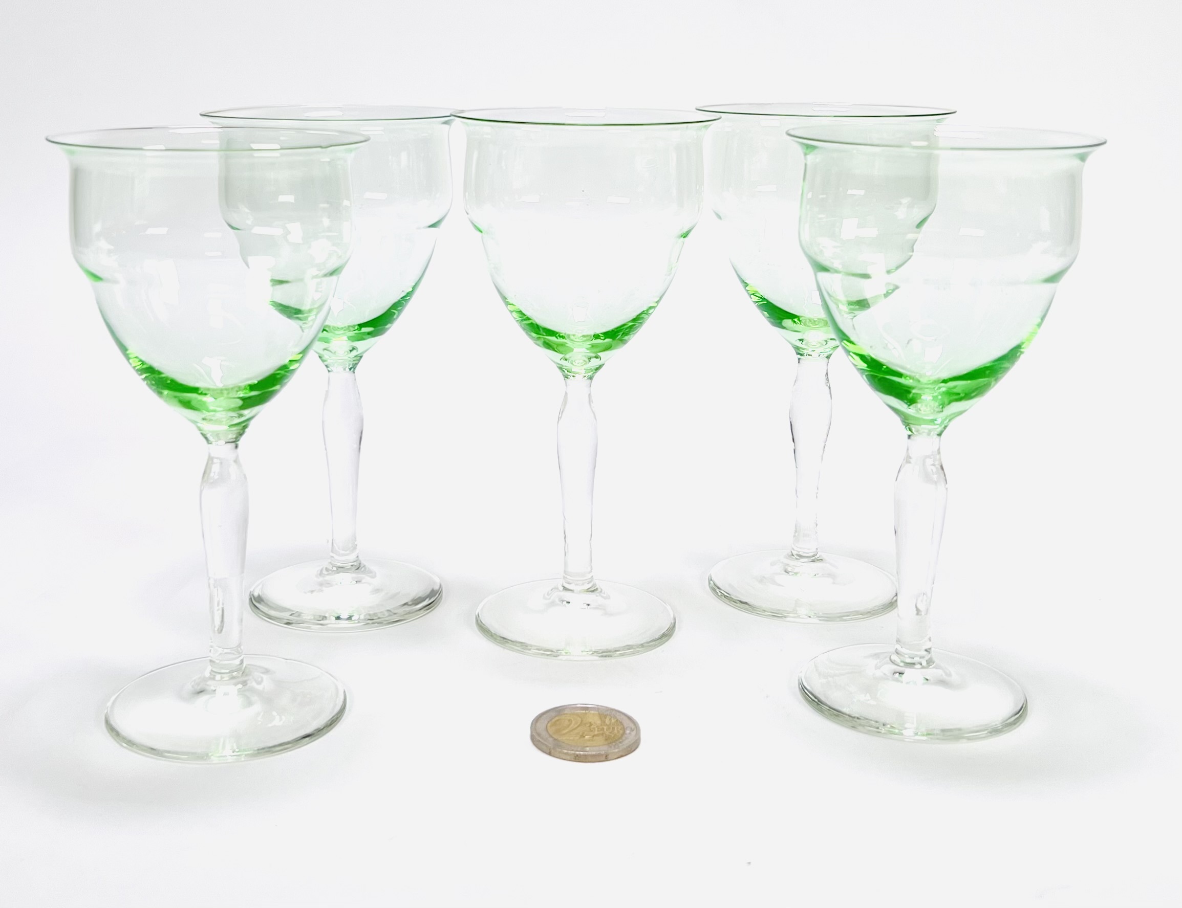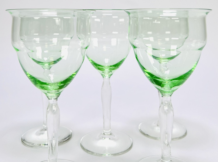 Uraniumglas wijnglazen, eerste helft 20e eeuw