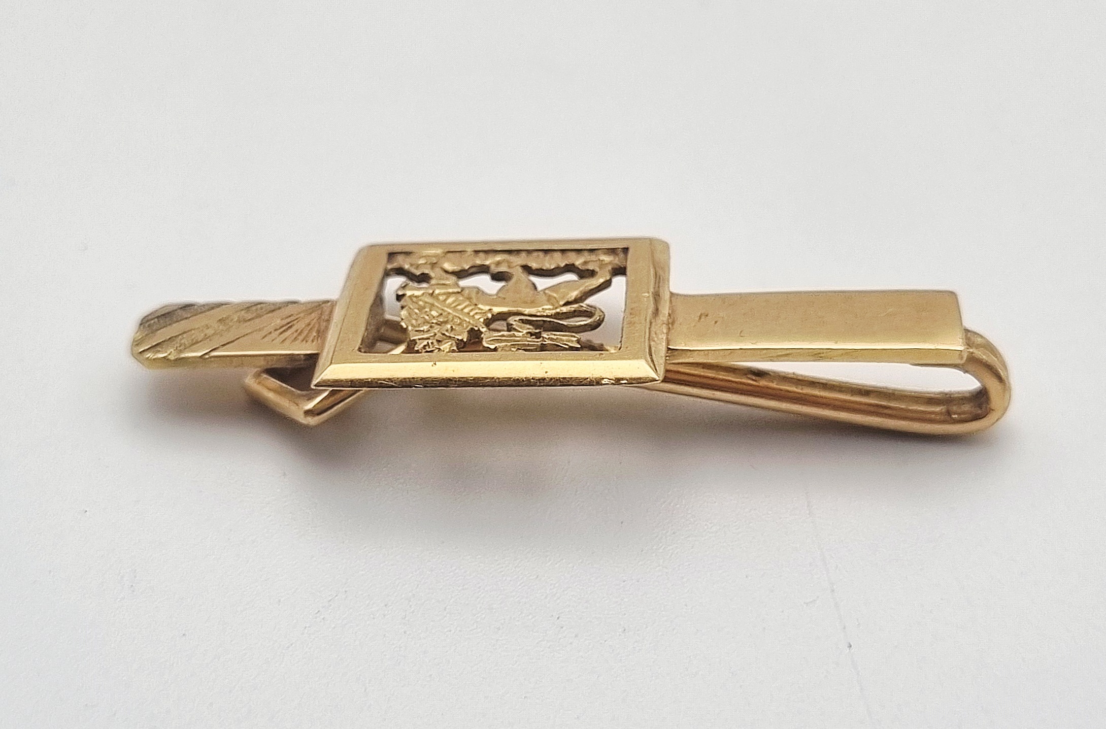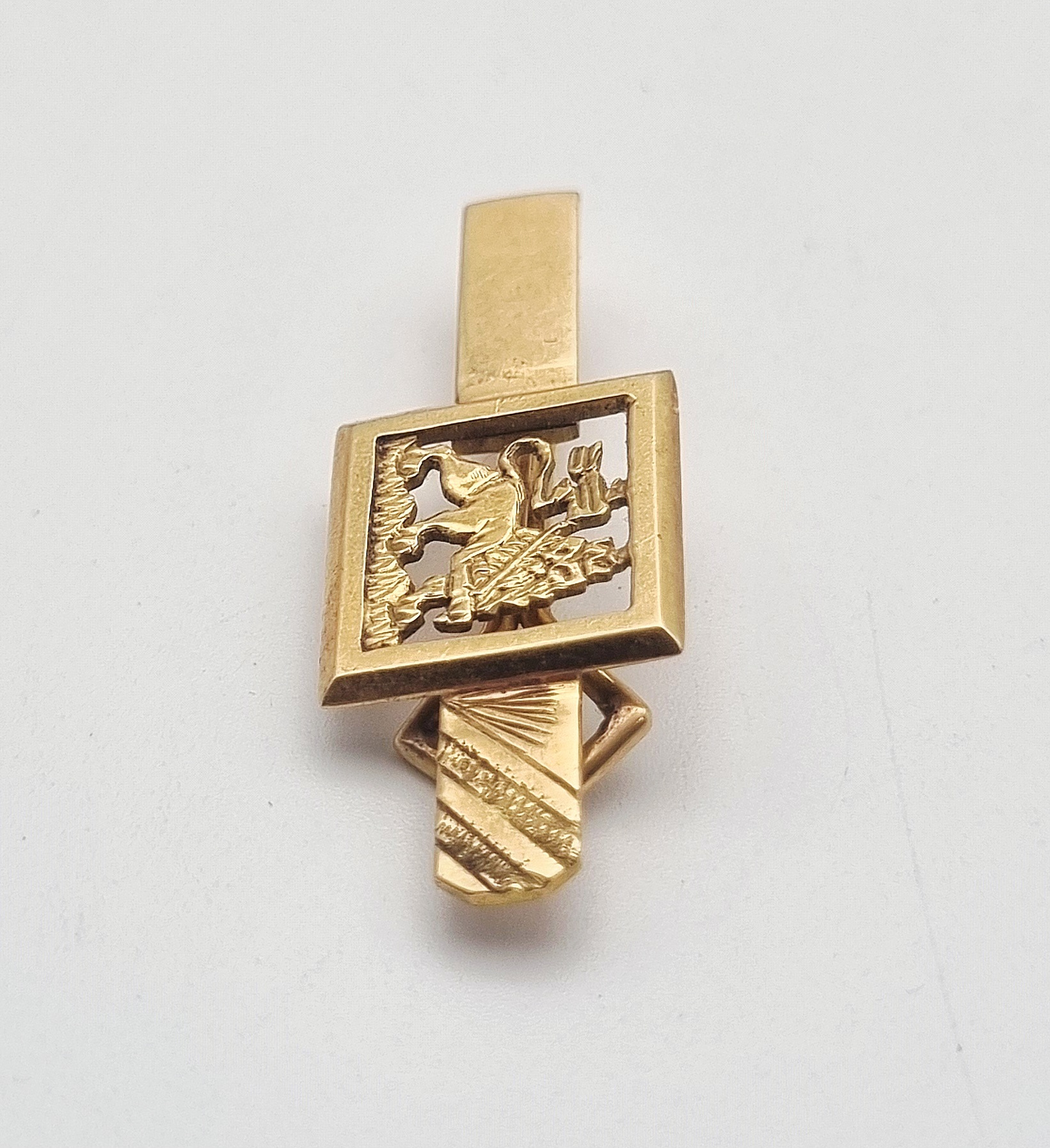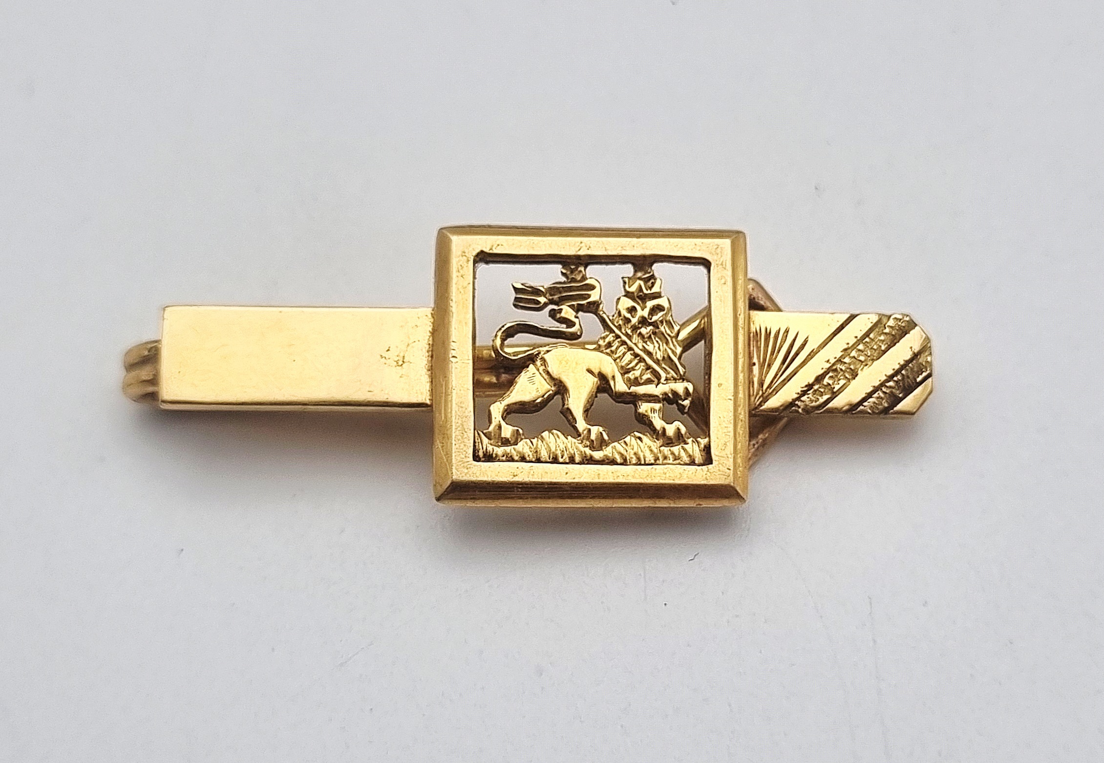 14 karaat gouden dasspeld in heraldieke stijl met centraal de Leeuw van Juda en kruisbanier, Ethiopië, 20e eeuw. De dasspeld is vervaardigd met gegraveerde details, omlijst in een vierkant kader met geometrische accenten. Registreer nu en bied eenvoudig online mee op deze broche! |