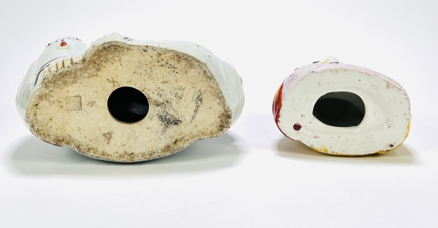 Twee Chinees porseleinen Happy Boeddha's, 20e eeuw. Het grotere exemplaar toont Budai met kralensnoer in soberder kleurstelling en een vierkant stempelmerk aan de onderzijde. Het kleinere exemplaar is polychroom beschilderd en verbeeldt Budai omringd door zes kinderen, symbool voor geluk en voorspoed. Zeker zijn van deelname? Plaats een schriftelijk bod online! |