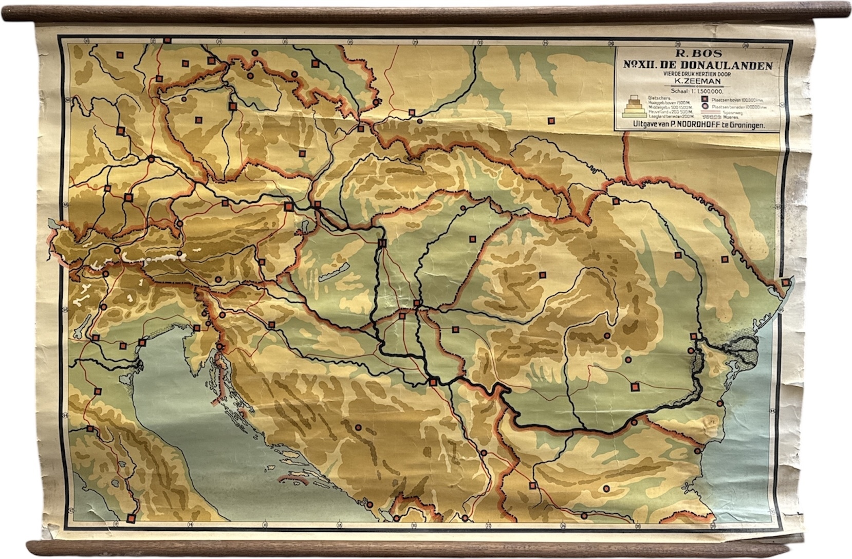 Schoolkaart Donaulanden R. Bos en K.Zeeman, P. Noordhoff, 1950