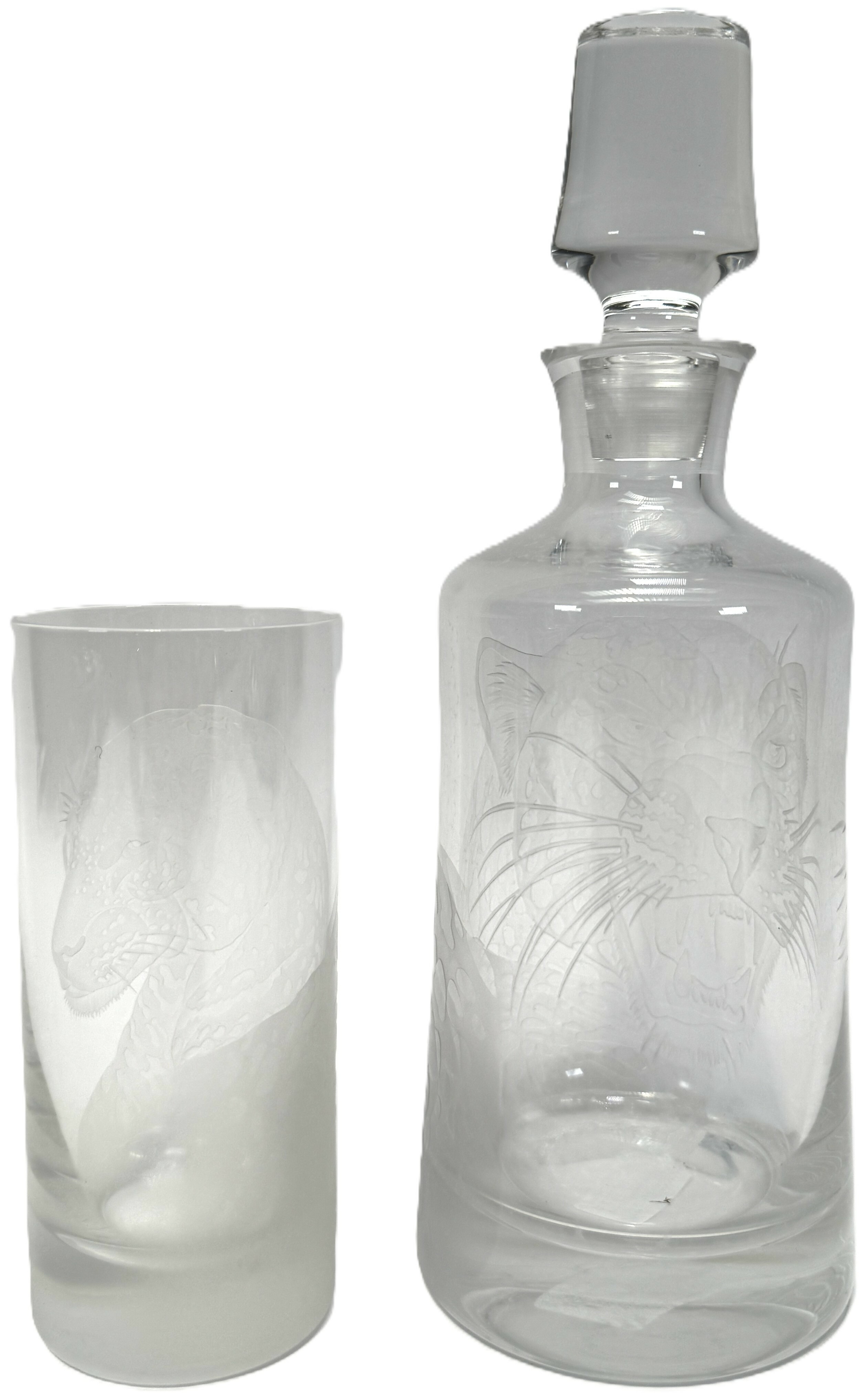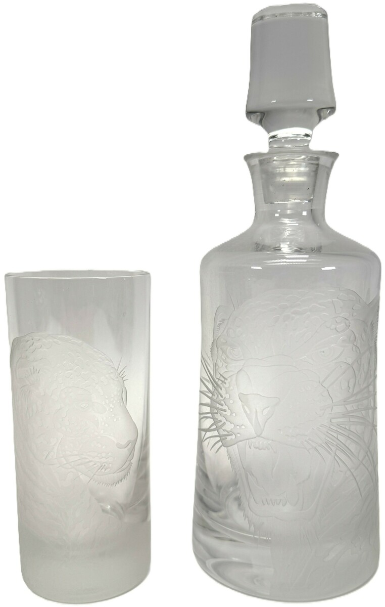 Kristallen karaf en glas met jaguardecor, ca. 1990, Tsjechië