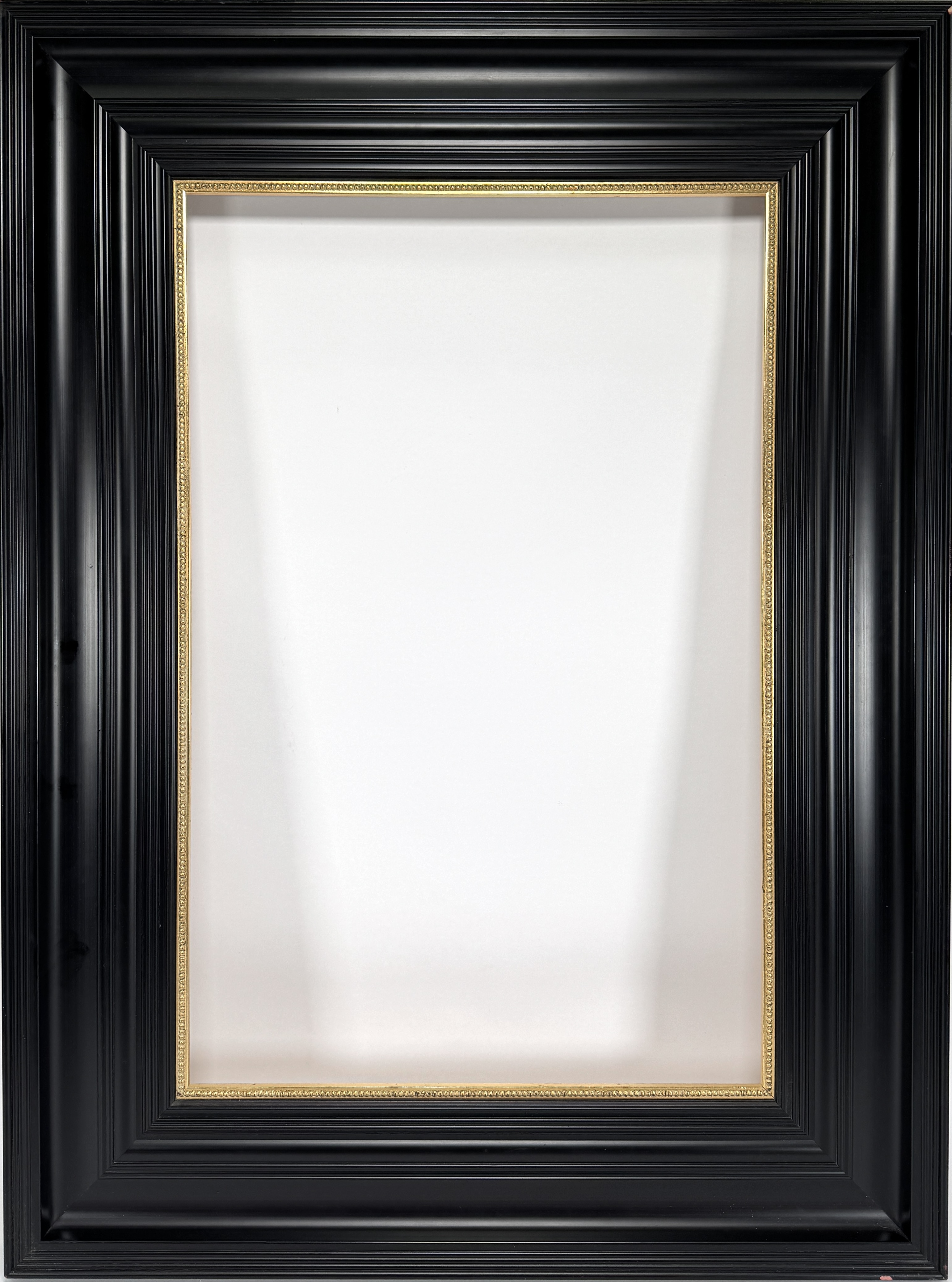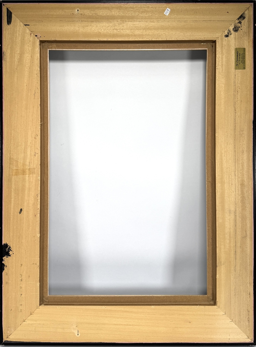 Schilderijlijst, 20e eeuw, vervaardigd uit hout en uitgevoerd in classicistische stijl. De lijst is zwart gelakt en voorzien van diepe profileringen met een smalle goudkleurige binnenrand die het beeldvlak omlijst. Klaar om te bieden? Registreer je nu en doe mee aan de veiling! |