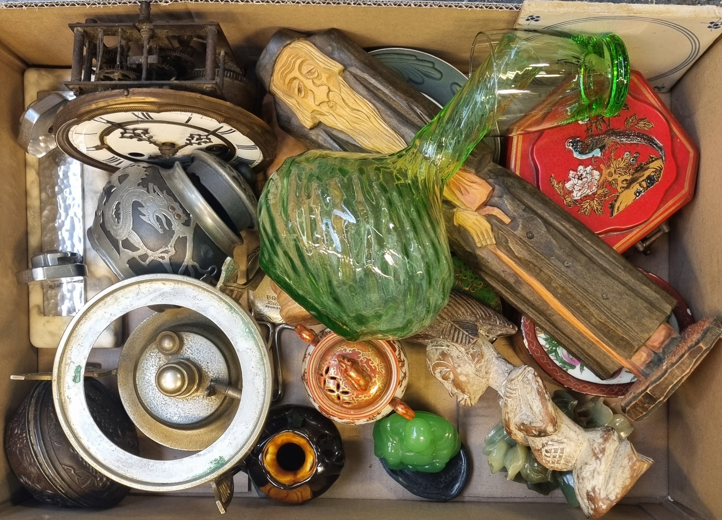 Deze gevarieerde collectie curiosa omvat objecten van hout, metaal en glas, daterend van de late 19e eeuw tot de midden 20e eeuw. Met onder meer een metalen klokmechanisme, een houten beeldje, een doosje met een vogeldecoratie. en een groene glazen vaas. Wil je deze kavel in het echt bekijken? Kom naar de kijkdagen op 29, 30 en 31 augustus! |