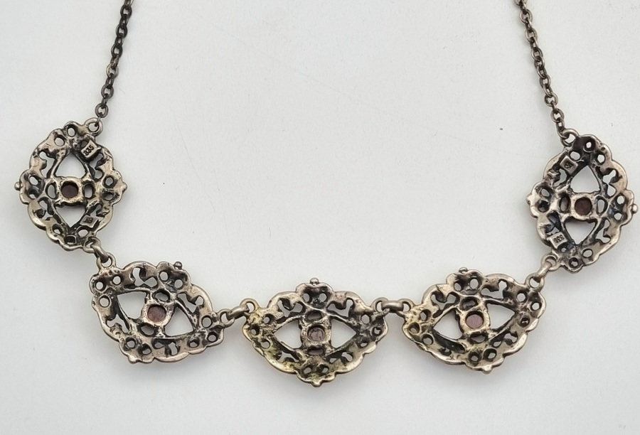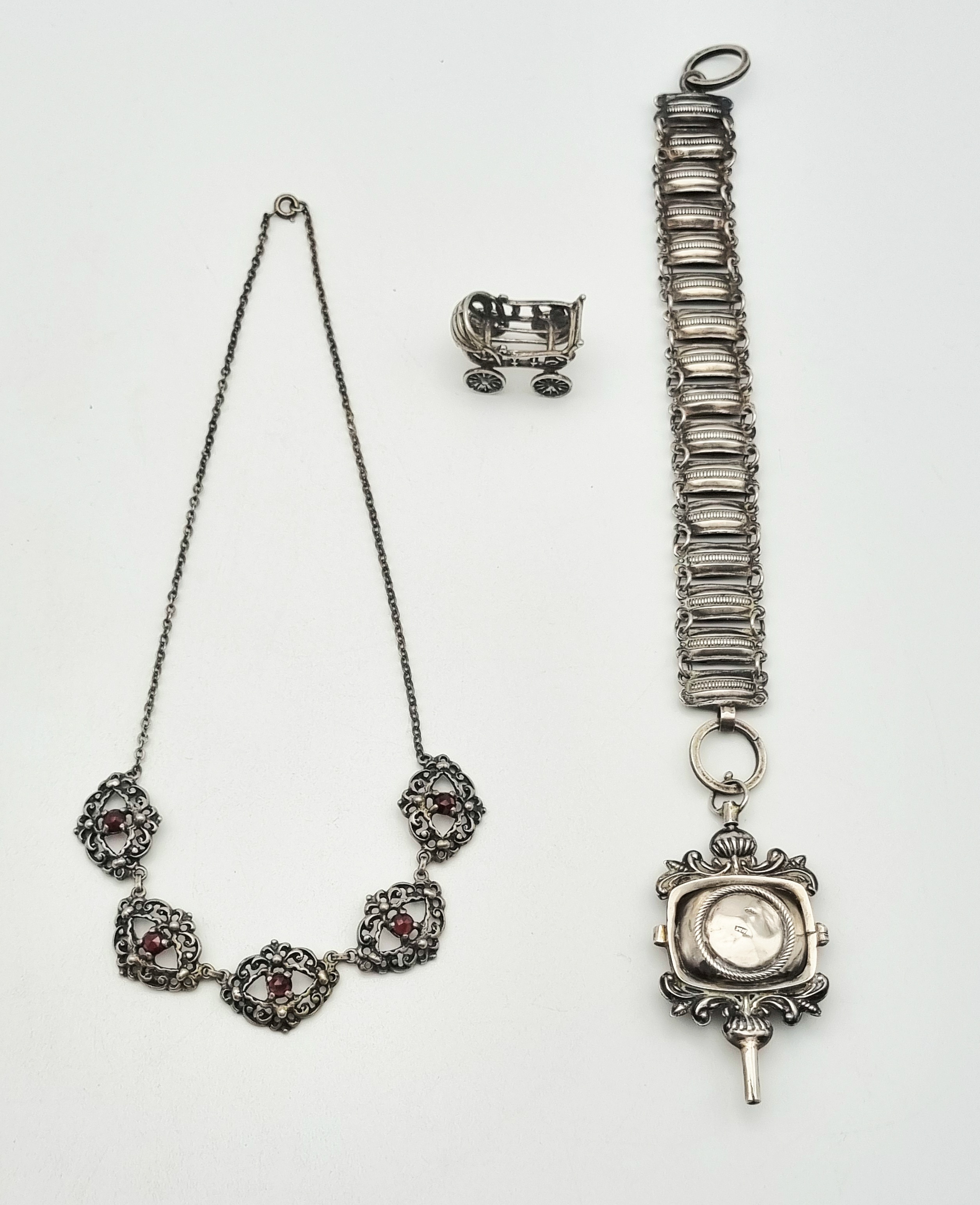 Zilveren chatelaine, miniatuur en collier, begin 20e eeuw