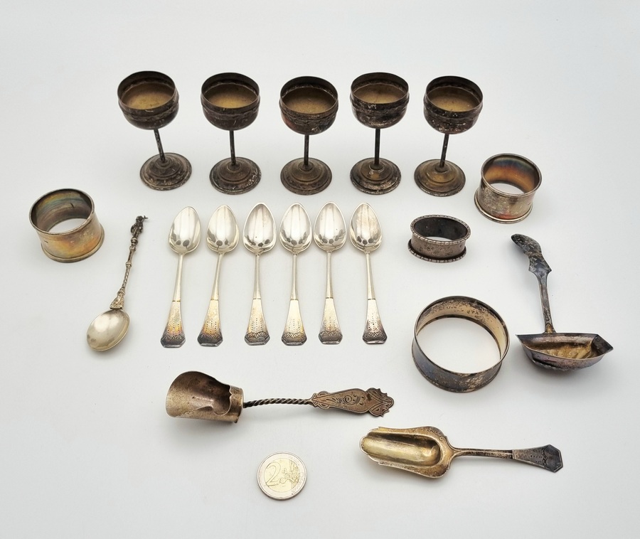 Convoluut zilver uit de tweede helft van de 19e eeuw, uitgevoerd in verschillende stijlen, waaronder neobarok en neoclassicisme. De set bestaat uit onder andere zeven theelepels, vijf kleine bekers, een roomlepel, een suikerschep, vier servetringen en twee suiker lepels. De objecten zijn voorzien van diverse zilverkeurmerken. Wil je direct deelnemen? Plaats vanaf 22 augustus alvast een schriftelijk bod via onze website! |