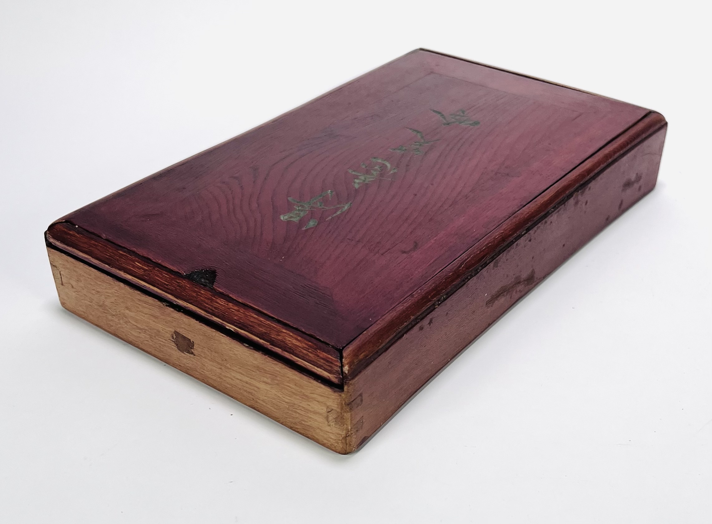 Een complete mahjong set in een houten opbergkist met schuifdeksel. De speelstenen zijn van been en bamboe en gedecoreerd met Chinese karakters. De kist is vervaardigd uit hout met een rode afwerking en is voorzien van een Chinees karakter op het deksel. Inclusief speelstenen, fiches en twee spelregelboekjes in het Nederlands en Engels. Zien voordat u biedt? Bezoek onze kijkdagen op 29, 30 en 31 augustus van 11:00 tot 17:00 uur! |