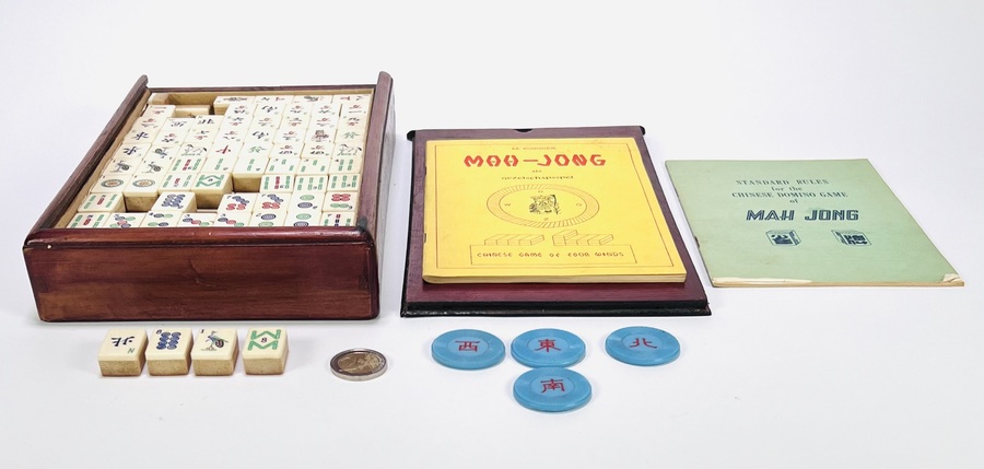 Houten mahjong set van been en bamboe, ca. 1950, China