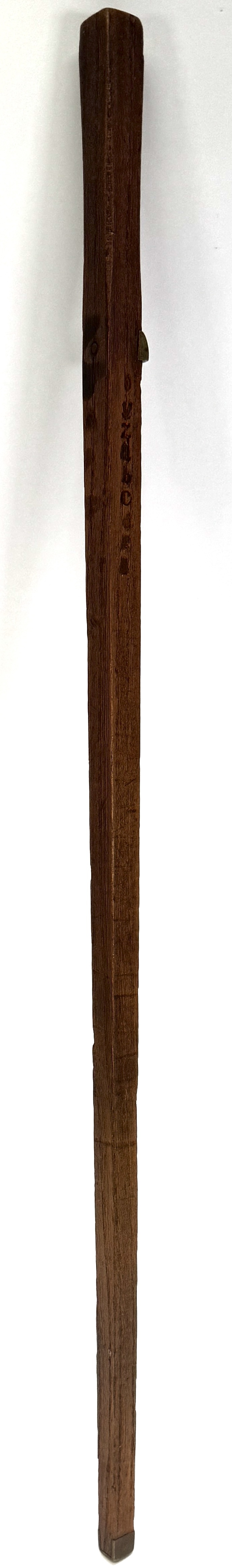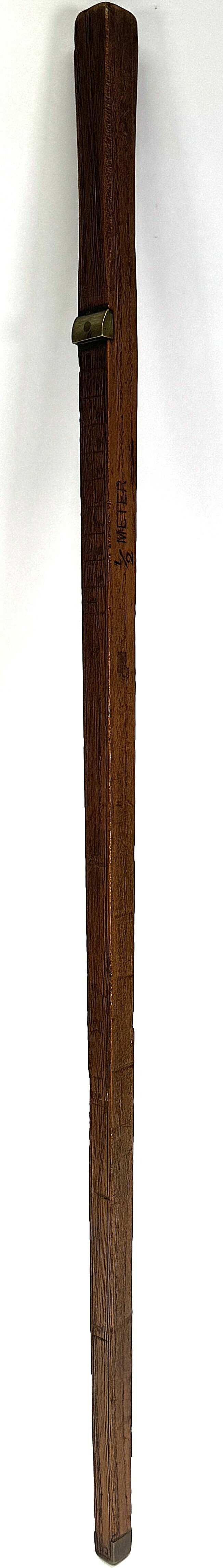 Houten meetstok met messing beslag, eerste helft 20e eeuw