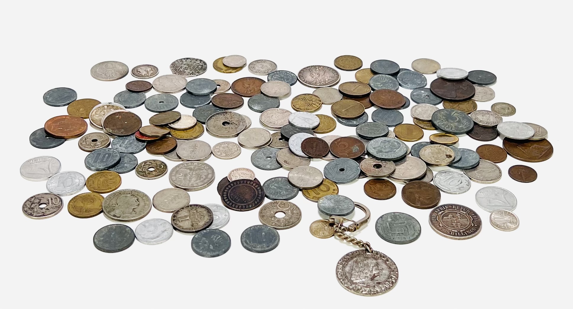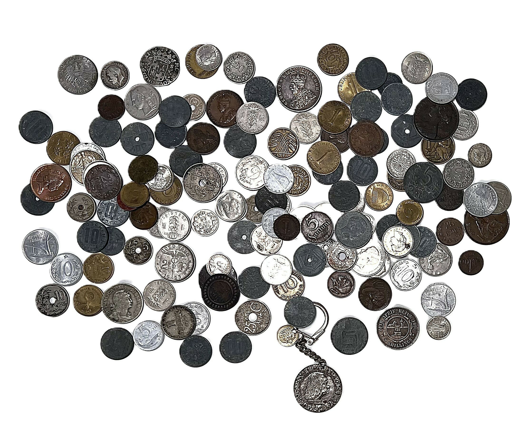 Verzameling van diverse munten, daterend uit de eerste helft van de 20e eeuw. De munten zijn vervaardigd van diverse metalen en legeringen, waaronder nikkelzilver, messing en brons. De ontwerpen variëren van figuratieve portretten tot abstracte en minimalistische motieven. De collectie omvat ook een sleutelhanger met een medaillon. Ontdek deze munten en voeg het toe aan jouw collectie! Registreer nu voor de veiling |