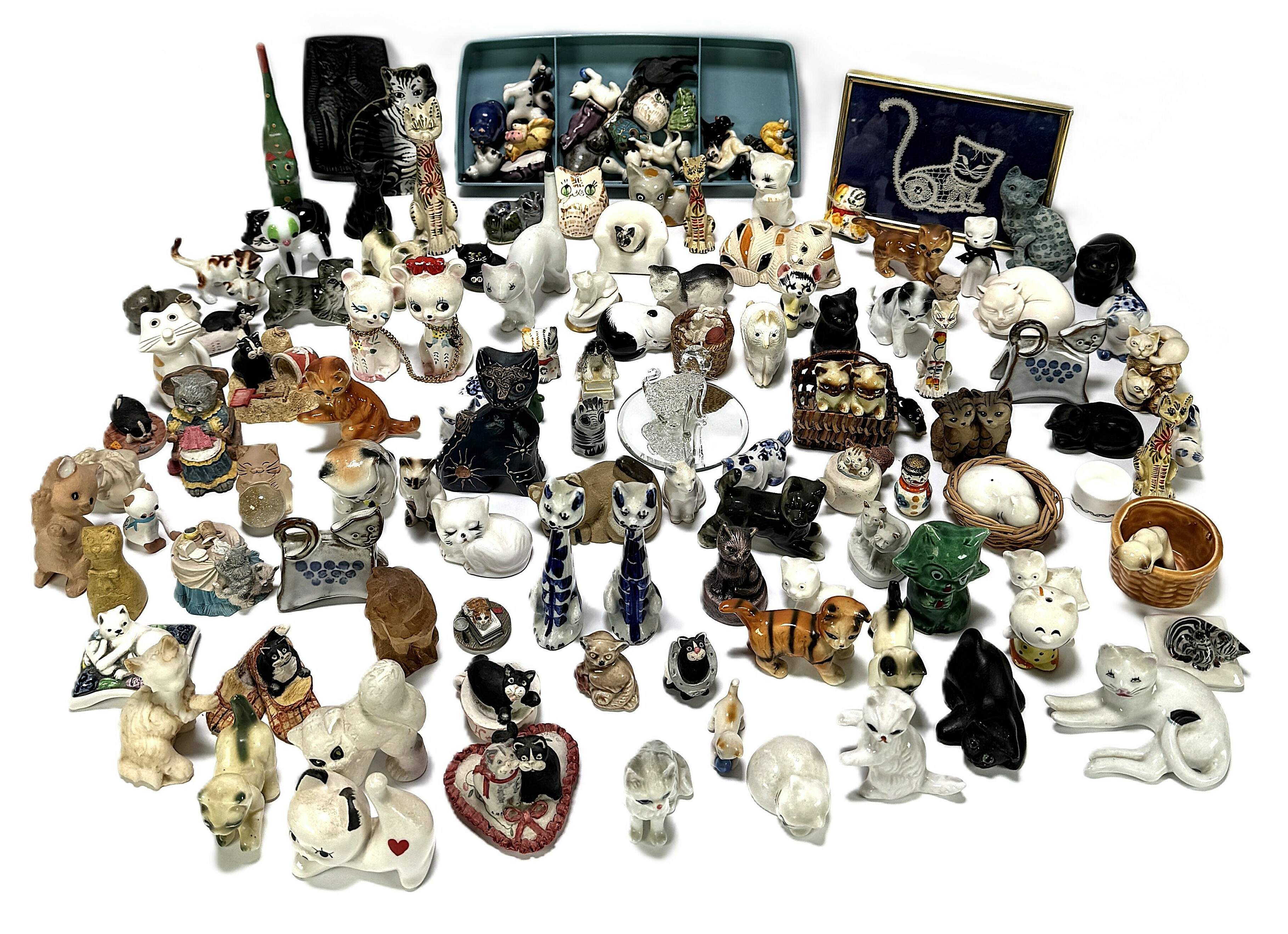 Lot met meer dan honderd kattenbeeldjes uit de 20e eeuw, vervaardigd in porselein, aardewerk, glas en kunststof en toont uiteenlopende stijlen van traditioneel realistisch tot humoristisch gestileerd. Aanwezig zijn onder meer Delftsblauwe exemplaren, glazen katten, beschilderde keramieken katjes en katjes in mandjes. De verzameling omvat liggende, zittende en spelende katten in diverse formaten en uitvoeringen. Geïnteresseerd? Bezoek onze kijkdagen op 29, 30 of 31 augustus van 11:00 tot 17:00 uur! |