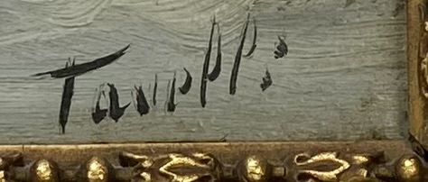 Schilderij in realistische stijl, gesigneerd rechtsonder Tavelli, midden 20e eeuw. Voorstelling van een besneeuwd landschap met boerderijen, bomen, vijver, herder en schapen. Uitgevoerd in olieverf op paneel, gevat in een goudkleurige lijst met ornamenten. Kom langs tijdens de kijkdagen (29 t/m 31 augustus) en ontdek dit schilderij zelf! |