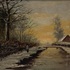 Olieverfschilderij, winters landschap met kanaal en huis, eind 19e eeuw, Nederland