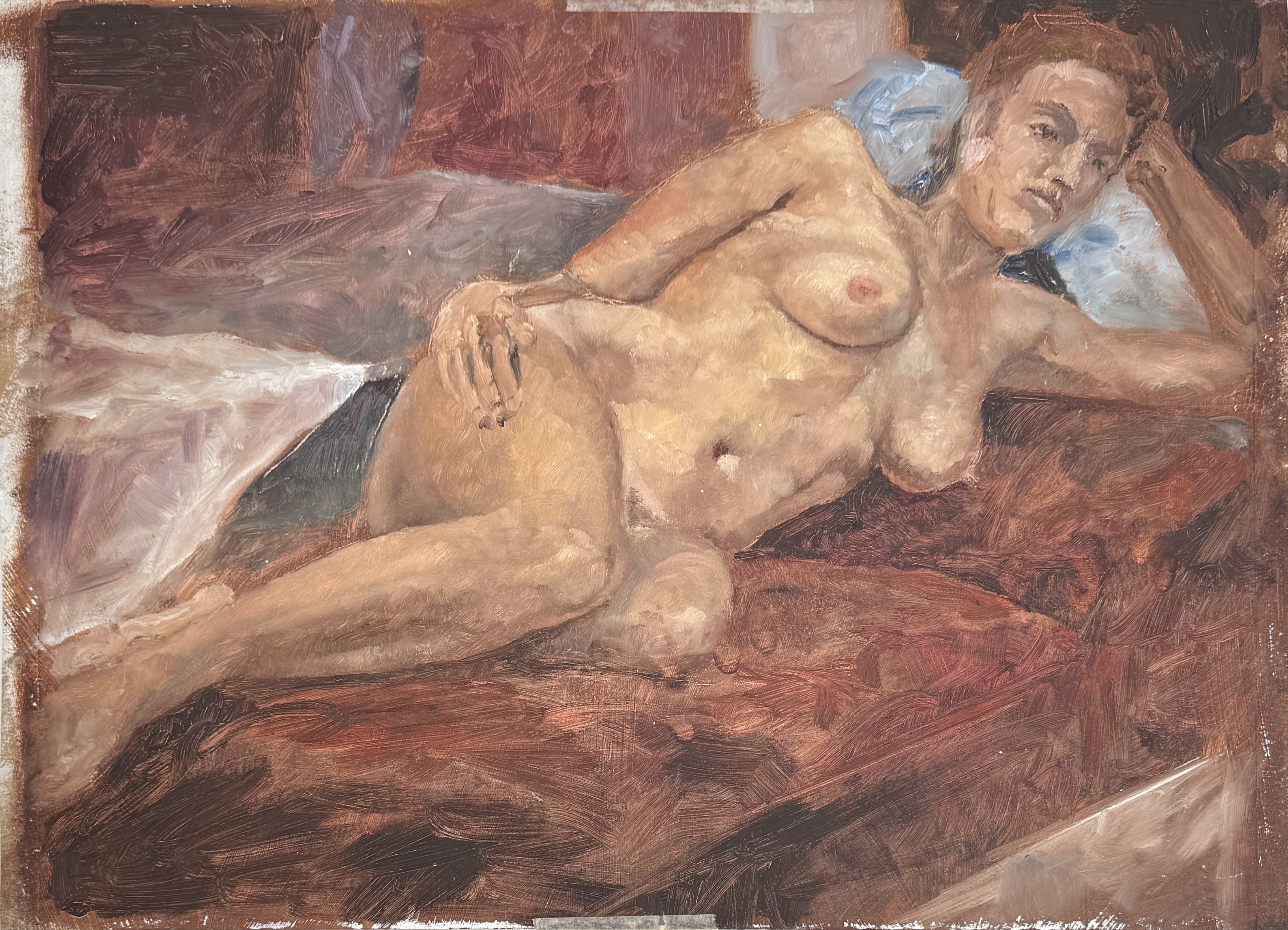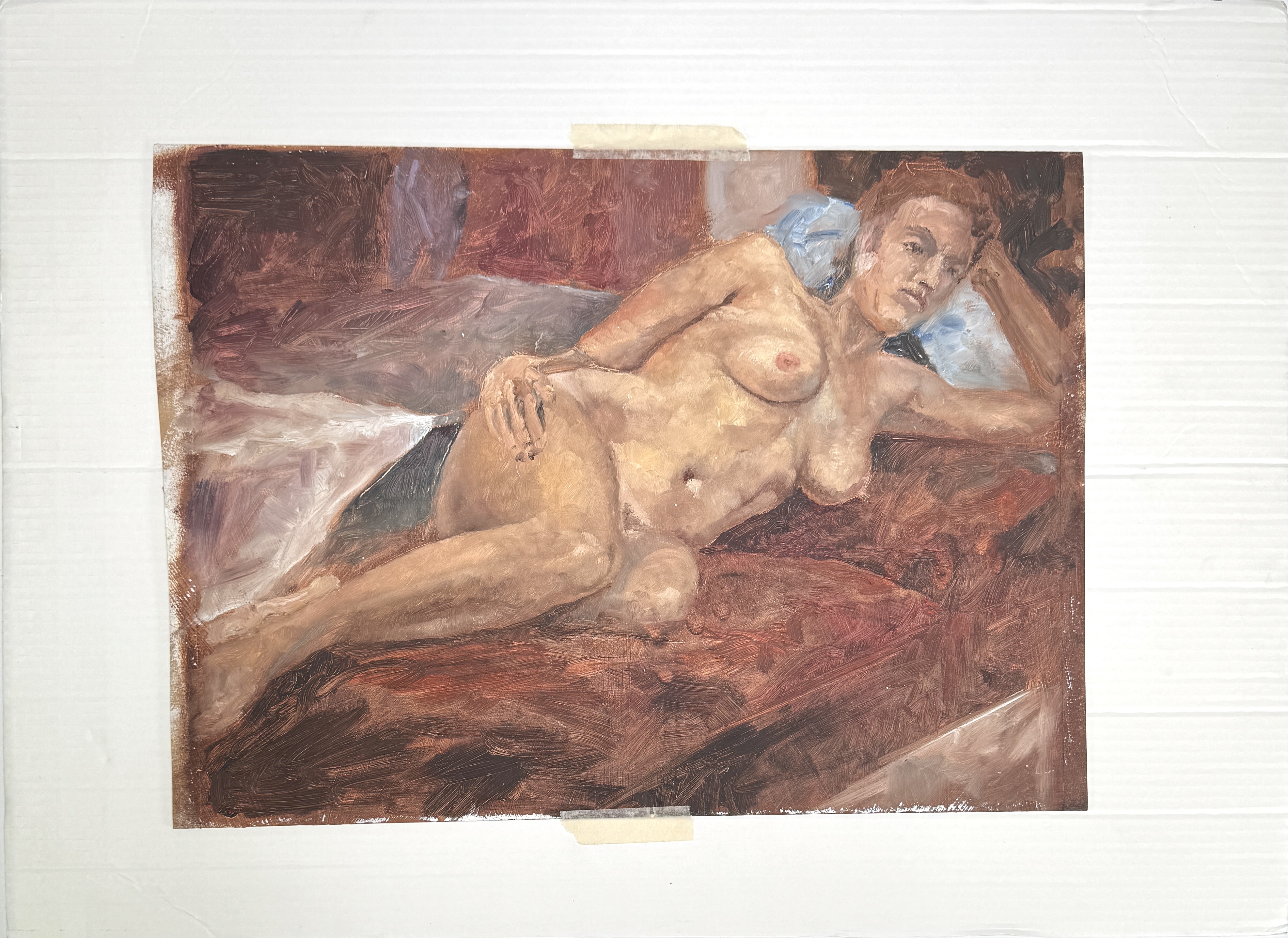 Olieverfschilderij, liggend vrouwelijk naakt, midden 20e eeuw