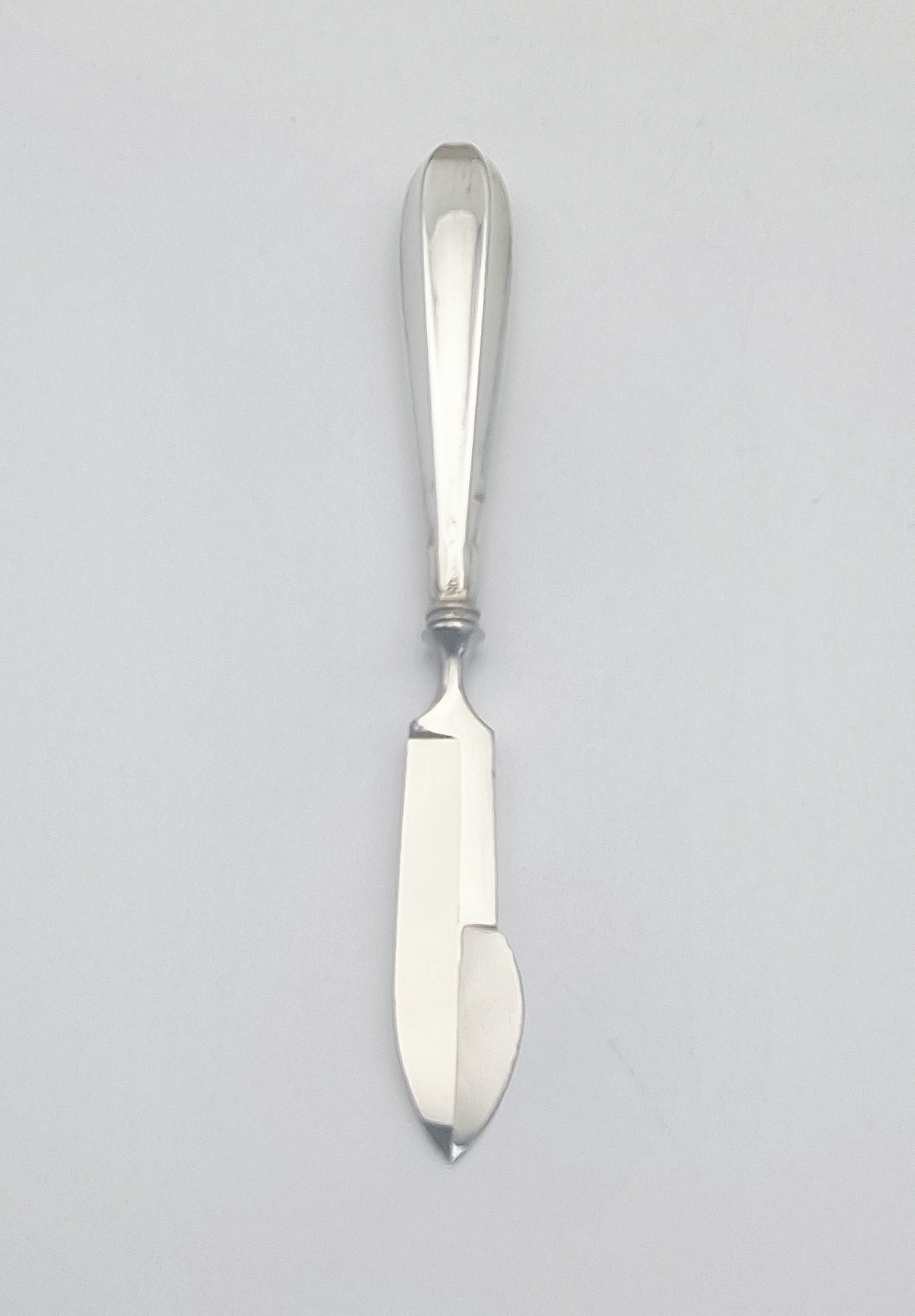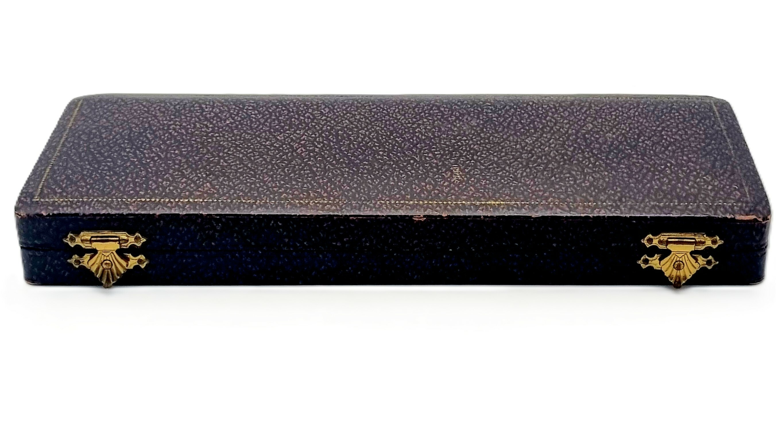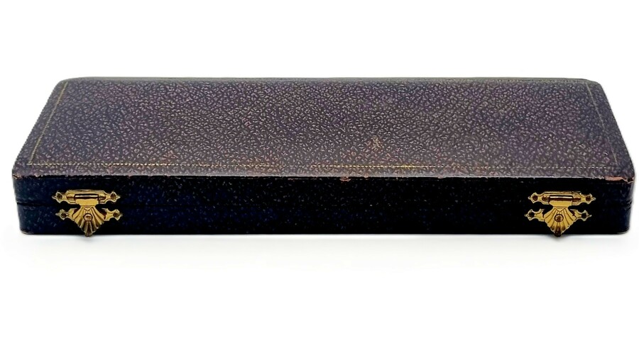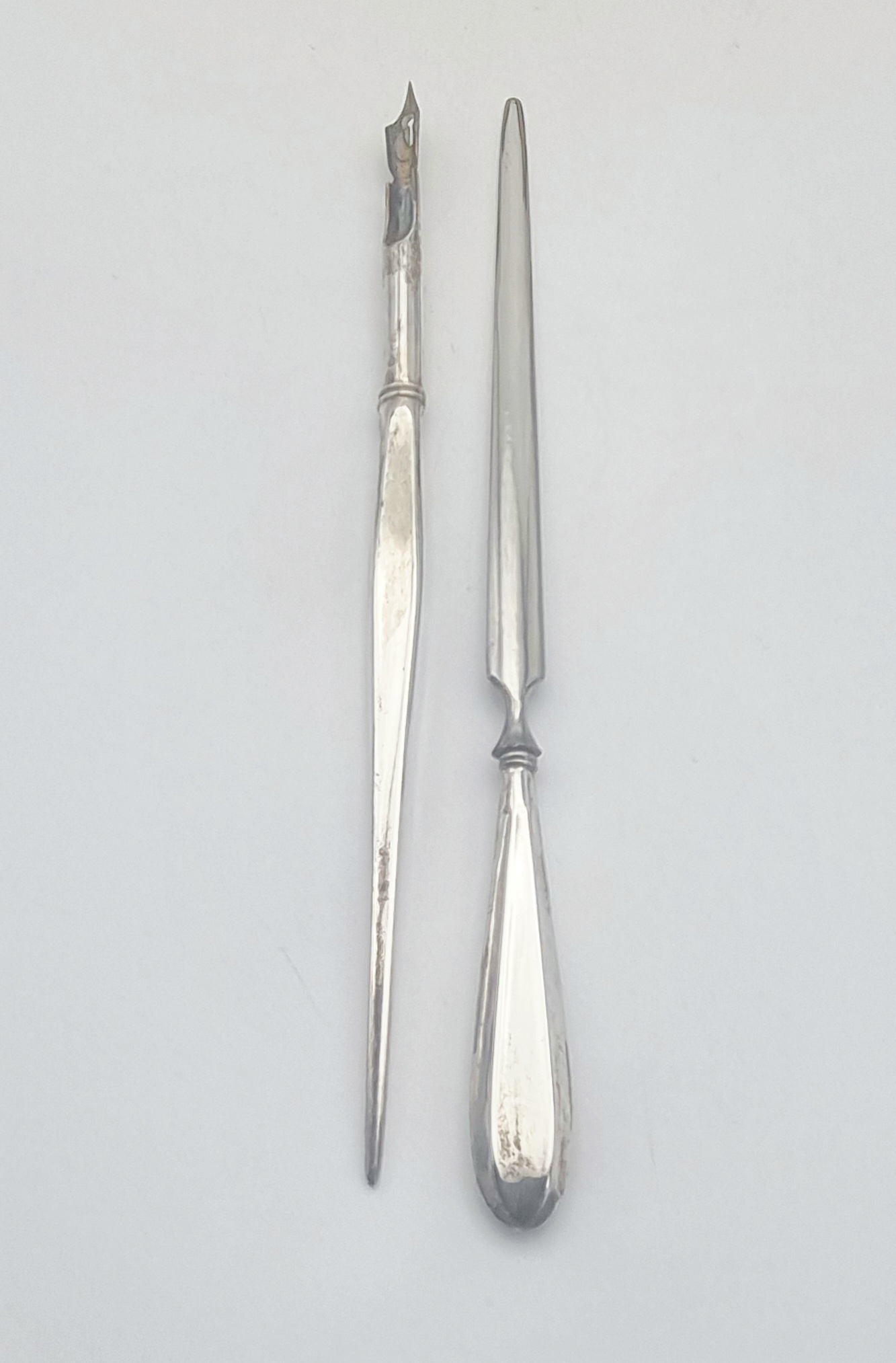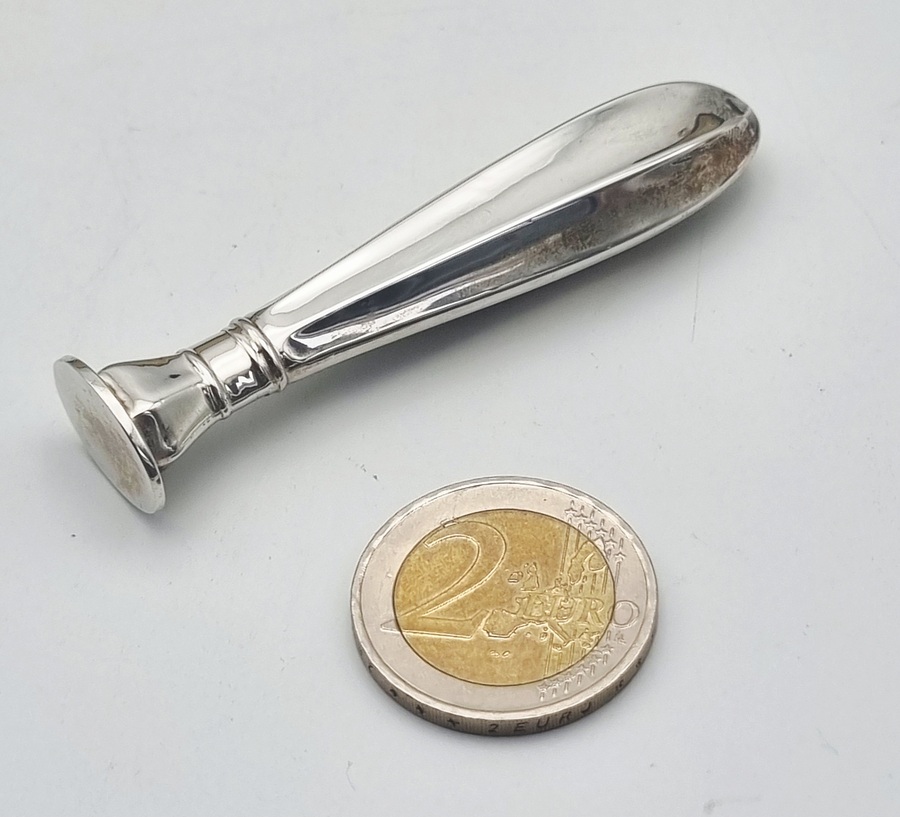 Zilveren schrijfset, eerste helft 20e eeuw, bestaande uit een kroontjespen met metalen penpunt, briefopener, lakstempel en lakmesje, alle met identieke peervormige zilveren handgrepen in neoklassieke stijl. Het geheel is uitgevoerd in zilver gemerkt halve maan met kroon en 800, gepresenteerd in het originele doosje. Wil je direct deelnemen? Plaats vanaf 22 augustus alvast een schriftelijk bod via onze website! |