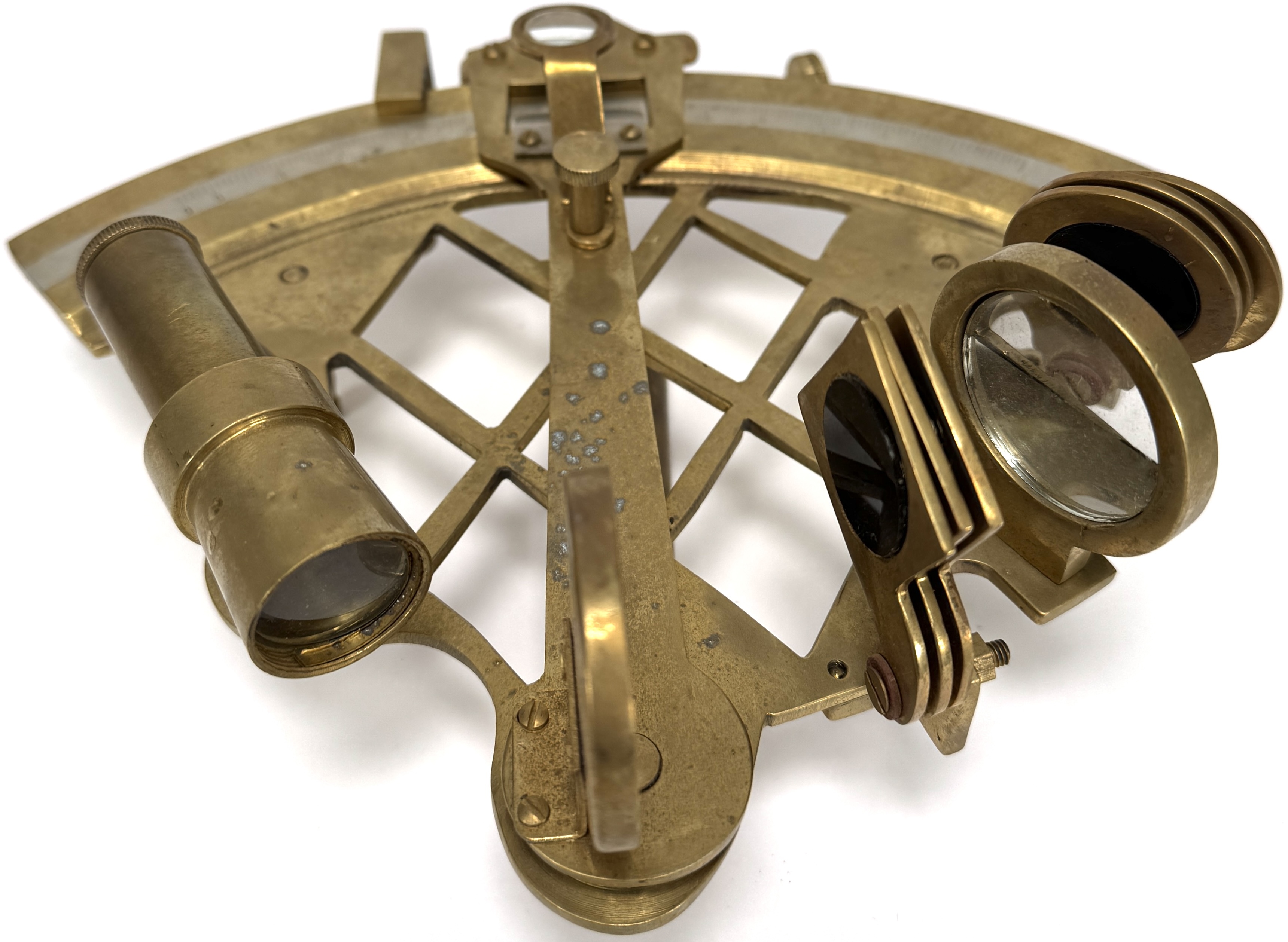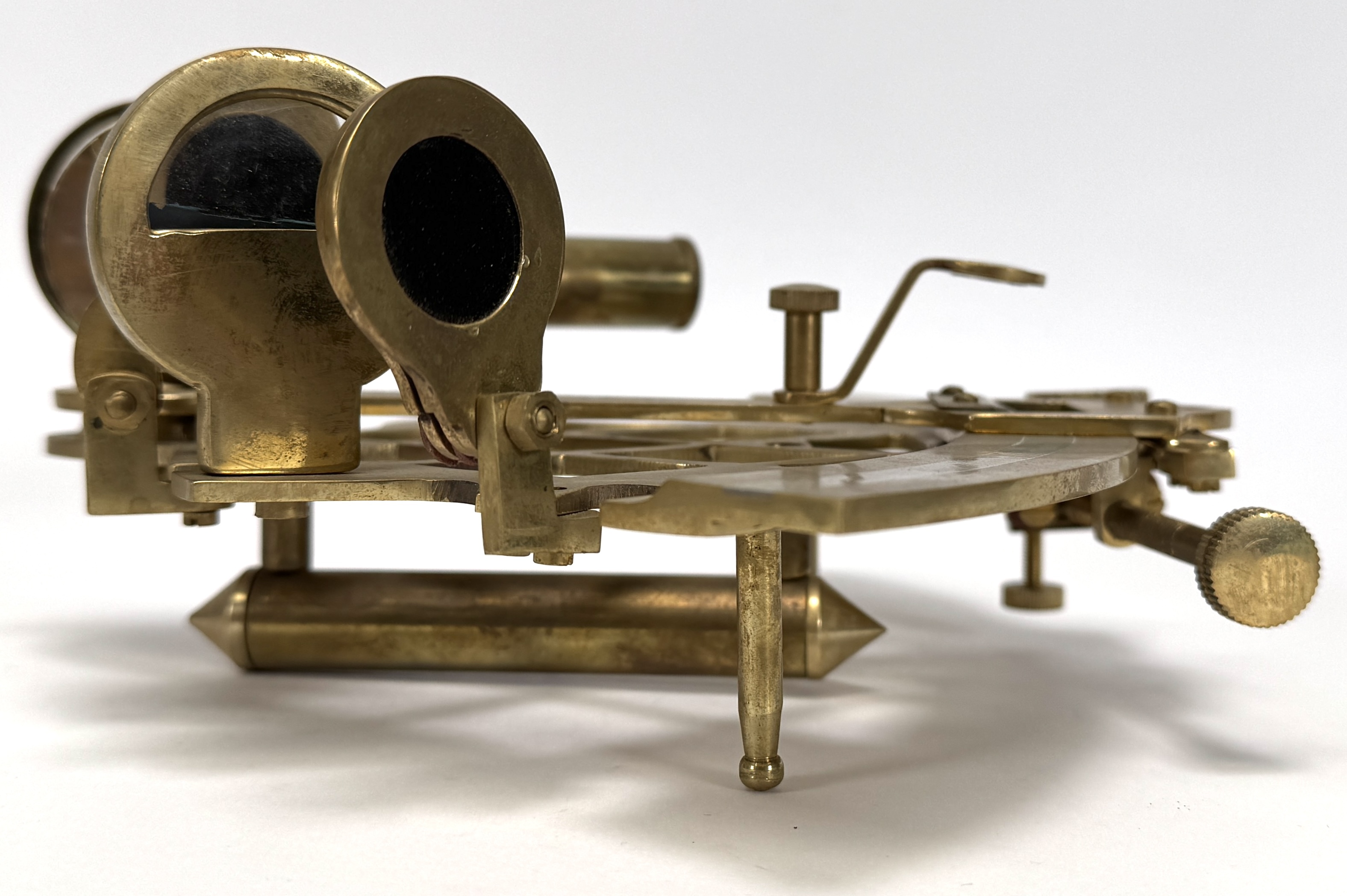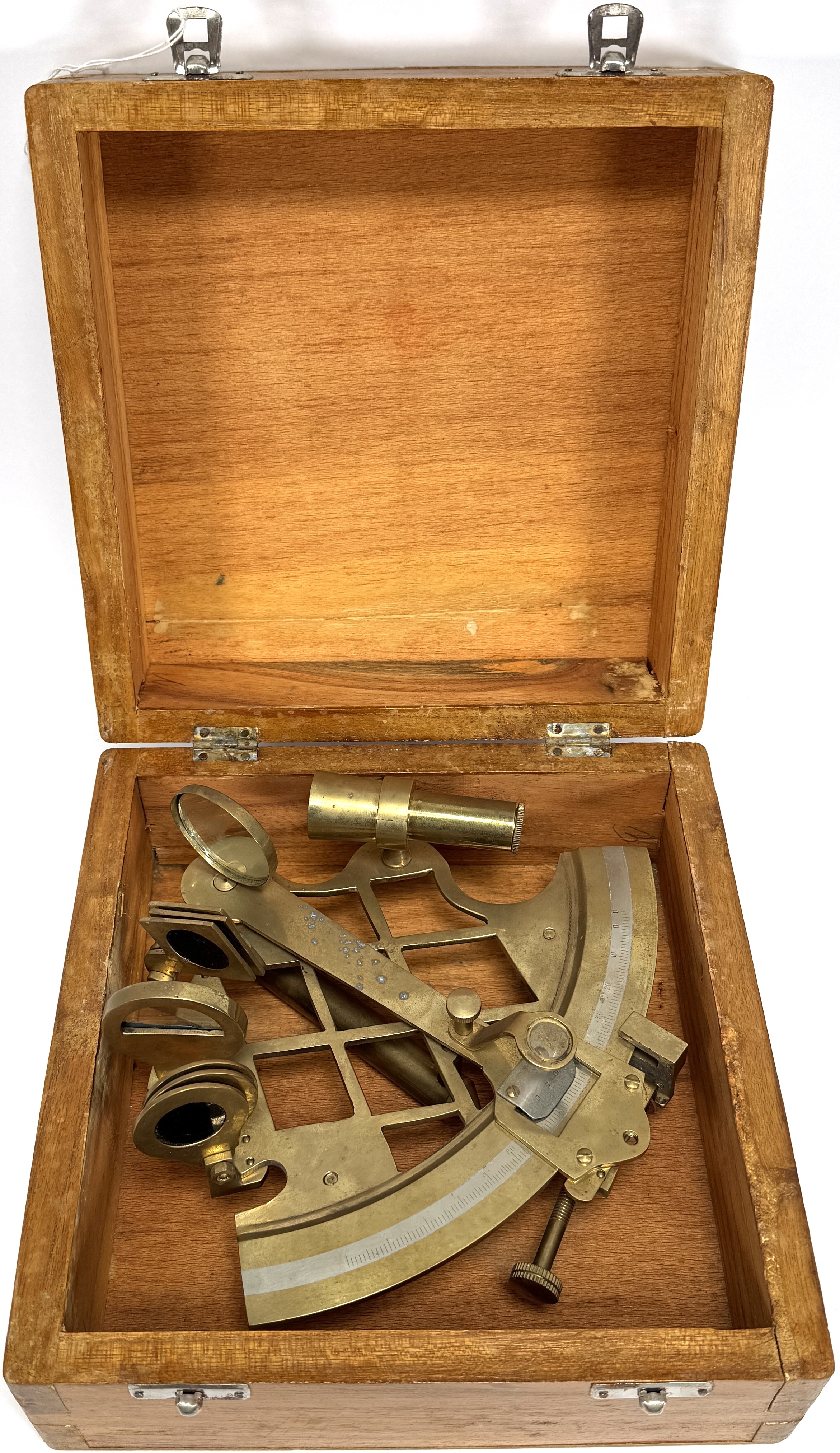 Messing sextant in houten kist, eerste helft 20e eeuw