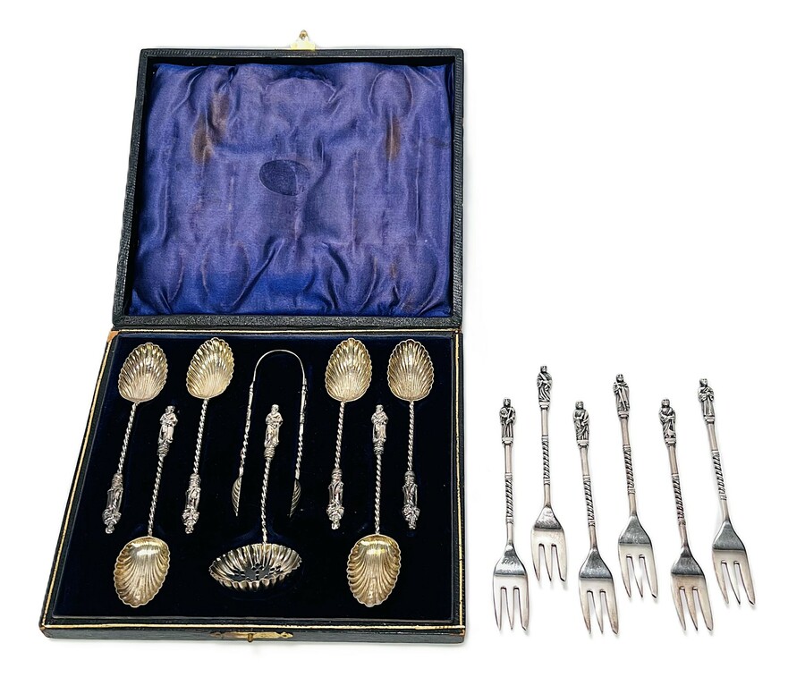 Zilveren theelepels en suikergerei M. Bros, 1871, Engeland
