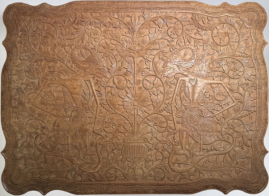 Gesneden houten naaitafel, eerste helft 20e eeuw