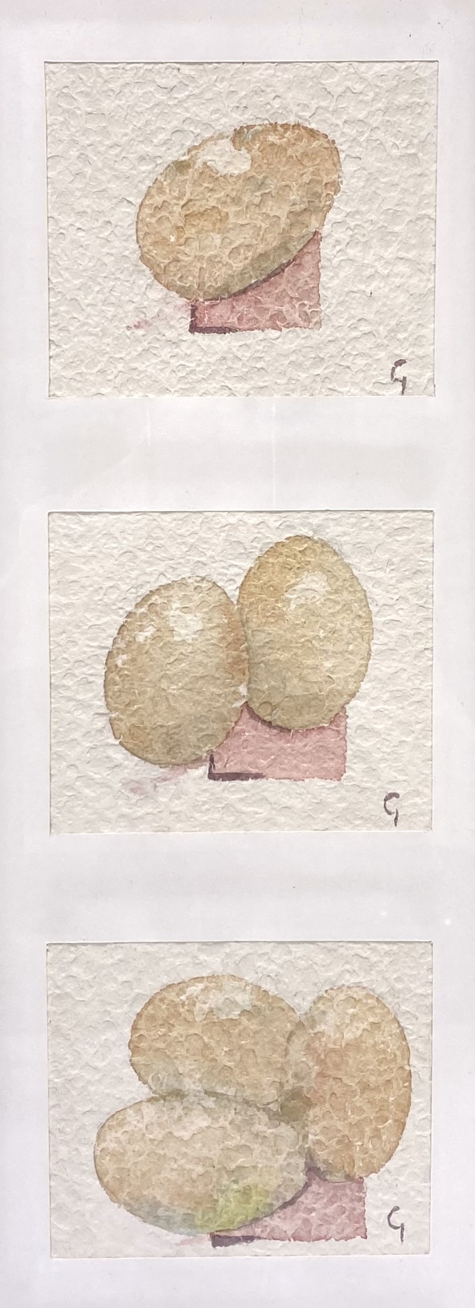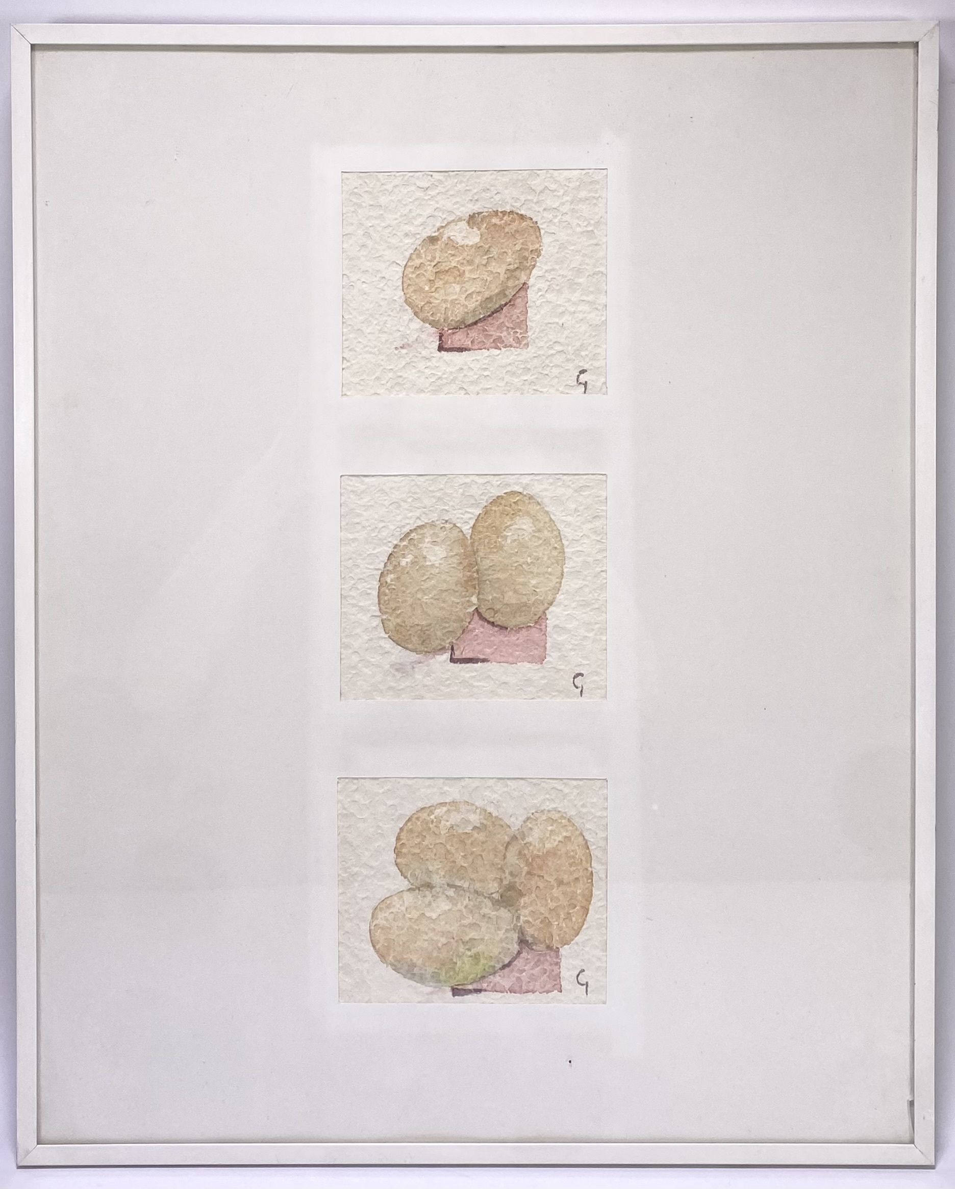 Aquarel Geertruida van Hoogen, eieren in driedelige compositie, 1988, Nederland
