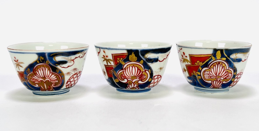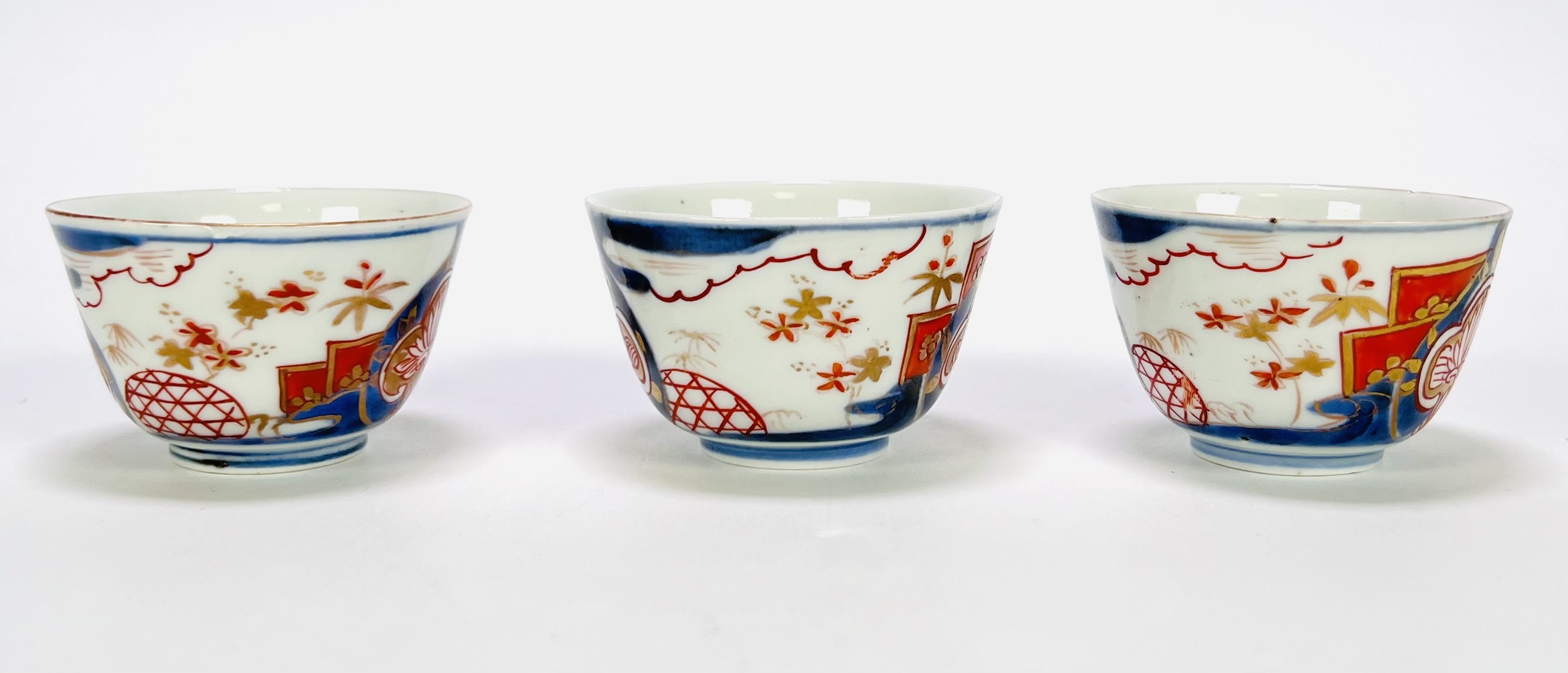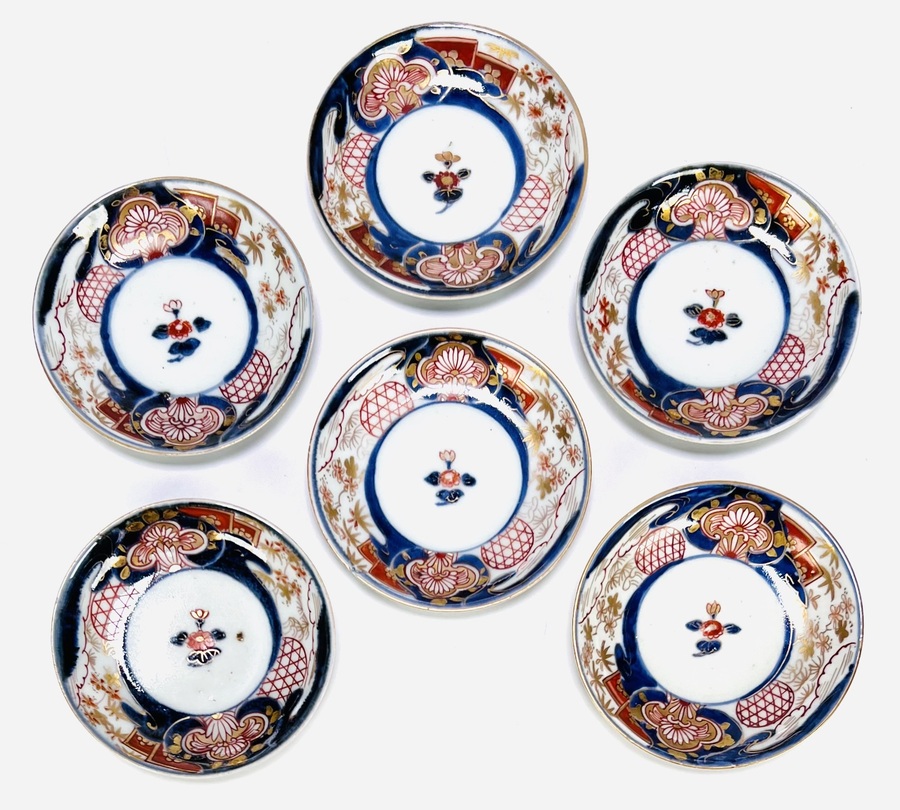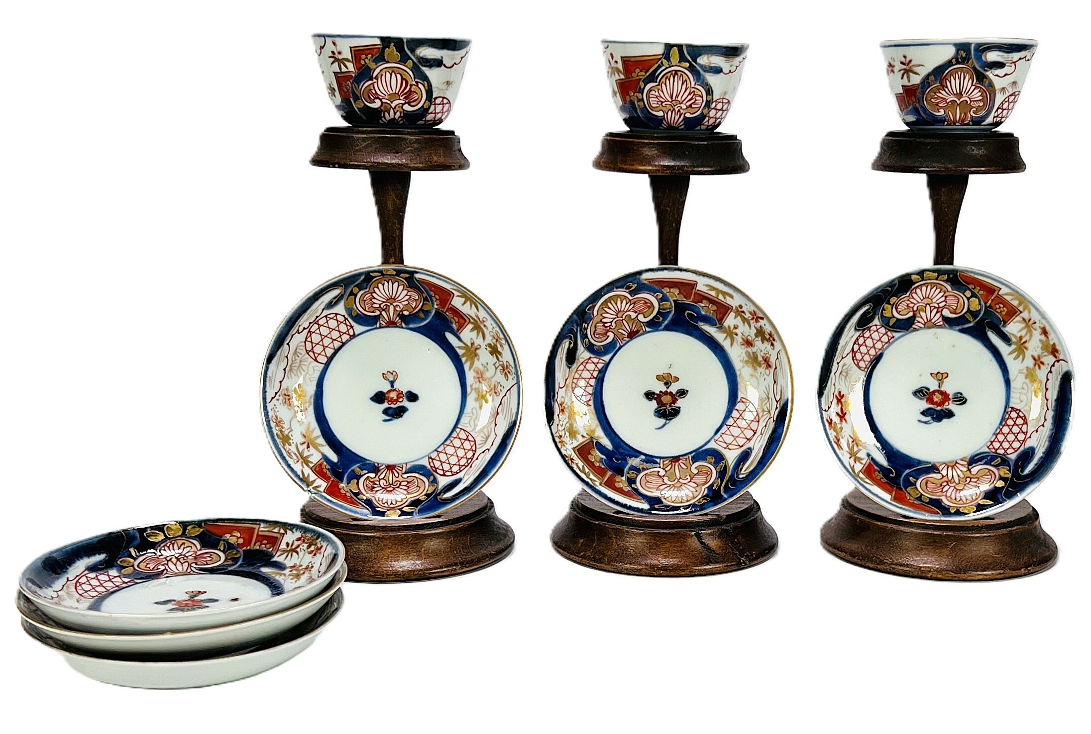 Porseleinen Imari theekommen en schotels, 18e eeuw, Japan