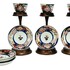 Porseleinen theekopjes en schotels, Imari, 18e eeuw. Handbeschilderd in onderglazuur blauw en bovenglazuur rood en goud, met florale motieven, cartouches en geometrische patronen. De binnenzijde van de kopjes en het centrum van de schotels tonen een bloemdecoratie binnen dubbele blauwe cirkels. . Geïnteresseerd? Bezoek onze kijkdagen voor een persoonlijke bezichtiging! |