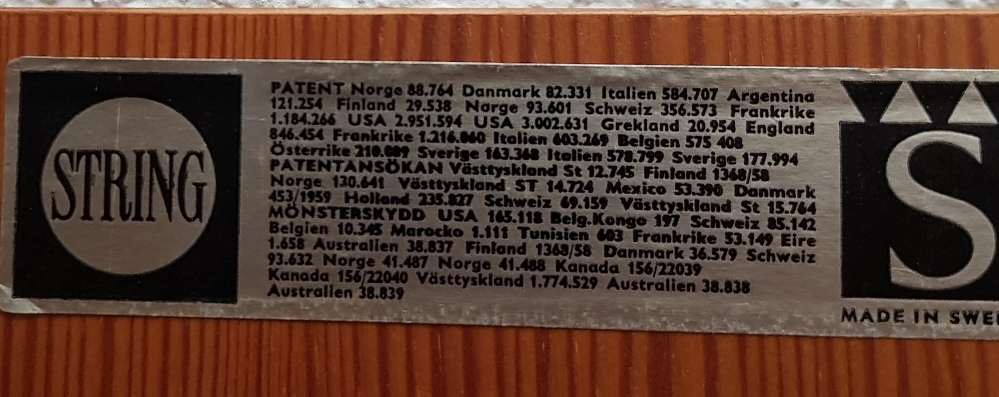 | Kavelnummer en naam | 1908. Wandrek Nils Strinning, "String System", ca. 1960, Zweden | |