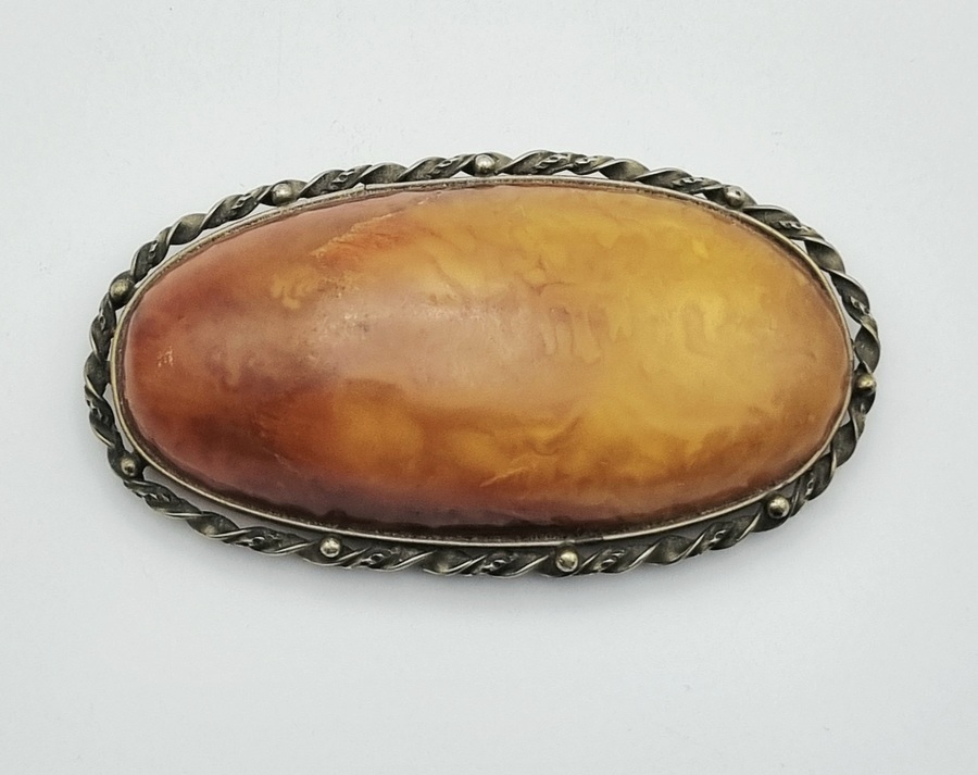 1583. Broche barnsteen in zilveren zetting, begin 20e eeuw