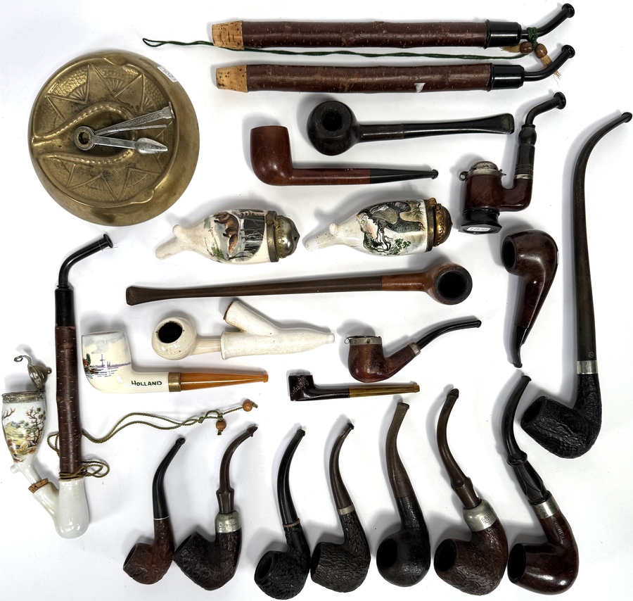 Collectie pijpen uit de 19e eeuw en eerste helft van de 20e eeuw, samengesteld uit diverse exemplaren van hout, klei en porselein, deels met metalen monturen. Kenmerkend zijn de porseleinen pijpenkoppen met figuratieve schilderingen, de lange houten pijpen met afsluitdoppen en meerdere klassieke bruyère pijpen. De verzameling toont variatie in techniek, uitvoering en gebruik.