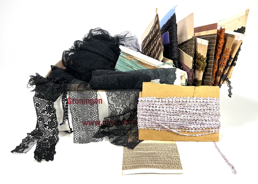 Partij kant en tule van circa 1930 tot de midden 20e eeuw. De collectie omvat verschillende soorten en stijlen kant. De kleuren variëren van zwart, wit en bruin, en de patronen van florale motieven tot meer geometrische ontwerpen. De objecten zijn vervaardigd van textiel en synthetische materialen.