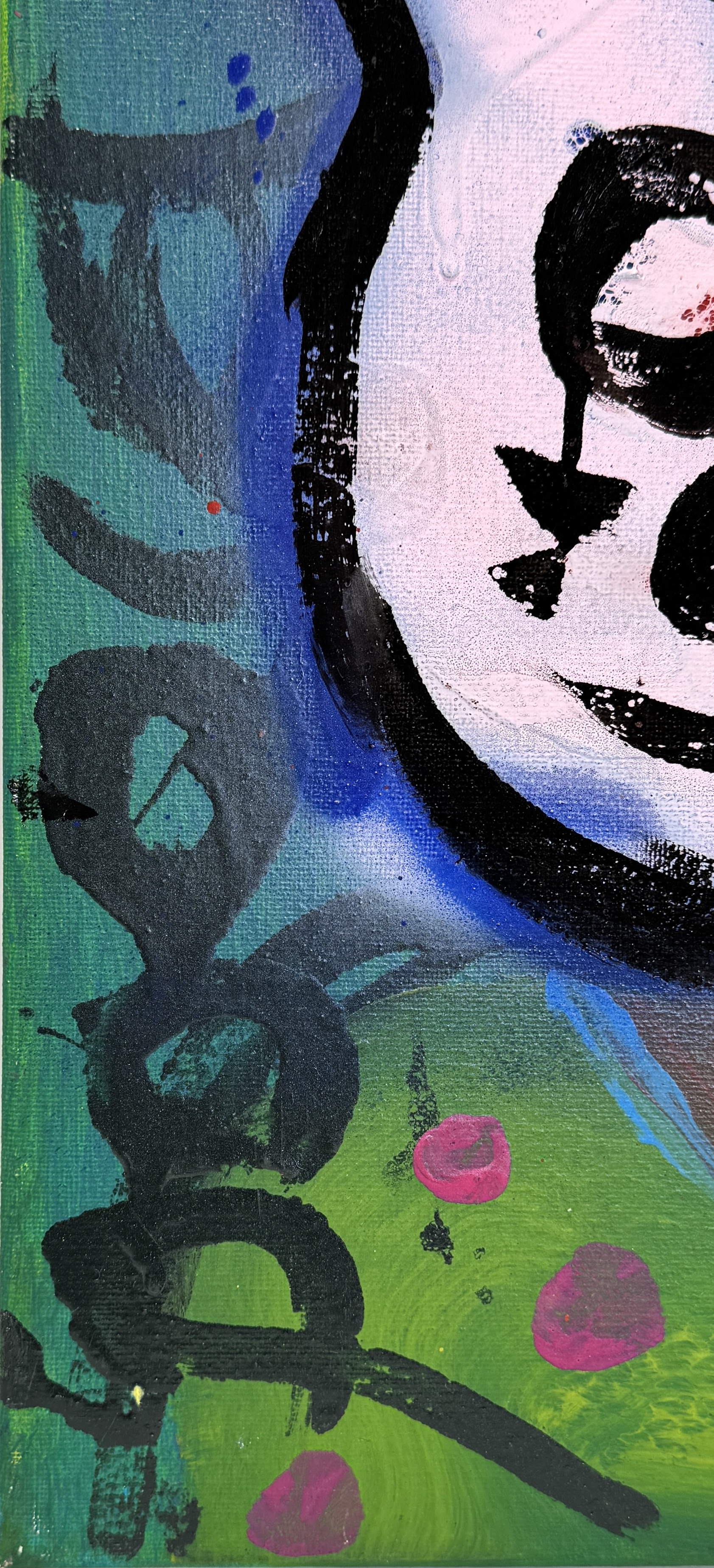 Acrylverfschildering op doek, vervaardigd eind 20e eeuw in een expressionistische stijl naar Herman Brood. Een gestileerde voorstelling van een konijnachtig figuur in zwart, roze en blauw tegen een groene achtergrond met roze stippen, met expressieve penseelvoering en druiptechniek. Eerst dit doek zien voordat je biedt? Bezoek onze kijkdagen op 28, 29 en 30 november van 11:00 tot 17:00 uur! |