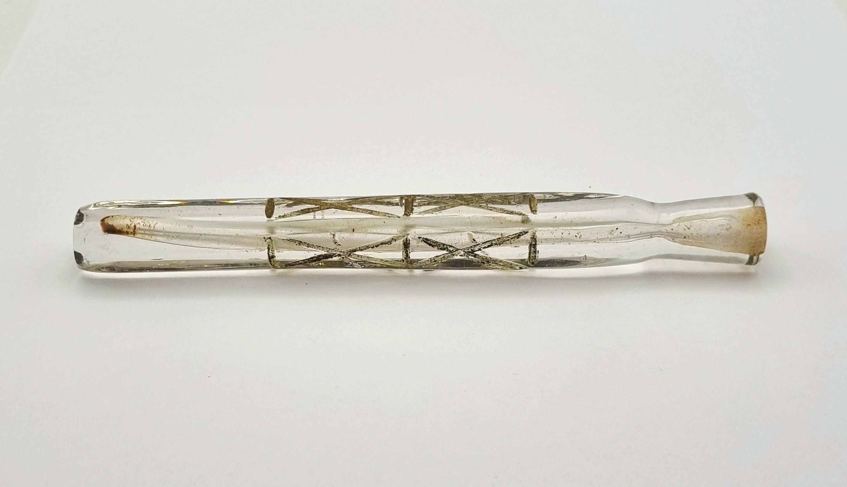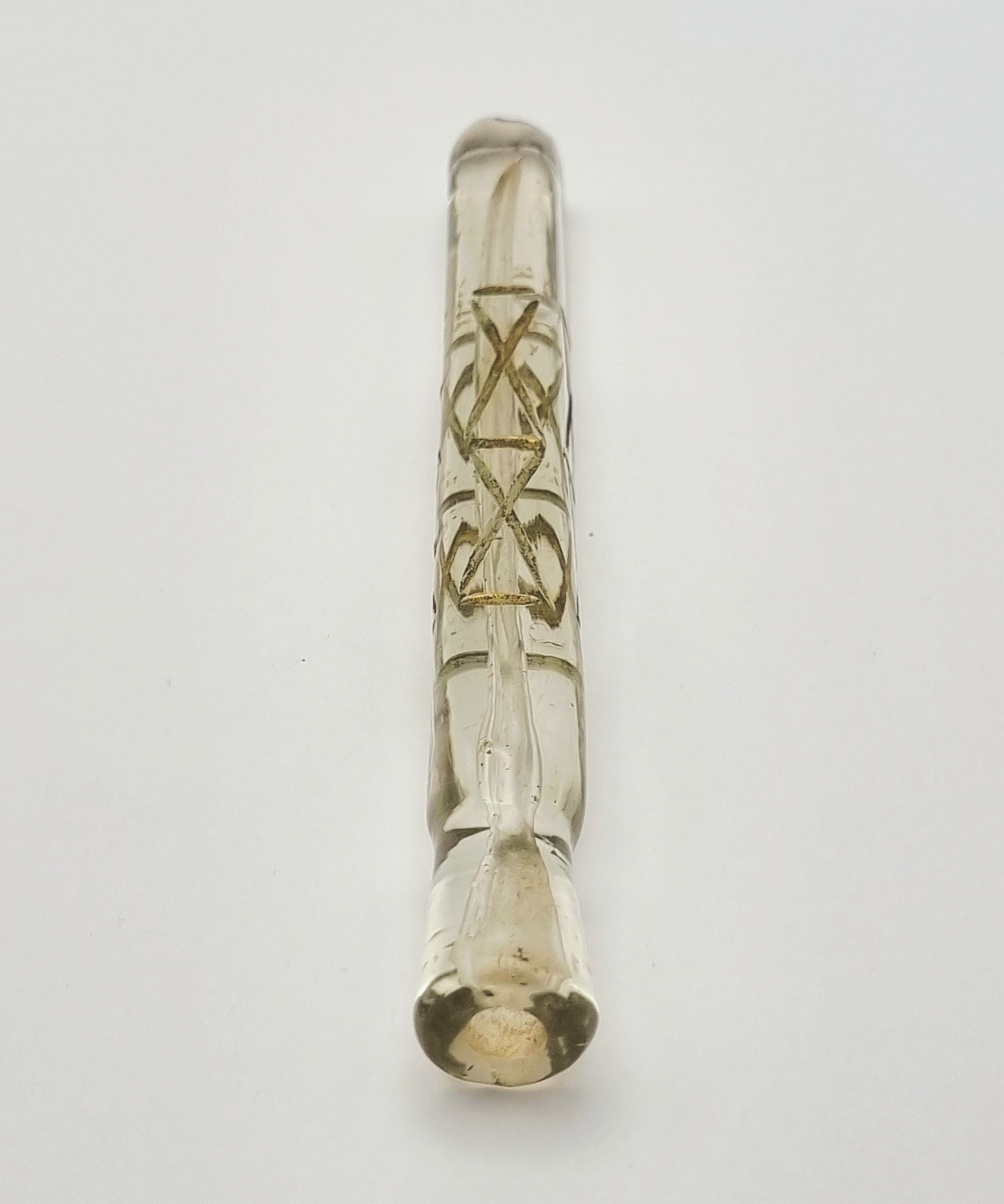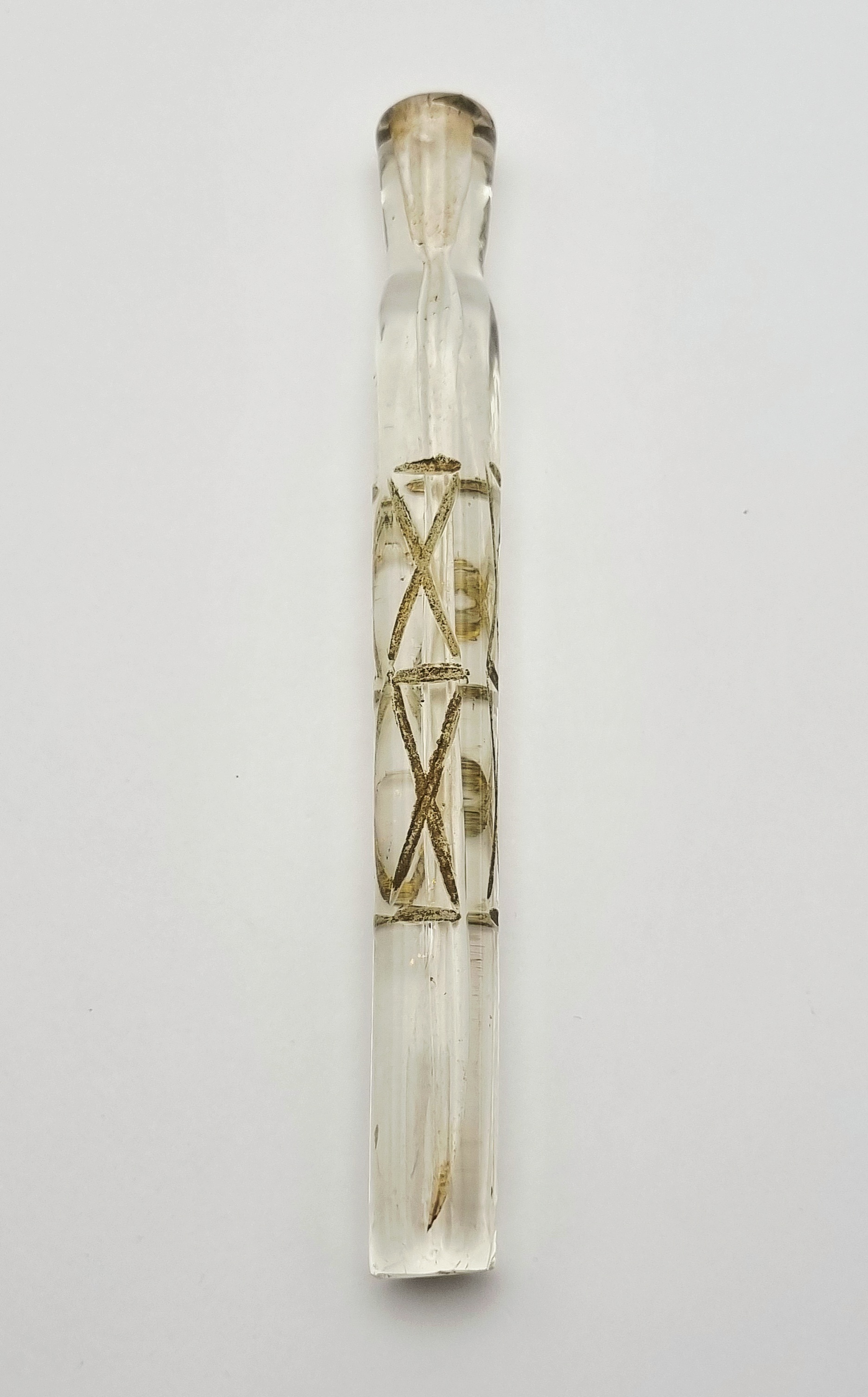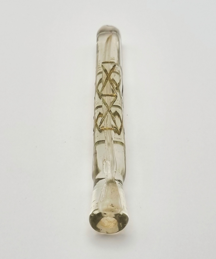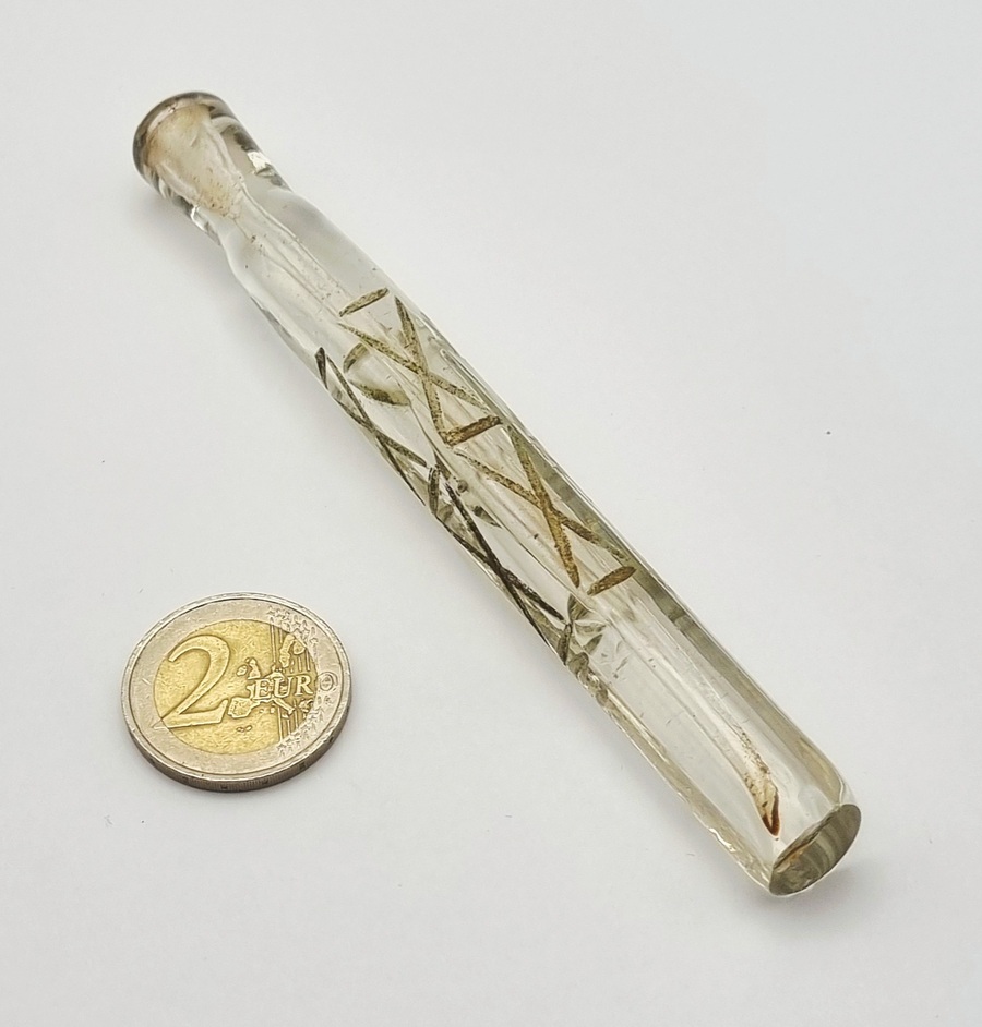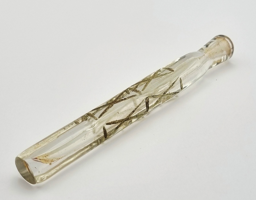 Een Victoriaanse glazen tranenvanger uitgevoerd in helder loodglas door mondblazen en slijptechniek, uit de tweede helft 19e eeuw, Engeland. Het cilindrische lichaam is gedecoreerd met uitgeslepen X-vormige patronen, waarin goud is aangebracht door middel van koudschildering. Kom langs tijdens de kijkdagen (28 t/m 30 november) en ontdek dit Victoriaanse glazen tranenvanger zelf! |