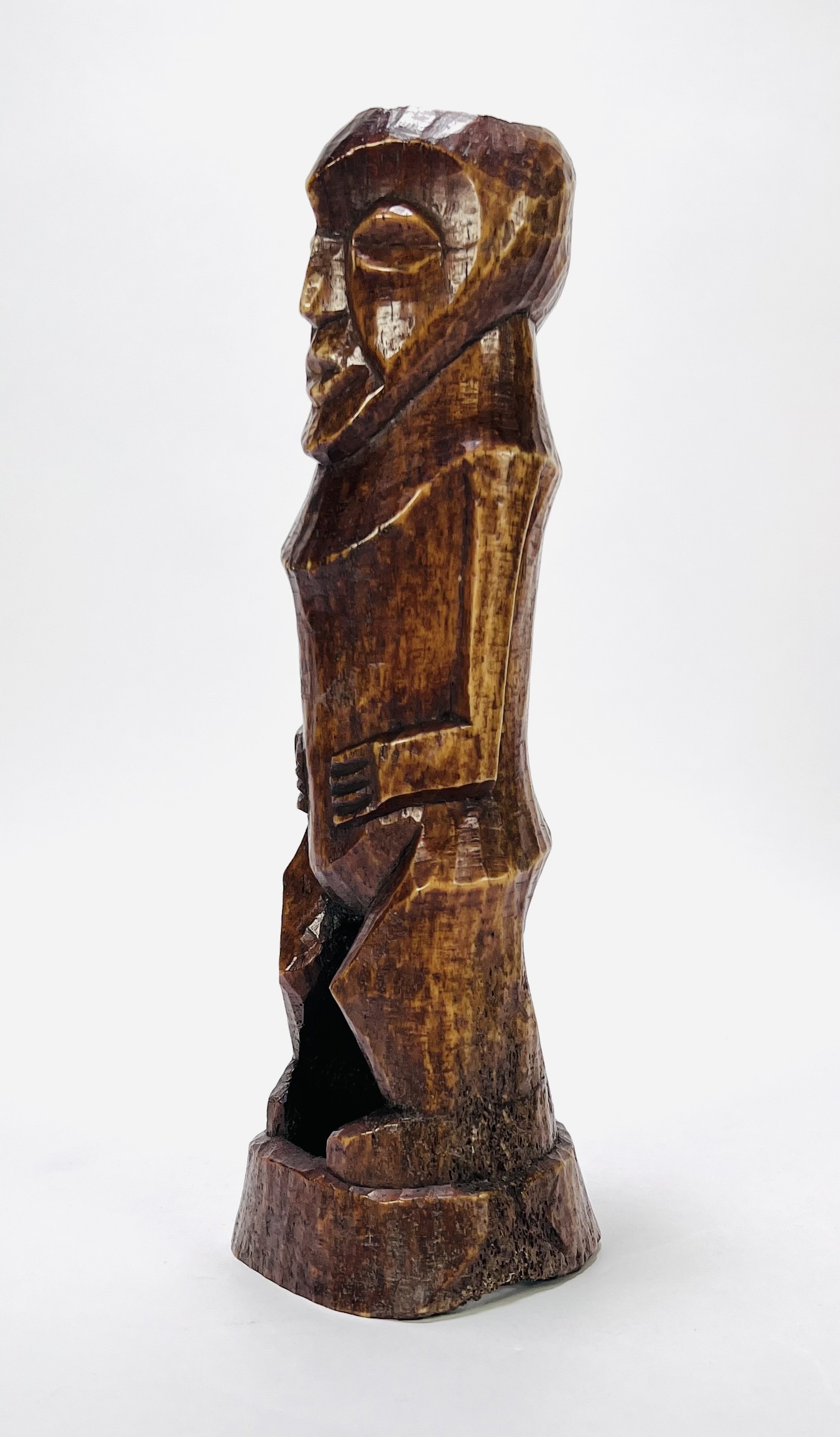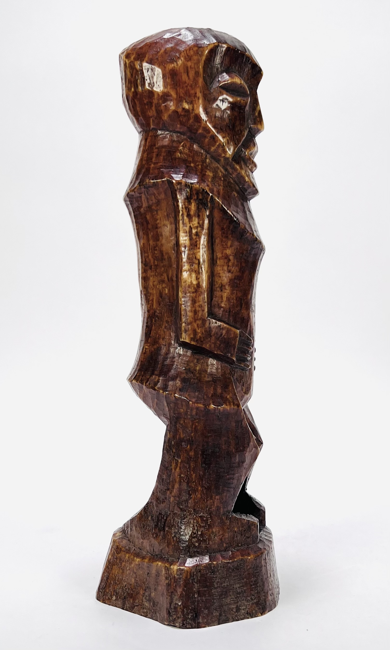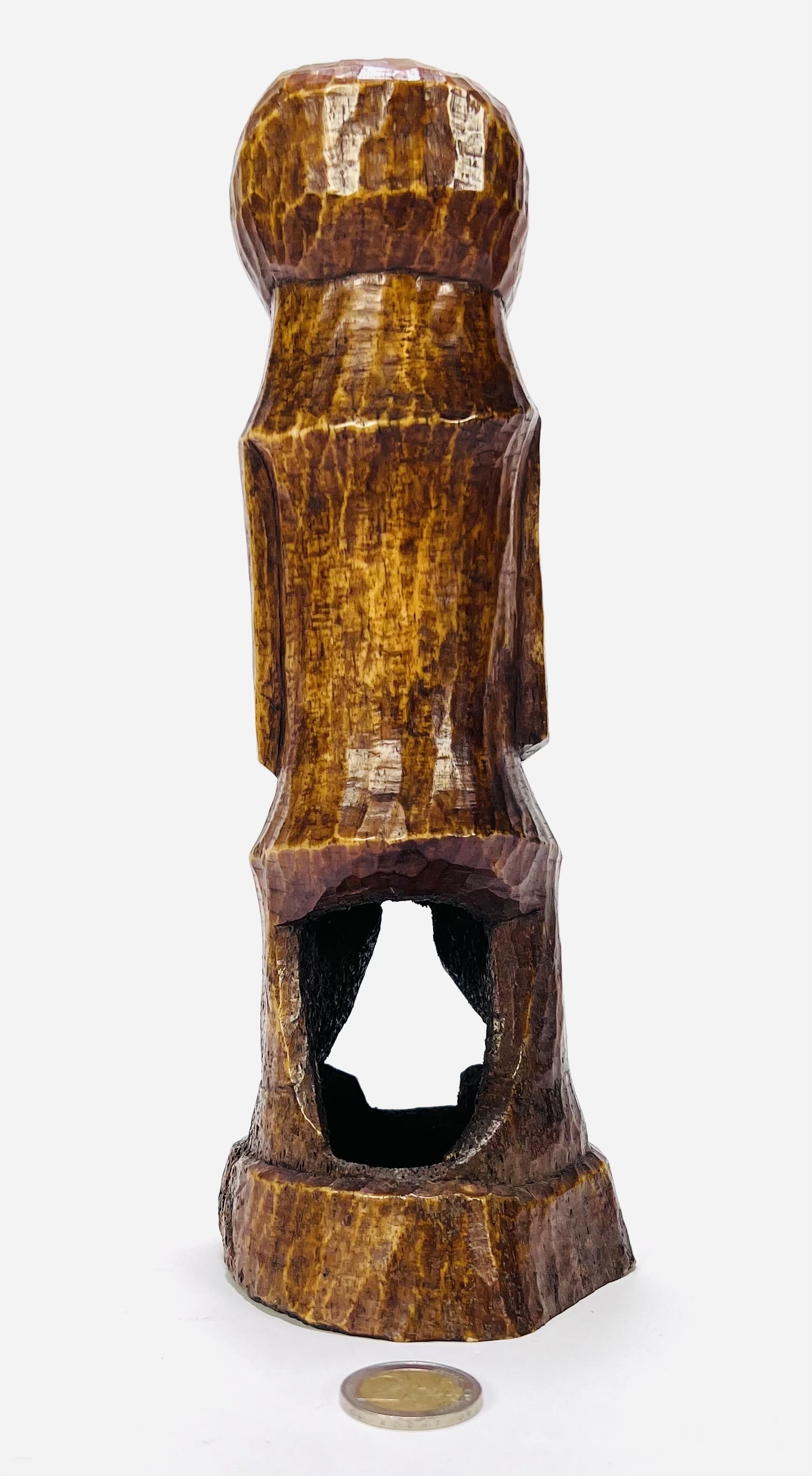 Beeld uit been, midden 20e eeuw, Centraal-Afrika, Congo-regio. Het beeld toont een gestileerde menselijke figuur met amandelvormige ogen, hoekige gelaatstrekken en eenvoudig gesneden ledematen. Mt een holle binnenzijde, zichtbare botstructuur en geometrisch vereenvoudigde proporties. Wil je direct deelnemen? Plaats vanaf 21 november alvast een schriftelijk bod via onze website! |