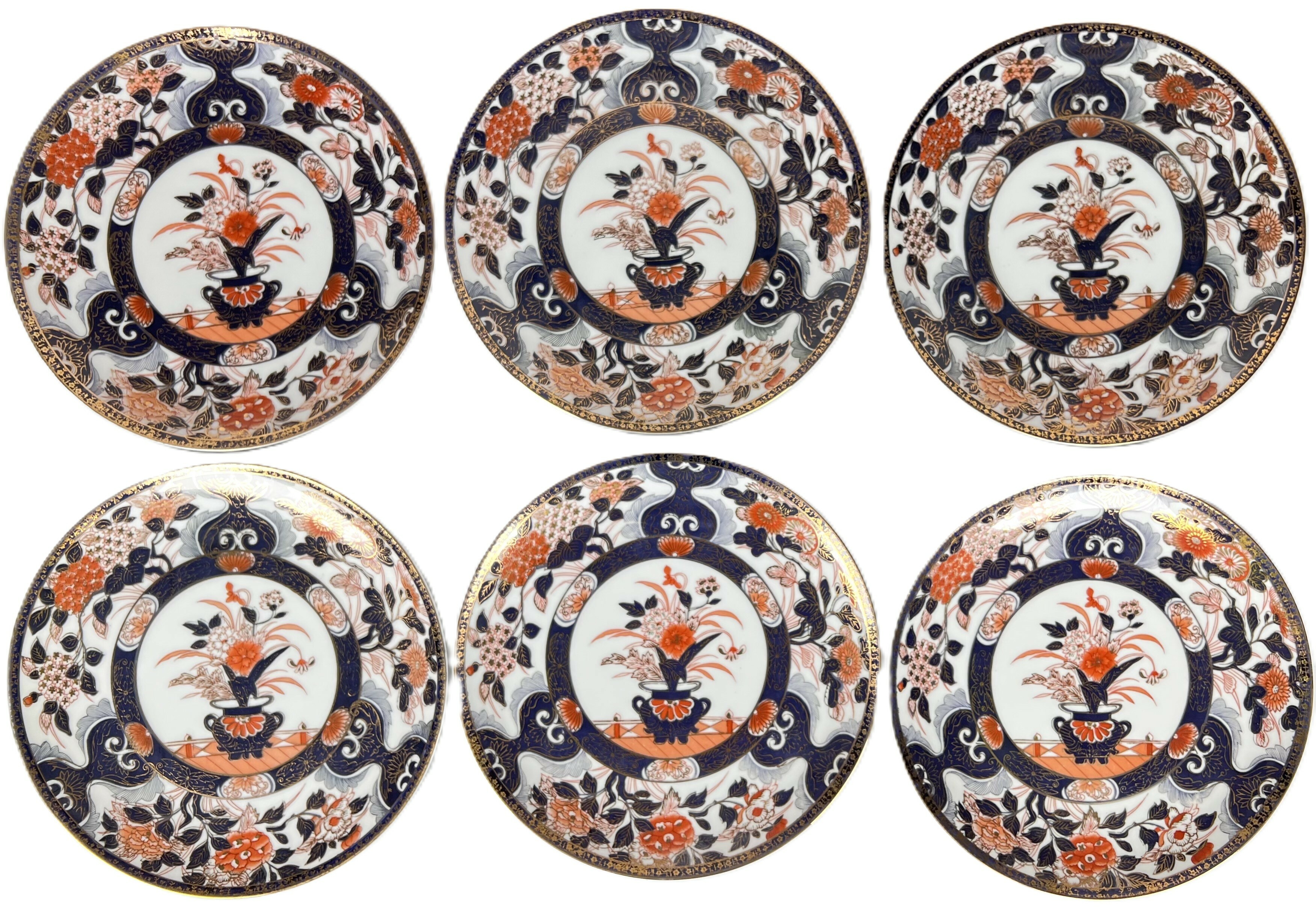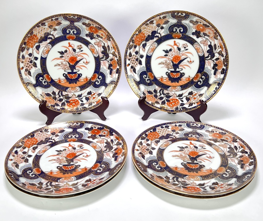 Zes porseleinen Imari borden uit Japan, vervaardigd in de Arita-regio voor de exportmarkt. De borden dateren uit de midden 20e eeuw met decoratie in onderglazuur blauw en overglazuur rood. De centrale bloemenvaas en de randen zijn traditioneel versierd. Geïnteresseerd? Bezoek onze kijkdagen op 28, 29 of 30 november van 11:00 tot 17:00 uur! |