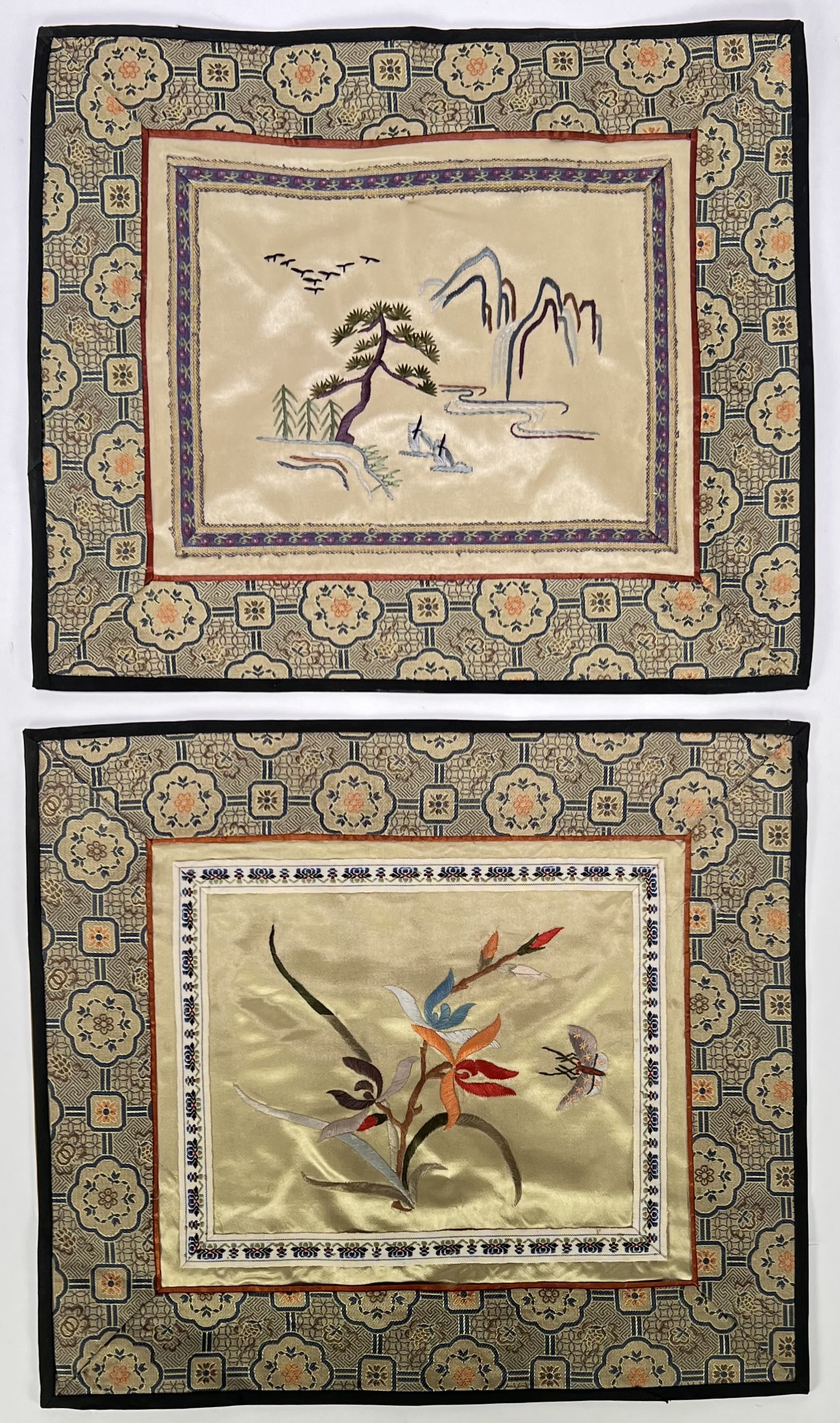 Borduurwerk op zijde - landschap en floraal motief, ca. 1915, China