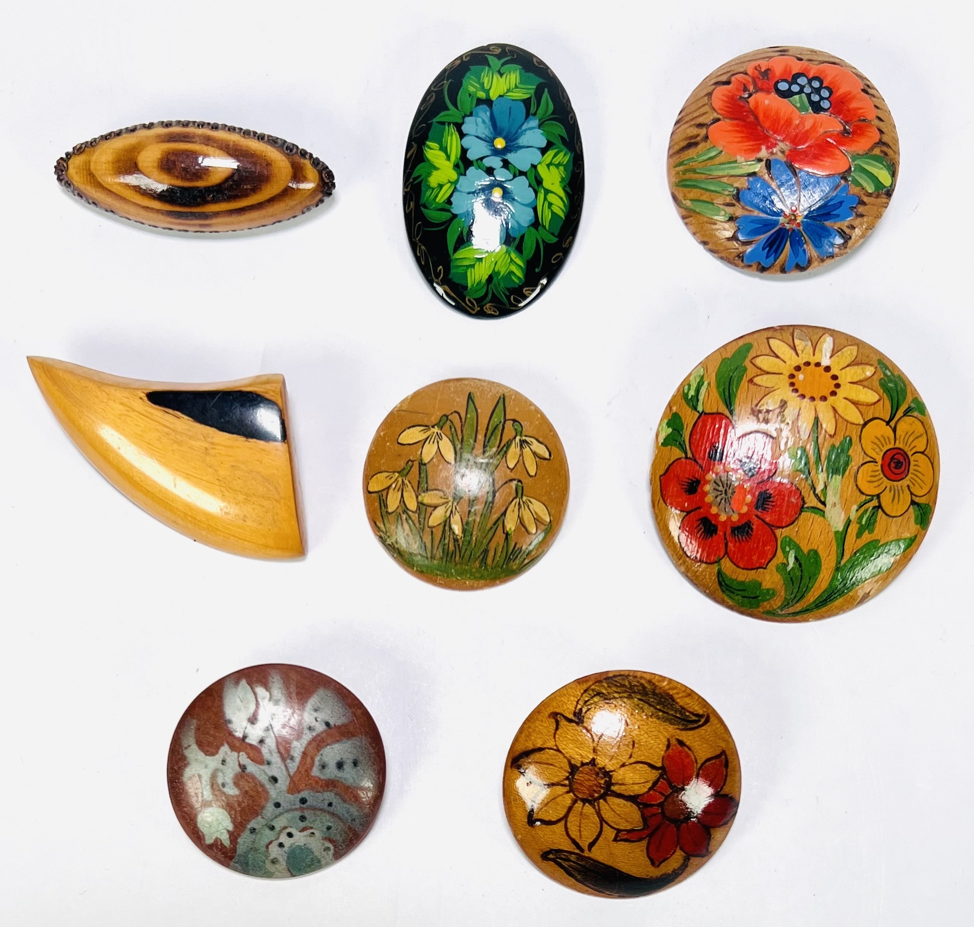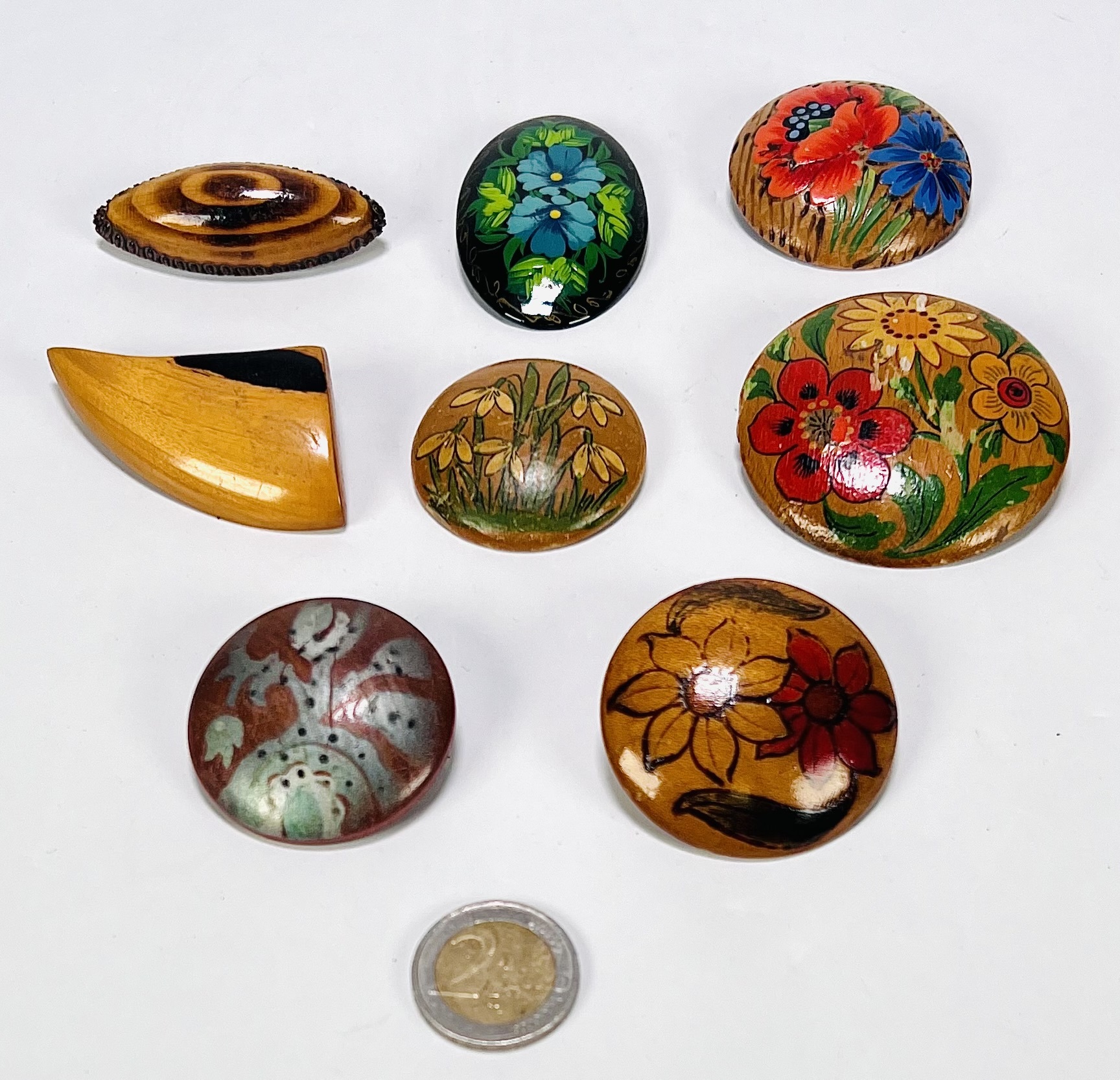 | Kavelnummer en naam | 989. Houten broches, ca. 1960 – Volkskunst en Mid-Century bloemen | |