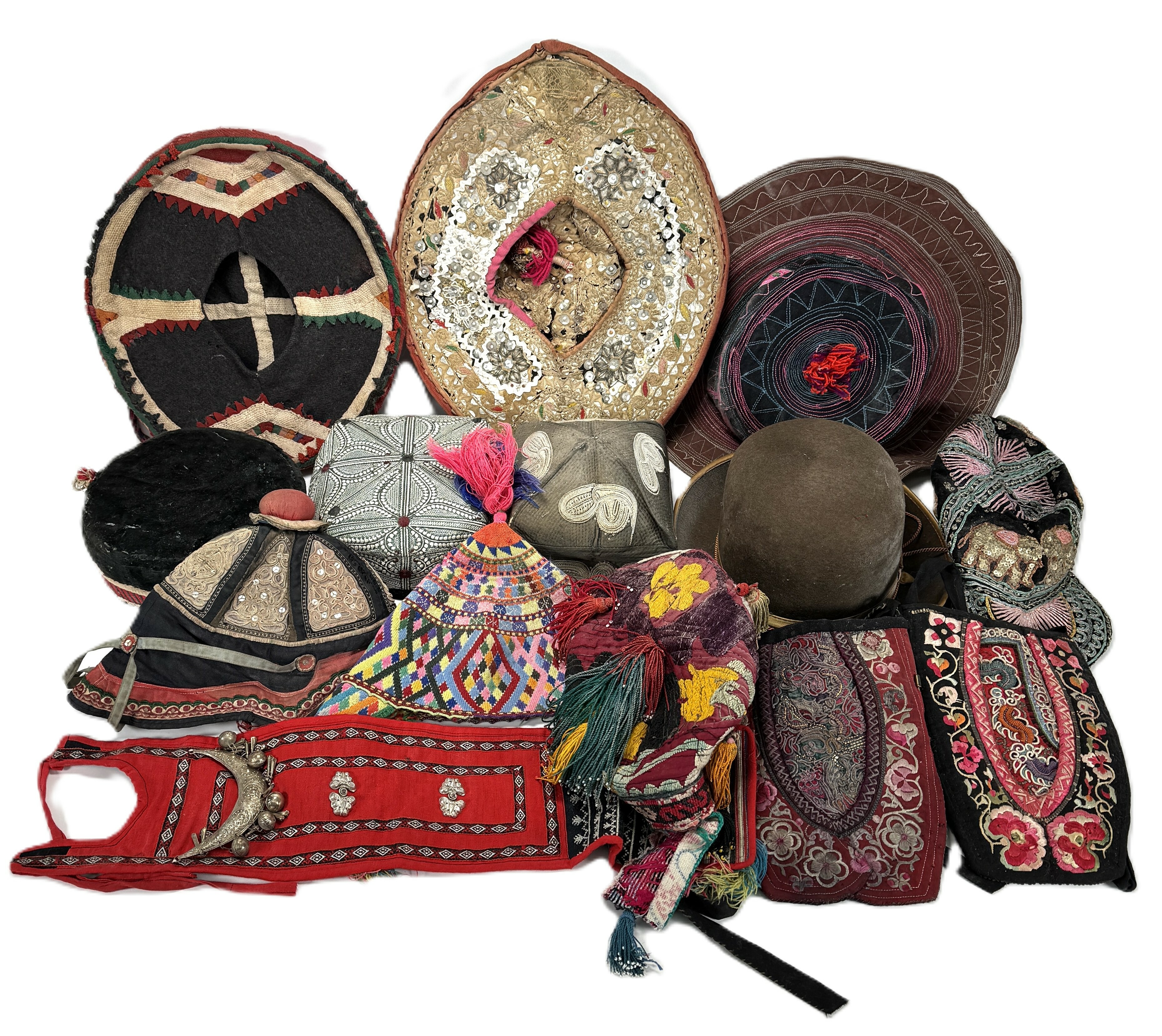 Convoluut etnografische hoofddeksels en tassen, tweede helft 20e eeuw