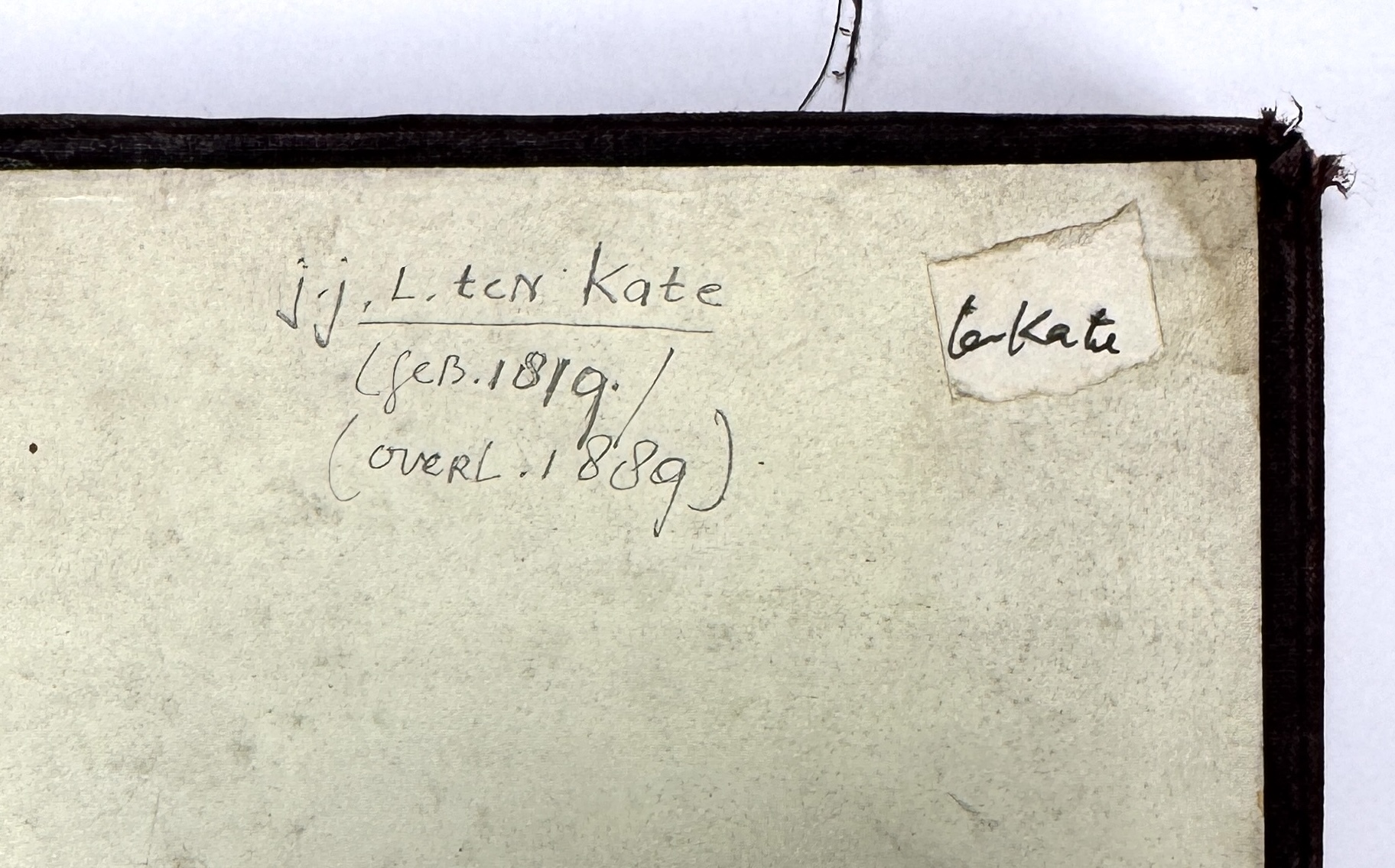 | Conditie | In matige tot redelijke staat; vergeeld, stof- en roestvlekken, kniksporen, stoot- en schaafplekken en boekblok gedeeltelijk los van rug. | |