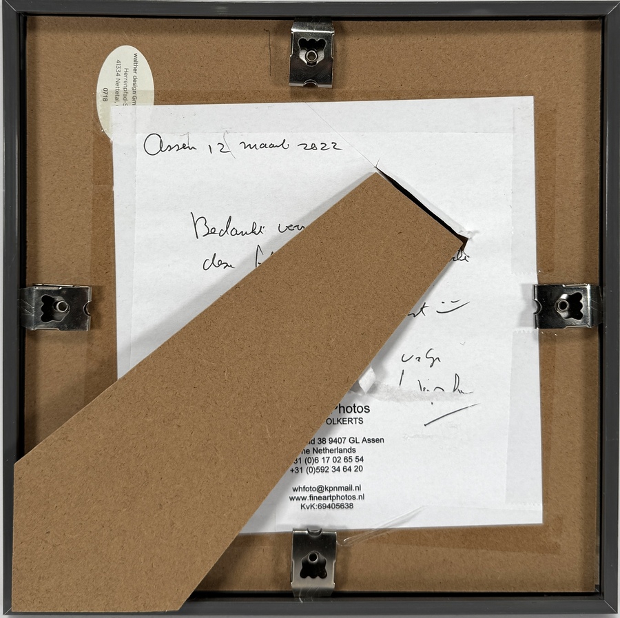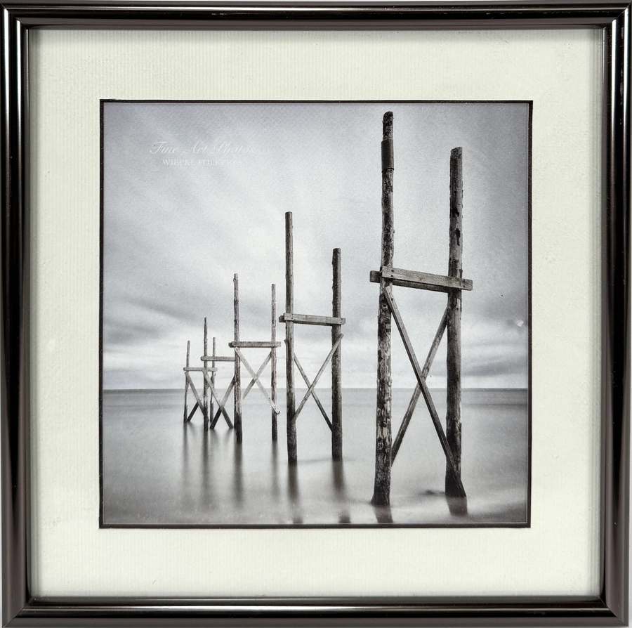 Kleurenfoto “Fine Art Photos” van Wiepke Folkerts uit de 21e eeuw. Digitale fine art print op polystyreen, met merkregel linksboven en handgeschreven notitie verso. Minimalistische weergave van houten pilaren in zee met zachte grijstinten. Uitgevoerd in matte afwerking. Voeg deze foto toe aan je verzameling en doe een bod! |