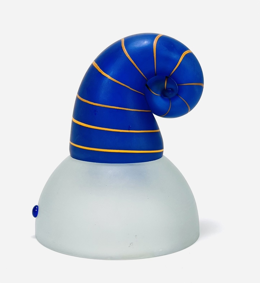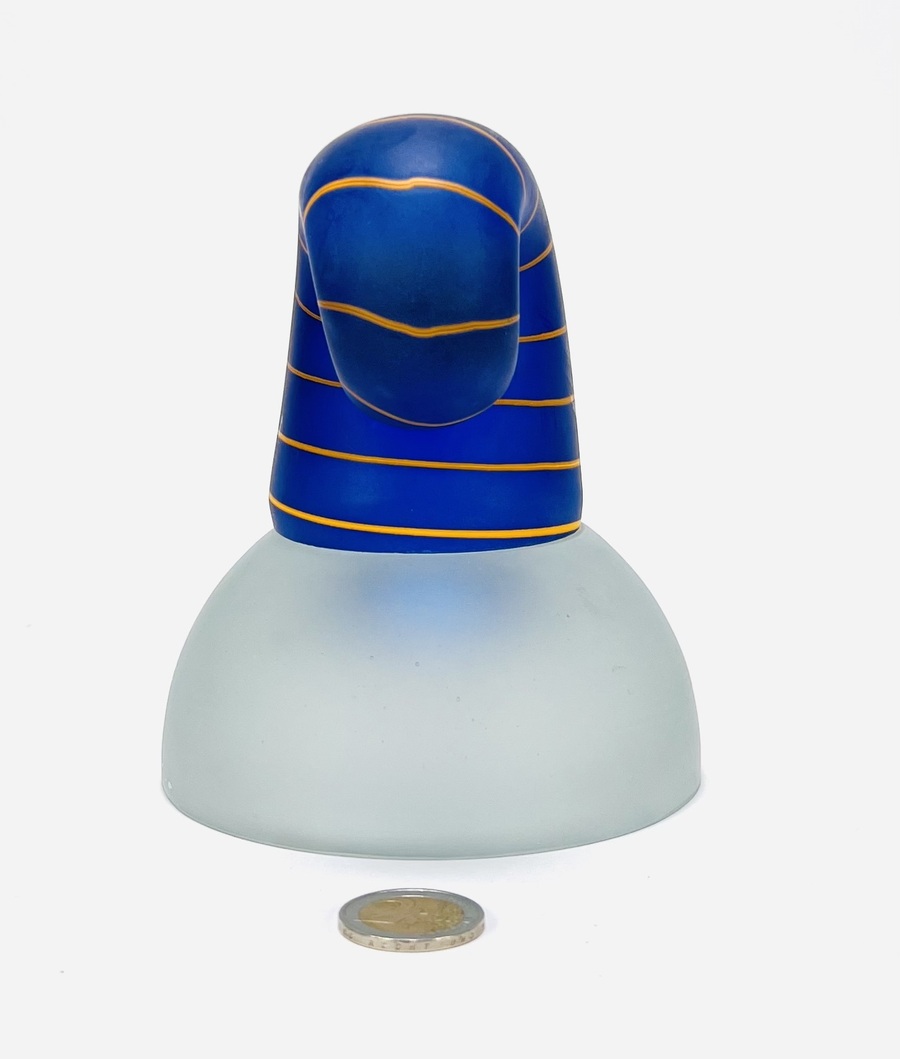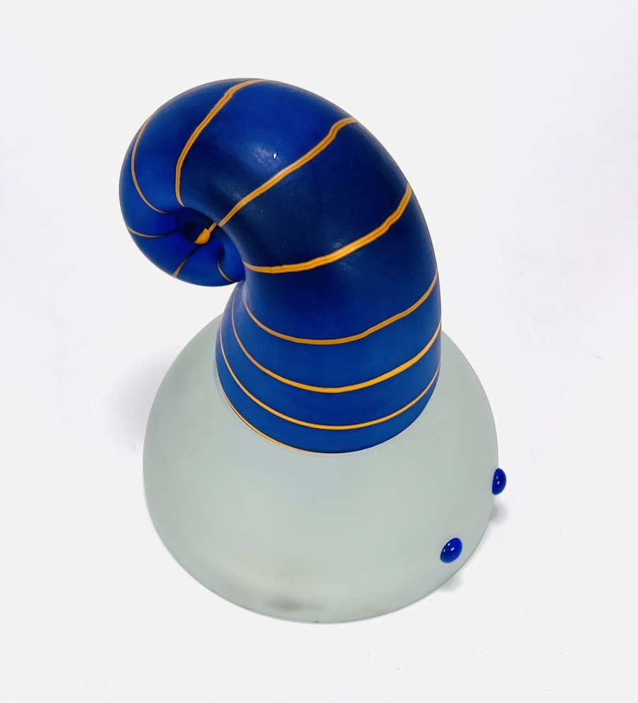 Glasobject door Stanislaw Jan Borowski (1944), handgevormd studio-glas uit de tweede helft van de 20e eeuw, Duitsland. Het ontwerp toont een opgerolde, blauw-gele spiraalvorm met mat geëtste basis in helder en wit glas. Uitgevoerd in de kenmerkende Borowski stijl met contrasterende kleuraccenten en speelse vormtaal. Eerst dit glasobject zien voordat je biedt? Bezoek onze kijkdagen op 28, 29 en 30 november van 11:00 tot 17:00 uur! |