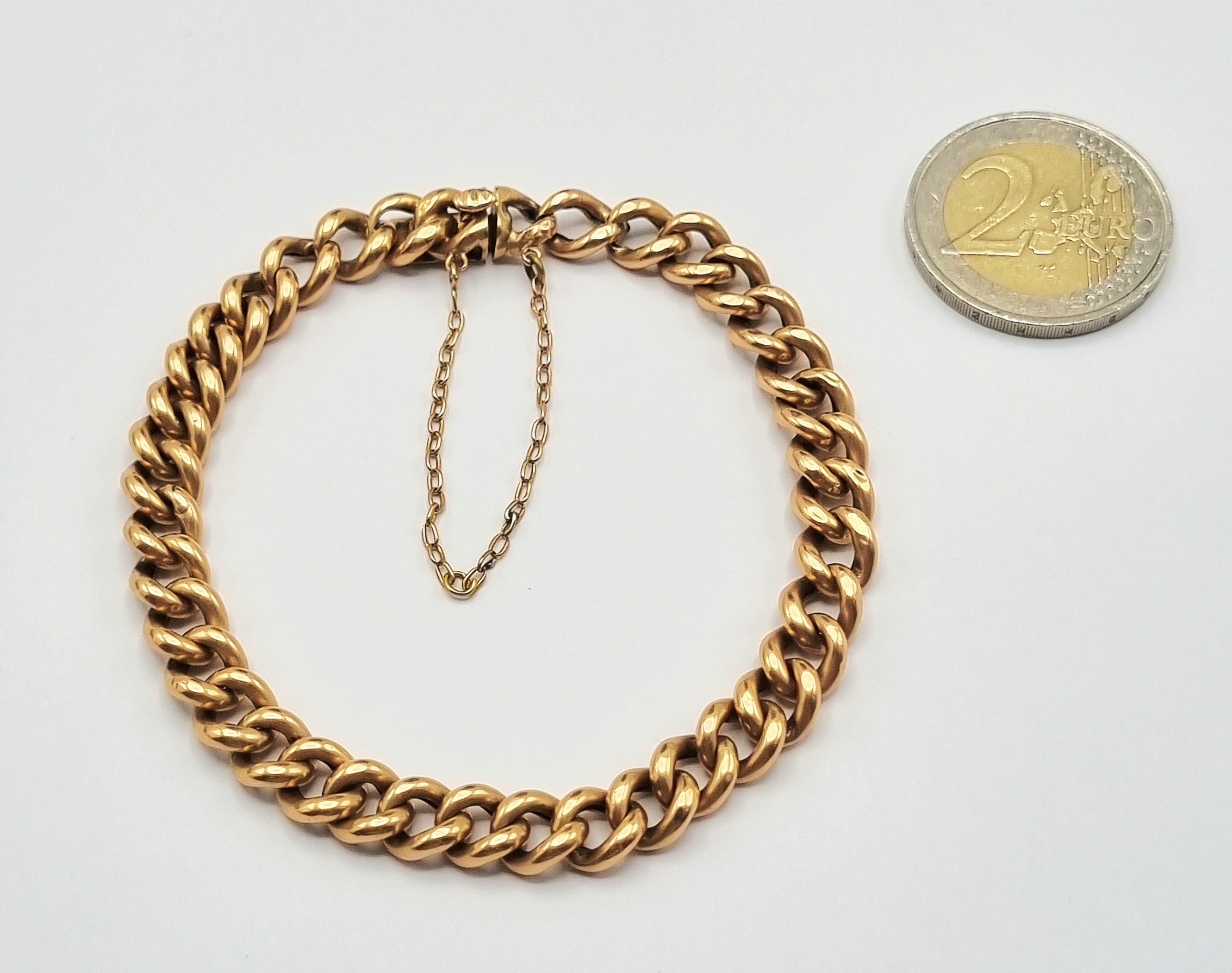 Roségouden armband vervaardigd uit aan elkaar geschakelde, bolle Albert schakels, daterend uit de twee helft van de 20e eeuw De armband is van 14 karaat goud (gemerkt 585) en sluit met een baksluiting en een extra veiligheidsketting. De robuuste uitvoering met de kenmerkende schakelstijl duidt op een Europese herkomst. Kom langs tijdens de kijkdagen (28 t/m 30 november) en ontdek deze armband zelf! |