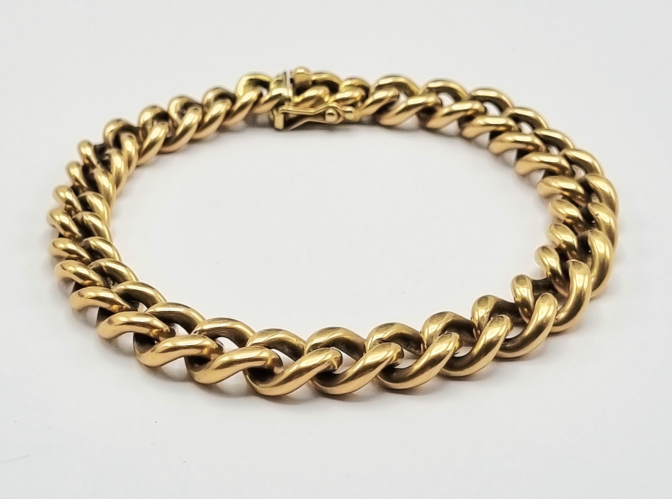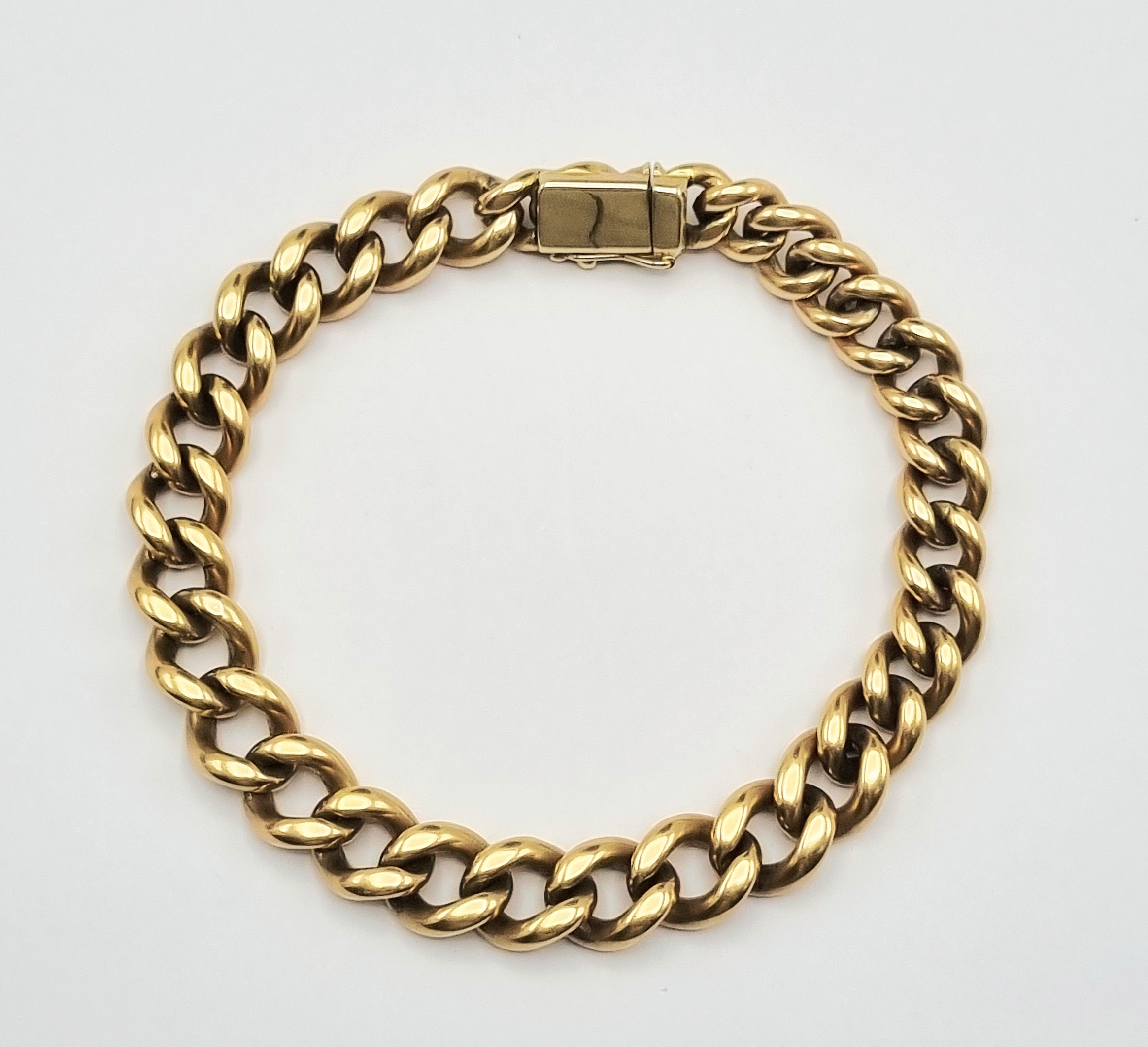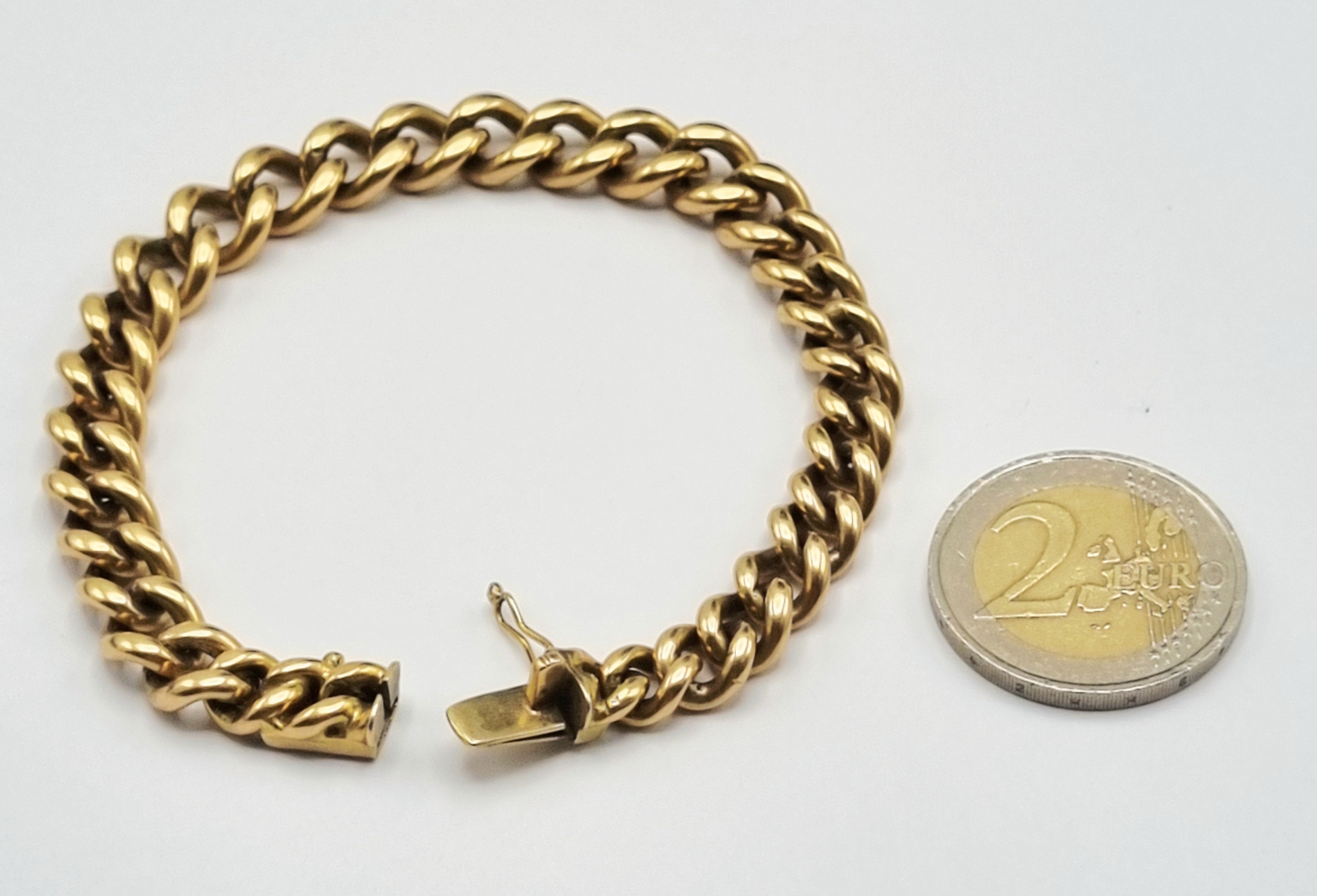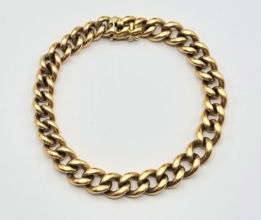De massieve schakelarmband is uitgevoerd in 14 karaat geelgoud (getoetst) en dateert uit de tweede helft van de 20e eeuw. De armband bestaat uit een reeks aaneengesloten Albert schakels, een klassieke juweliersstijl die bekend staat om zijn robuuste en platte uiterlijk. De armband is voorzien van een geïntegreerde kastsluiting met een extra veiligheidsachtje. Klaar om te bieden? Registreer je nu en doe mee aan de veiling! |