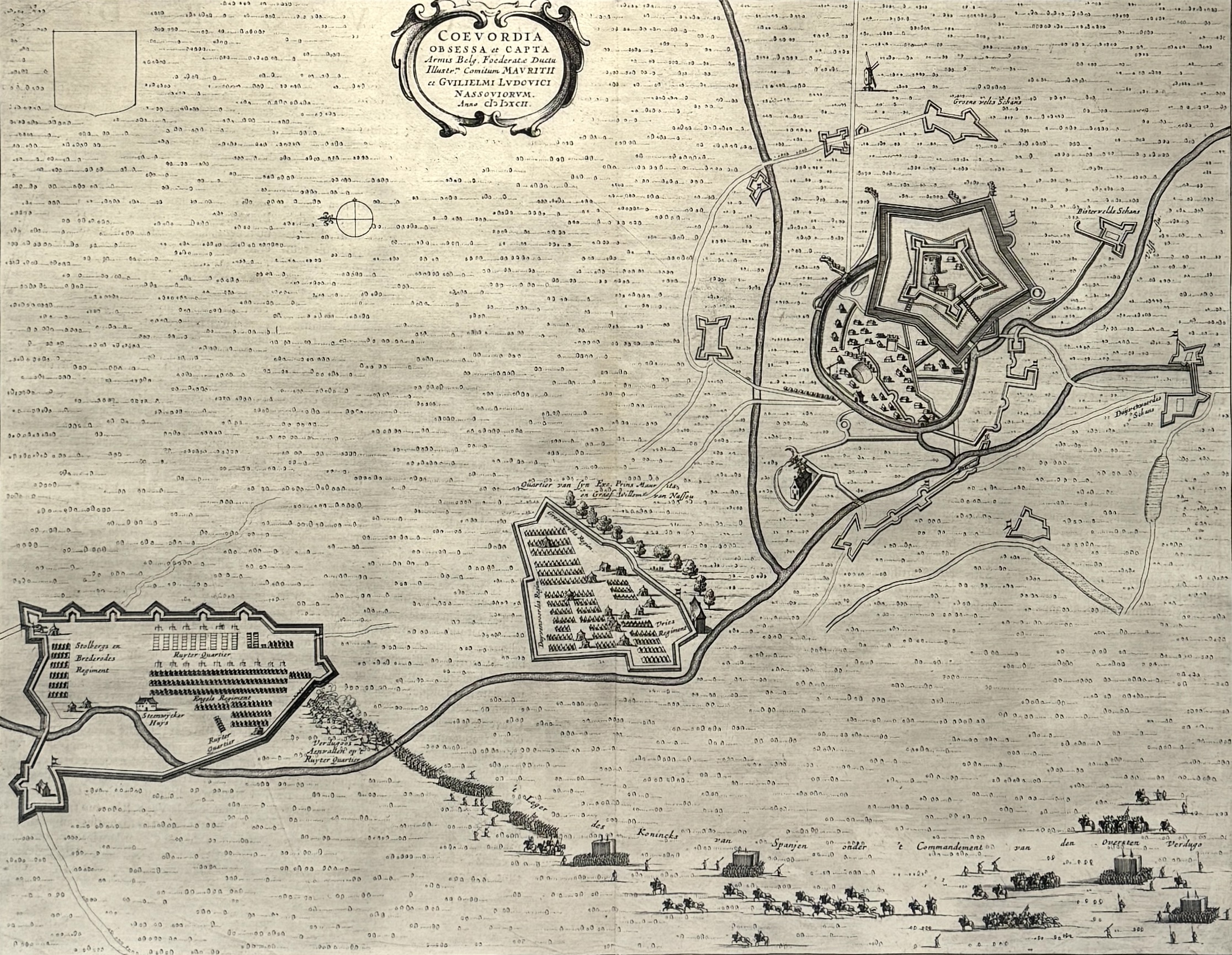 Gravure “Beleg van Coevorden anno 1592”, J. Bleau, 1647