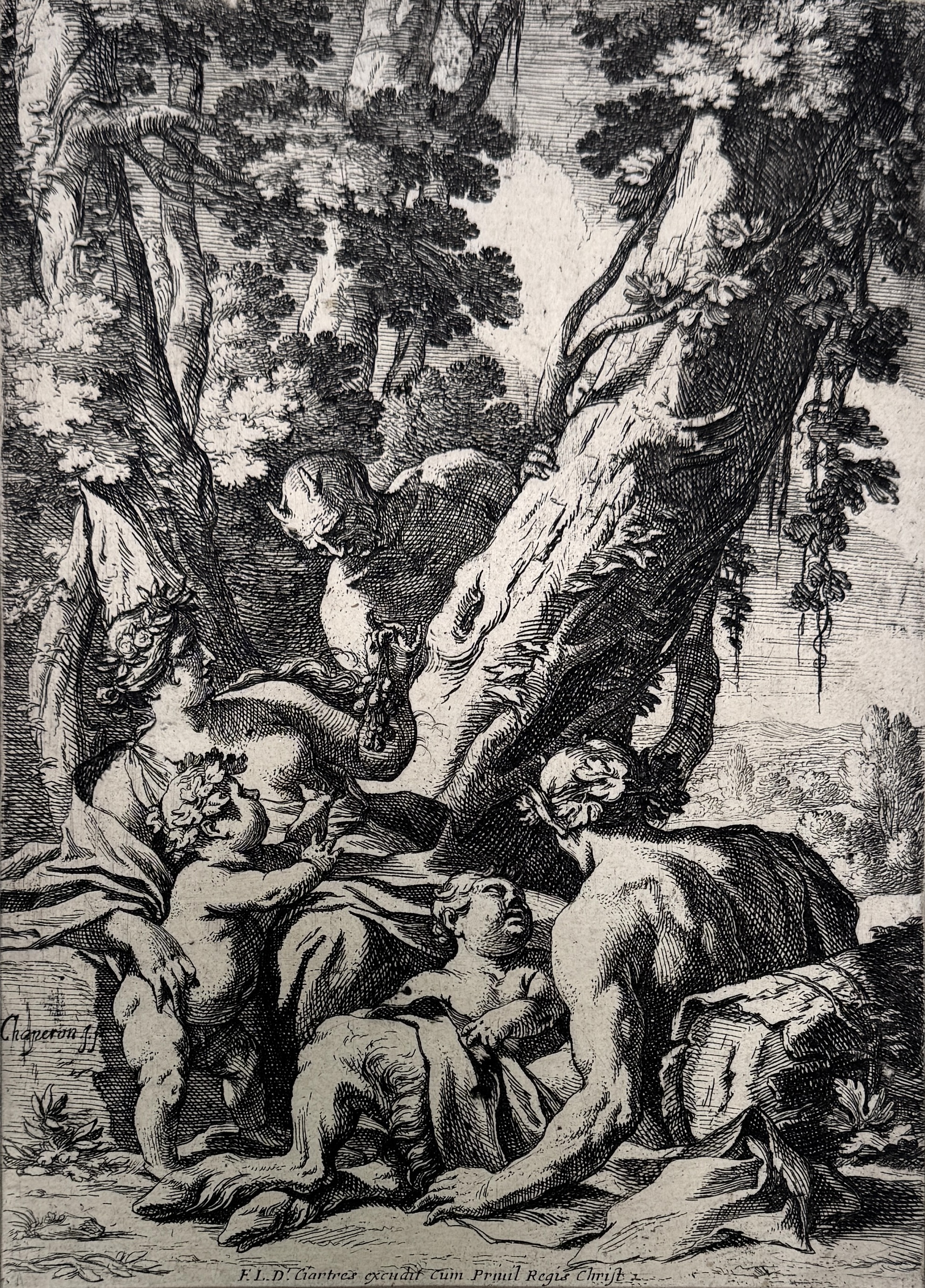 Gravure, Nicolas Chaperon – mythologische scène, Frankrijk midden 17e eeuw