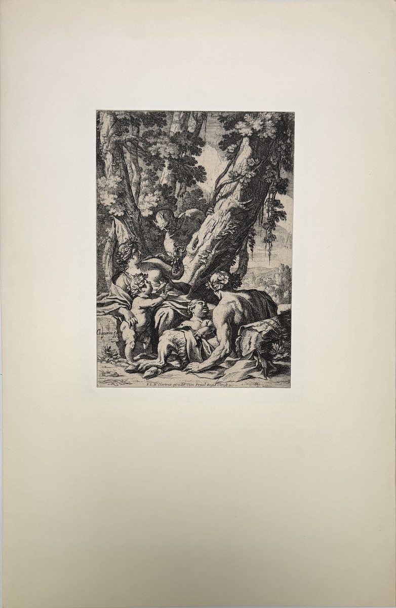 Gravure op papier door Nicolas Chaperon (1612–1656), uitgegeven door François Langlois dit Chartres (1588–1647), ca. 1642–1647. De Franse gravure toont een allegorische scène met naakte figuren in een boslandschap. Het werk is gesigneerd met "Chaperon f." in de plaat. Geïnteresseerd? Bezoek onze kijkdagen op 28, 29 of 30 november van 11:00 tot 17:00 uur! |