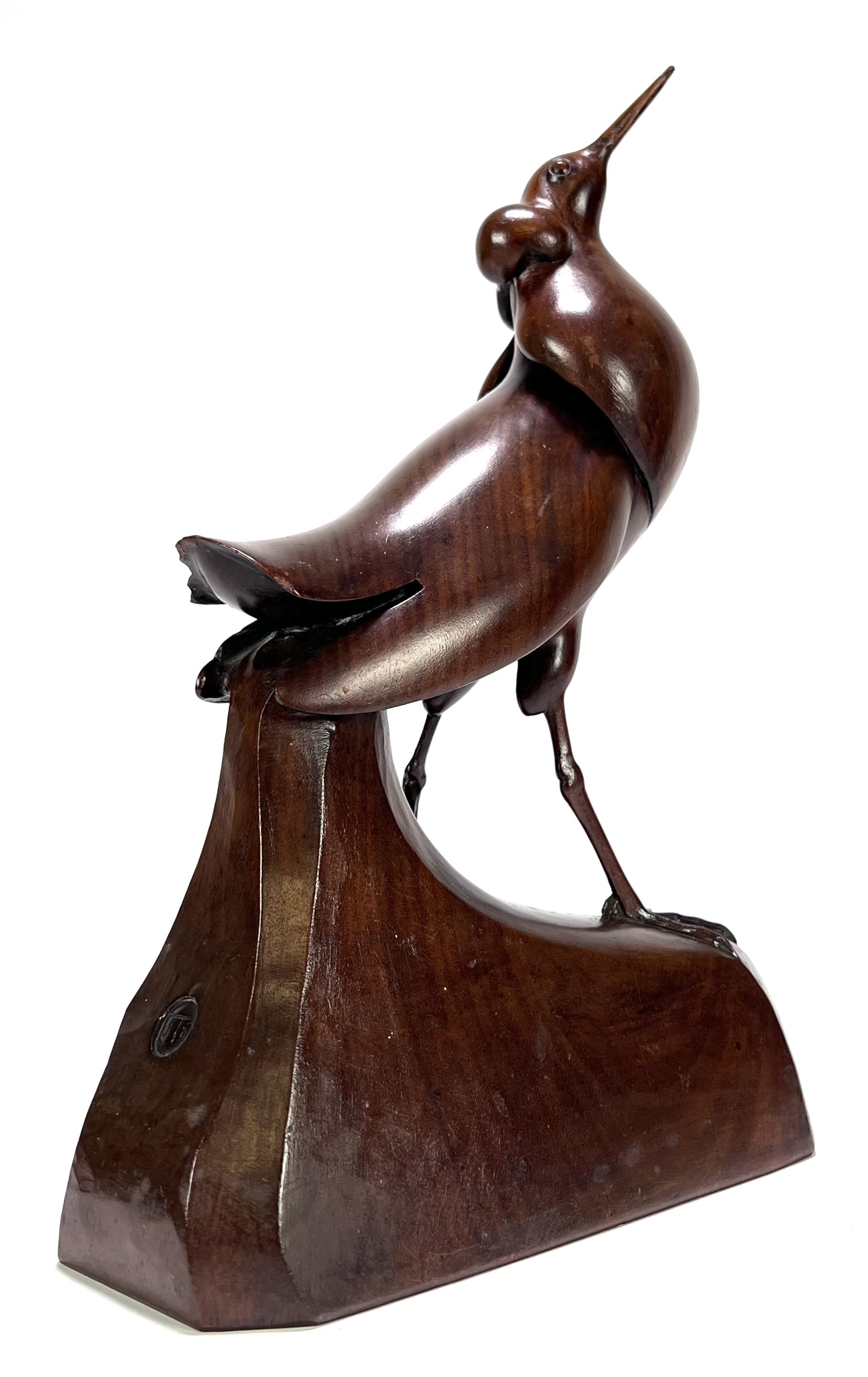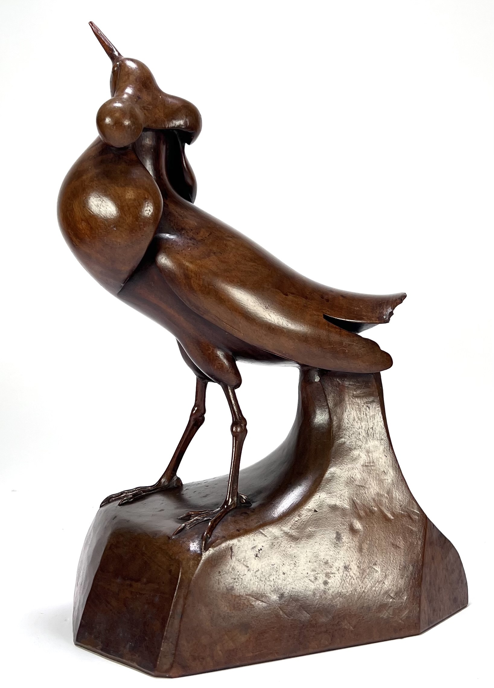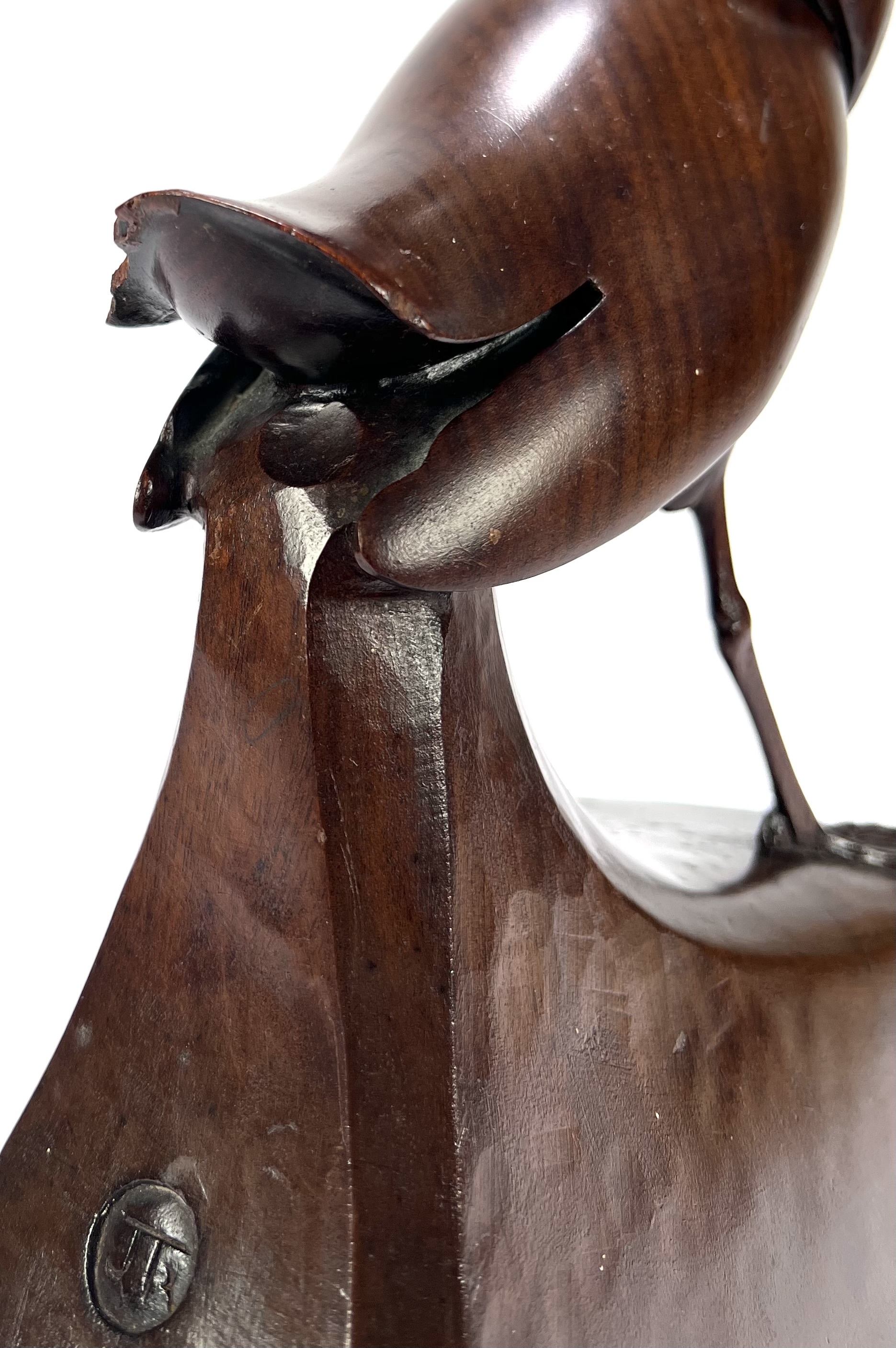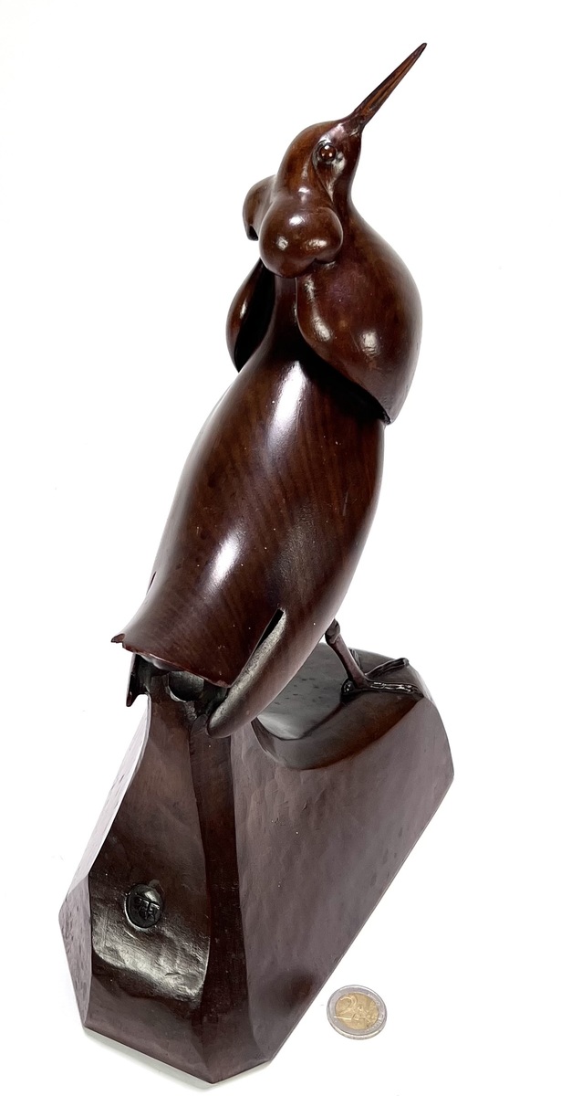 Houten sculptuur van een vogel op een gefacetterde basis, uitgevoerd in geabstraheerd naturalisme door de Nederlandse kunstenaar Jan Trapman (1879–1943). Het werk uit de eerste helft 20e eeuw is vervaardigd middels houtsnijwerk uit hardhout met een sterk gepolijste afwerking. Het beeld is gesigneerd met Trapman op de onderzijde en een monogram aan de zijkant. Geïnteresseerd? Bezoek onze kijkdagen op 28, 29 of 30 november van 11:00 tot 17:00 uur! |