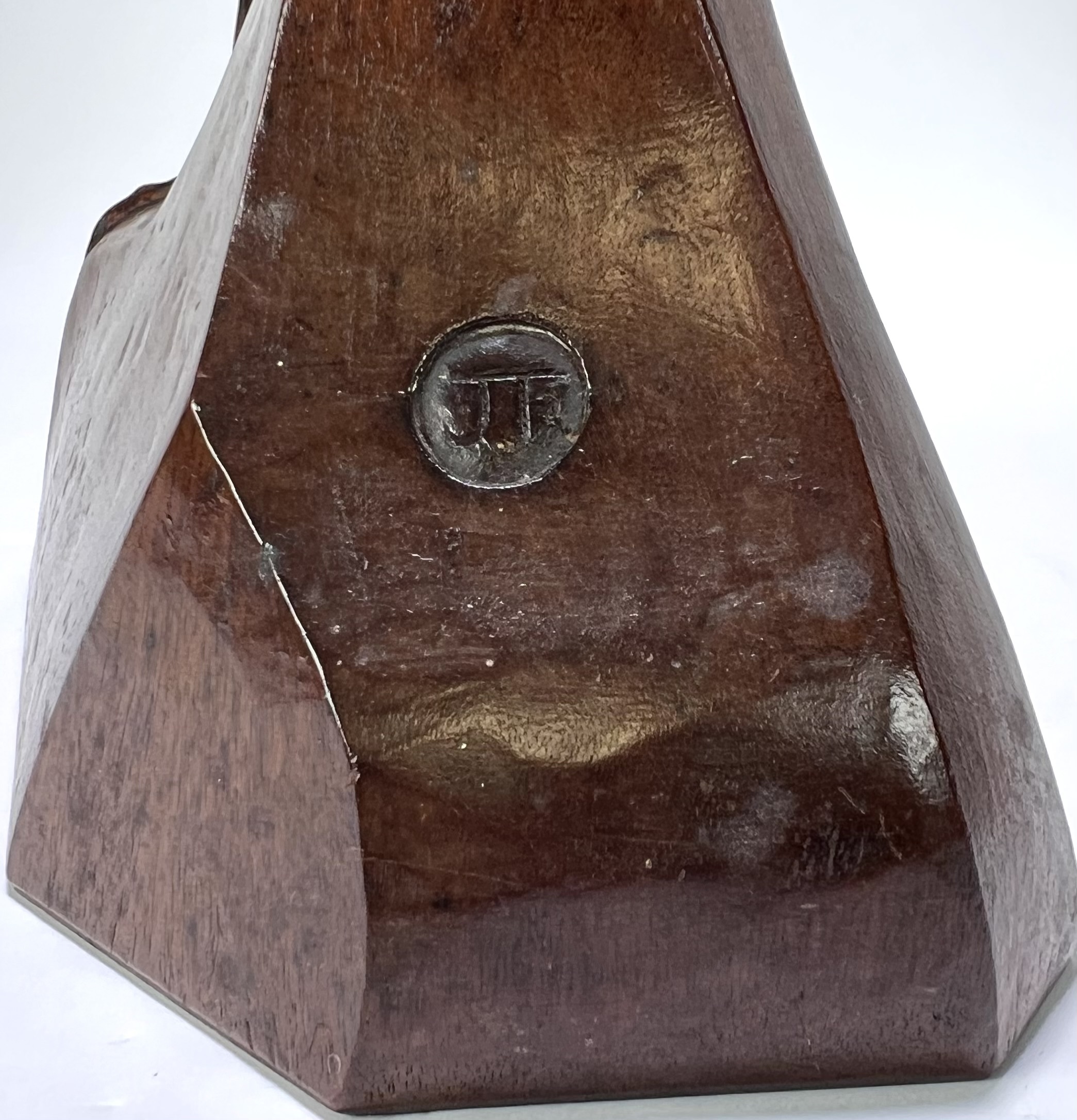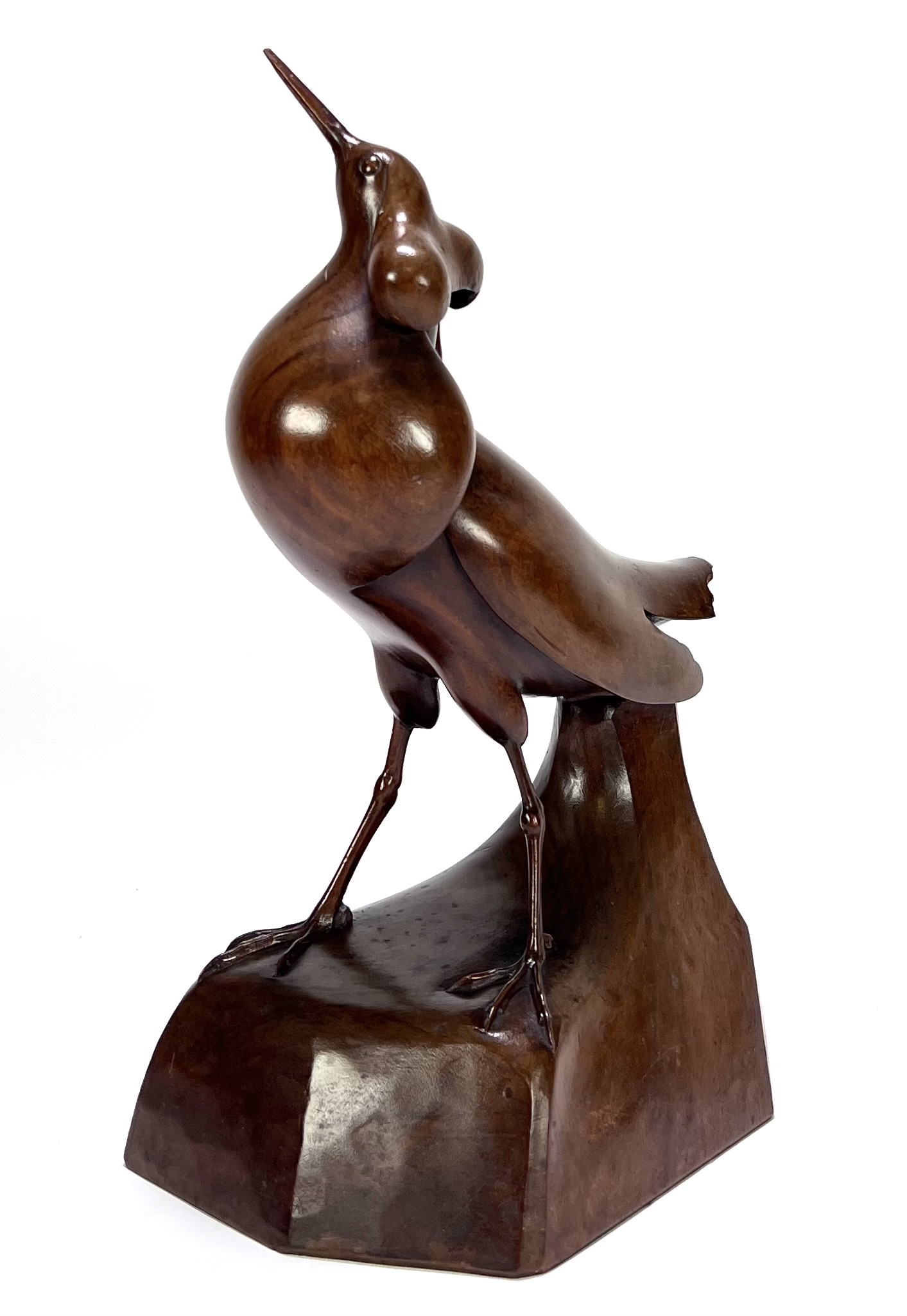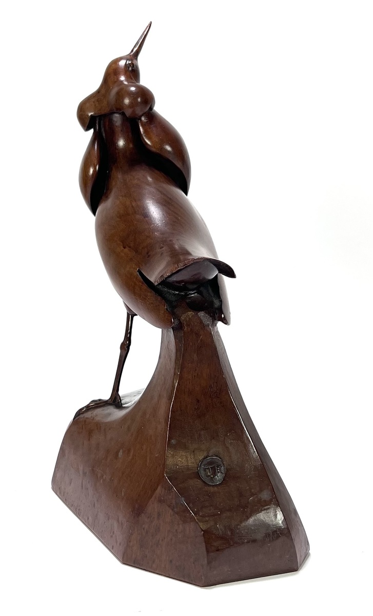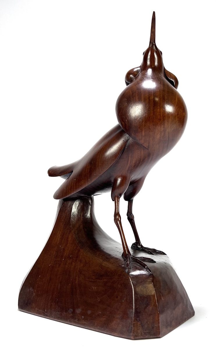 Houten sculptuur van een vogel op een gefacetterde basis, uitgevoerd in geabstraheerd naturalisme door de Nederlandse kunstenaar Jan Trapman (1879–1943). Het werk uit de eerste helft 20e eeuw is vervaardigd middels houtsnijwerk uit hardhout met een sterk gepolijste afwerking. Het beeld is gesigneerd met Trapman op de onderzijde en een monogram aan de zijkant. Geïnteresseerd? Bezoek onze kijkdagen op 28, 29 of 30 november van 11:00 tot 17:00 uur! |