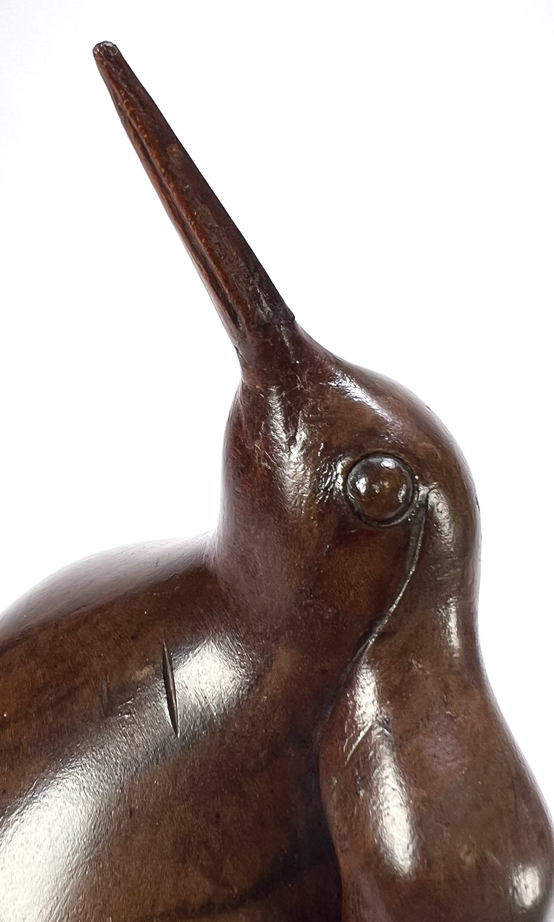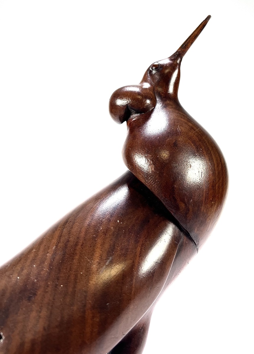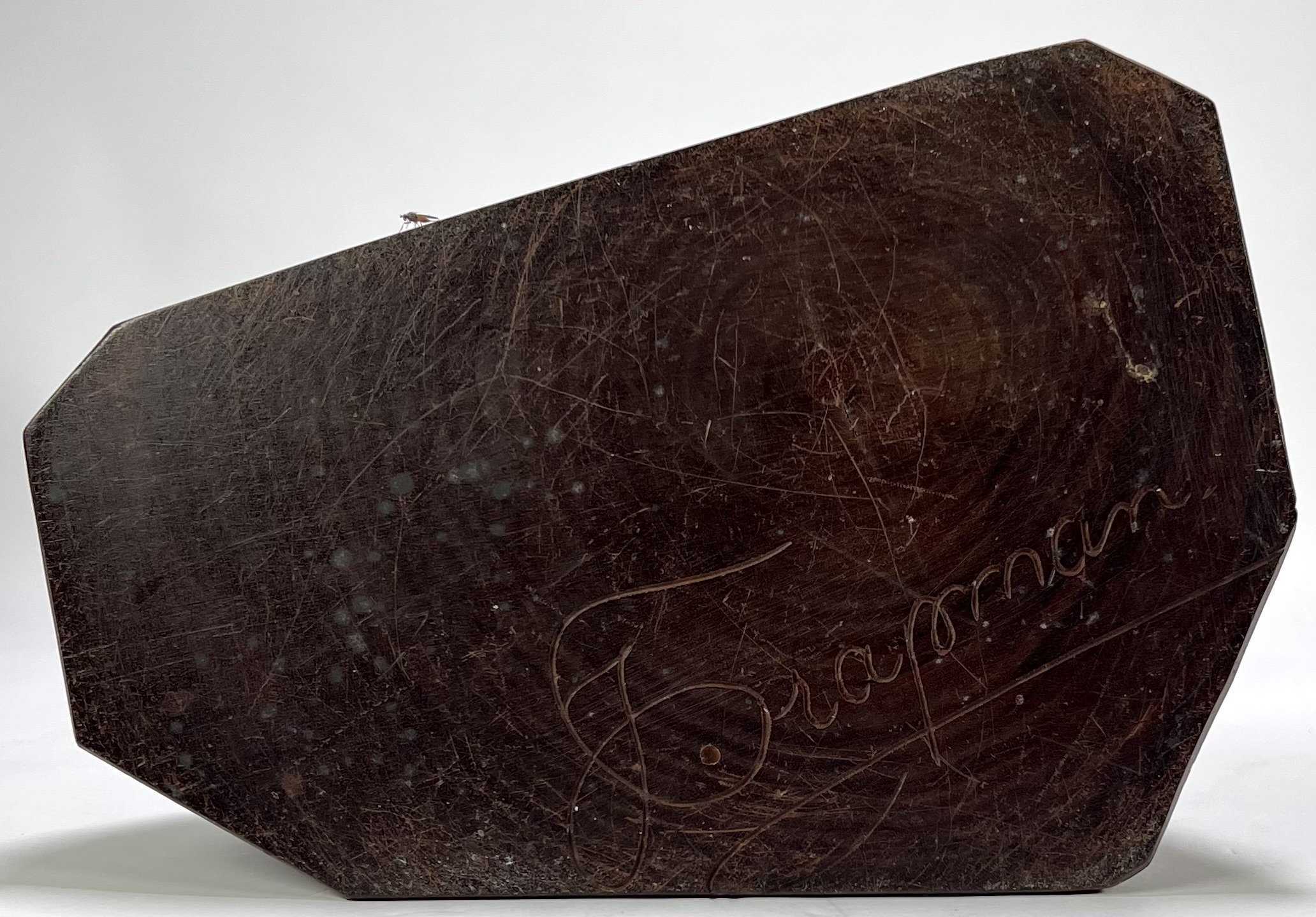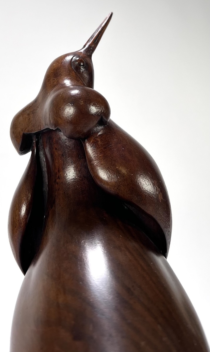 Houten sculptuur van een vogel op een gefacetterde basis, uitgevoerd in geabstraheerd naturalisme door de Nederlandse kunstenaar Jan Trapman (1879–1943). Het werk uit de eerste helft 20e eeuw is vervaardigd middels houtsnijwerk uit hardhout met een sterk gepolijste afwerking. Het beeld is gesigneerd met Trapman op de onderzijde en een monogram aan de zijkant. Geïnteresseerd? Bezoek onze kijkdagen op 28, 29 of 30 november van 11:00 tot 17:00 uur! |