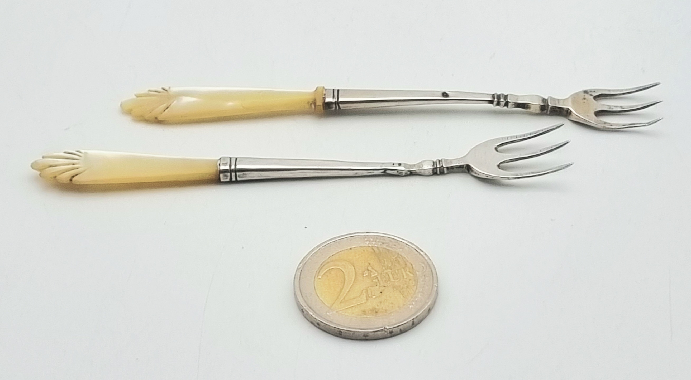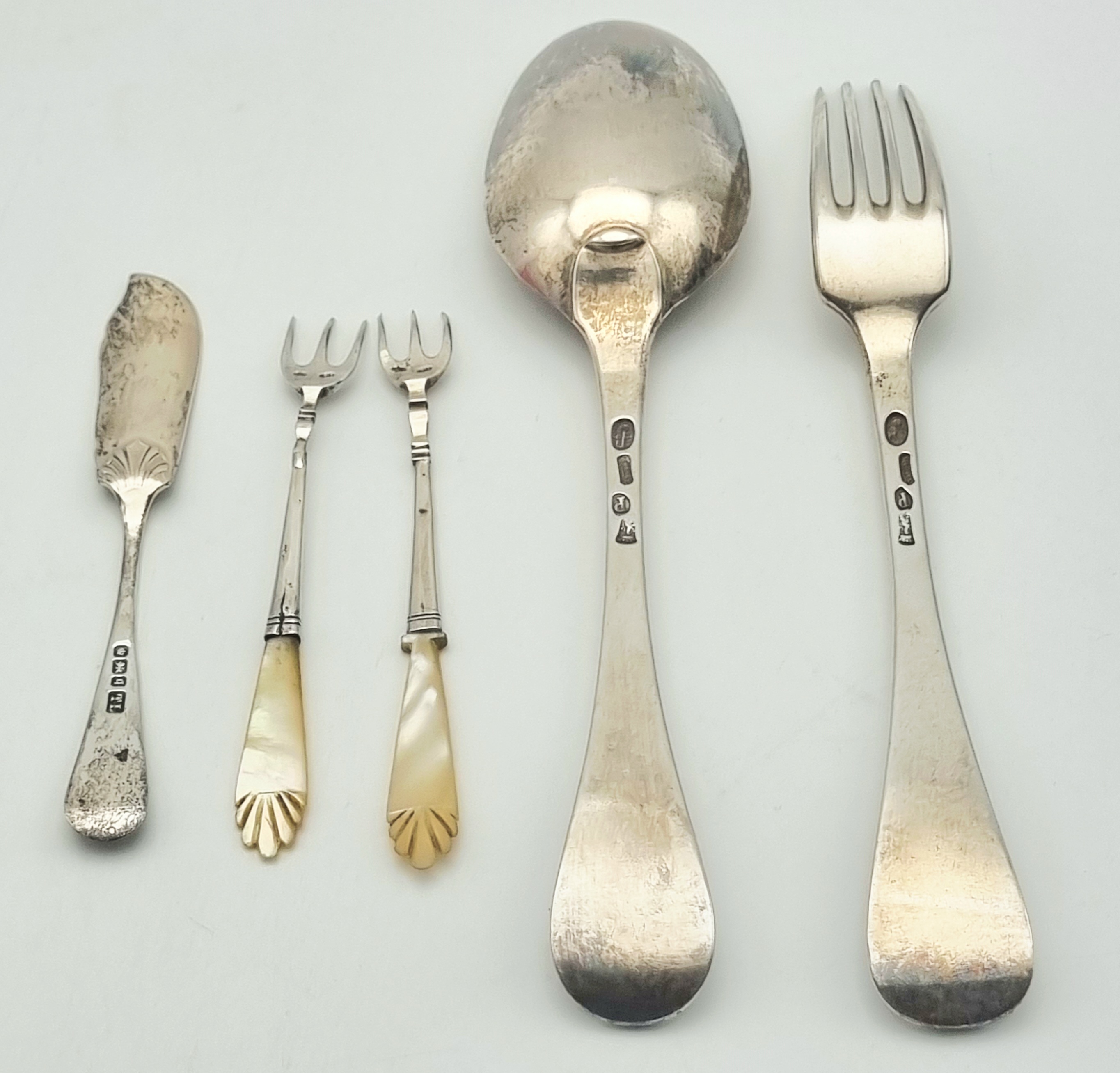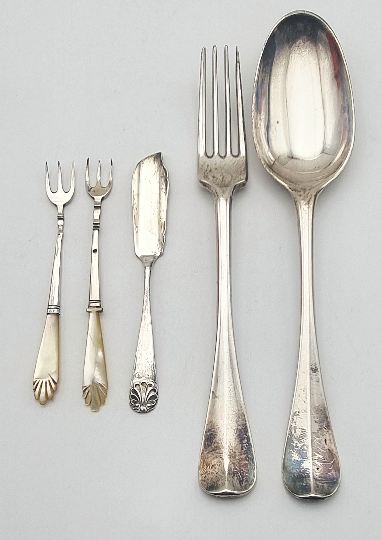 Zilveren bestek bestaande uit een tafelcouvert en drie 19e-eeuwse schepstukken. De tafellepel en tafelvork zijn uitgevoerd in het sobere Rond Filet model van Nederlands antiek zilver, exact gedateerd op 1798 middels de jaarletter 'P' en voorzien van het Gekroonde Leeuw zilvermerk. De drie kleine Victoriaanse stukken zijn van latere datum, met parelmoeren handvatten op de natfruitvorkjes, en een schelpmotief op het botermesje Geïnteresseerd? Bezoek onze kijkdagen op 28, 29 of 30 november van 11:00 tot 17:00 uur! |